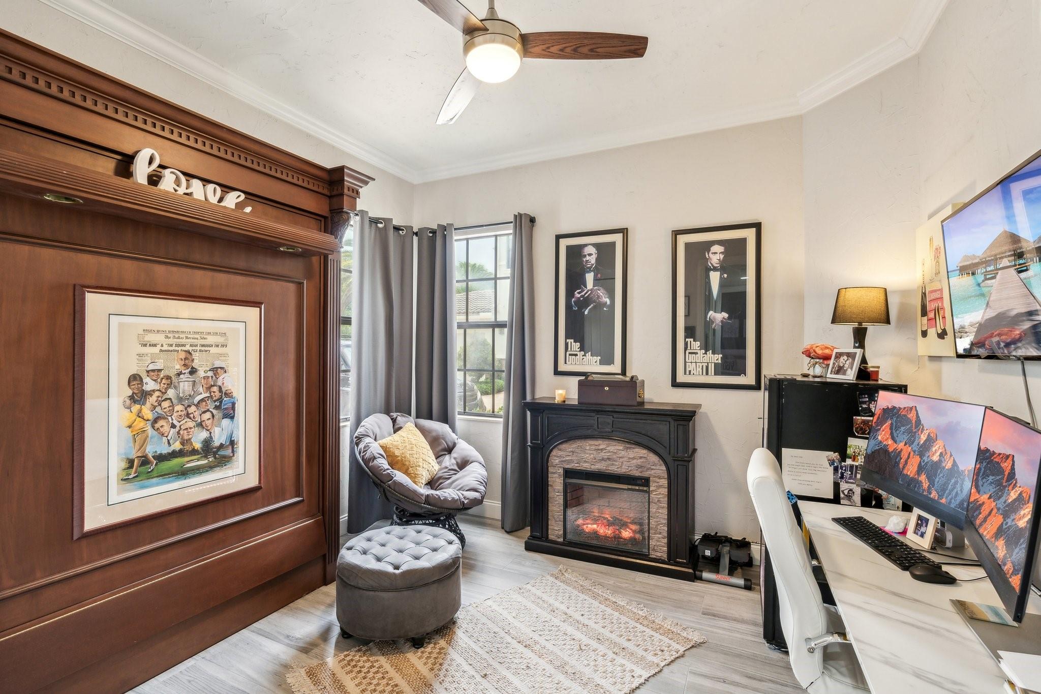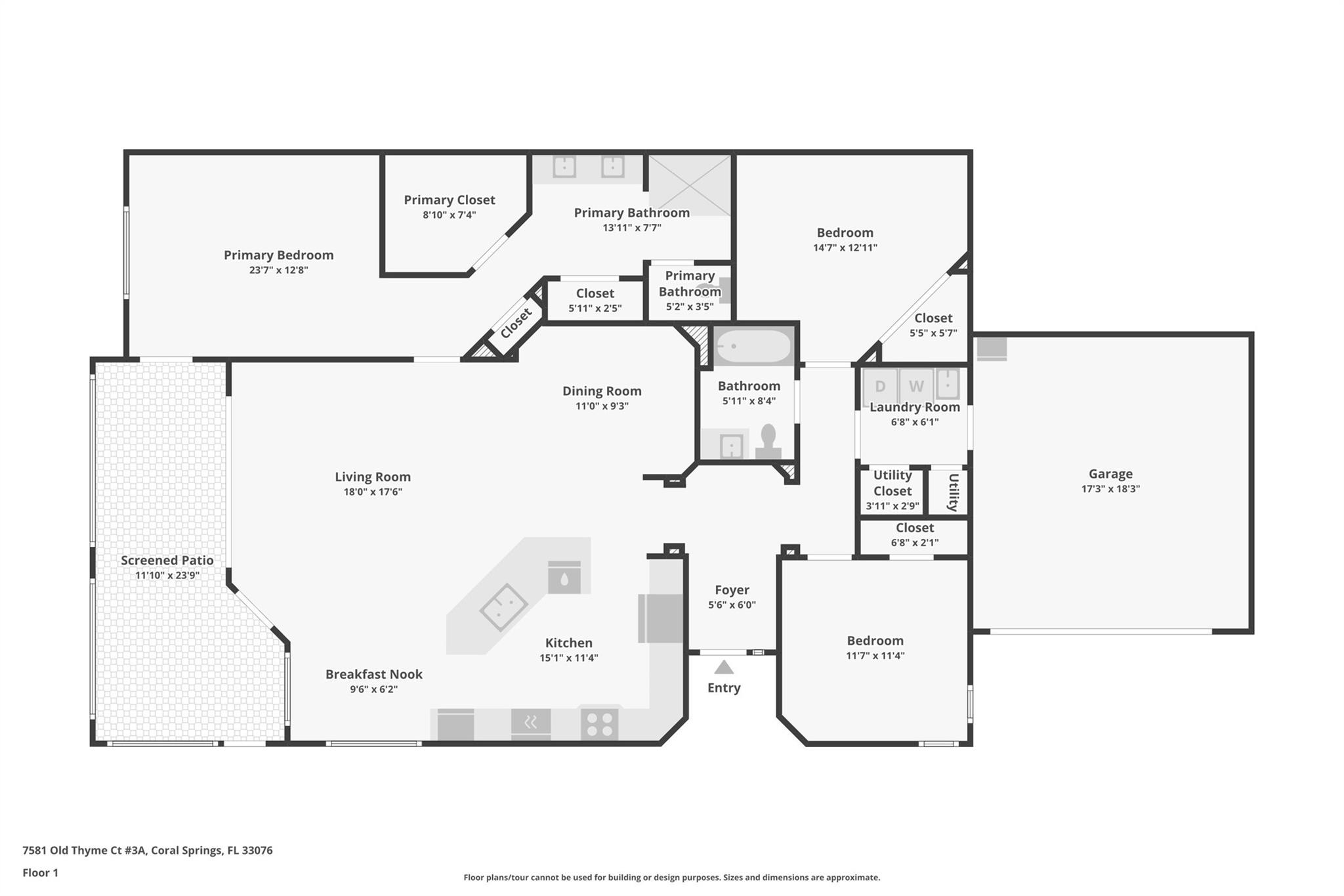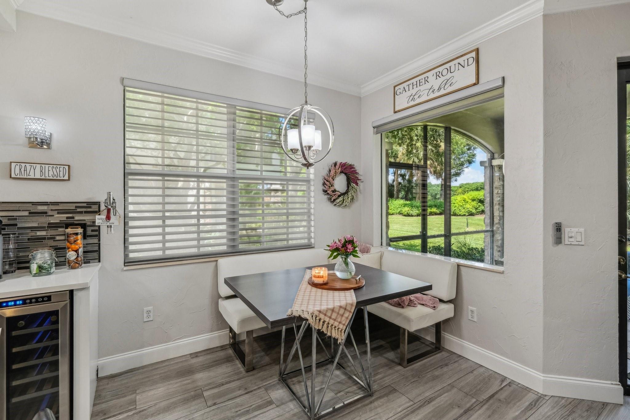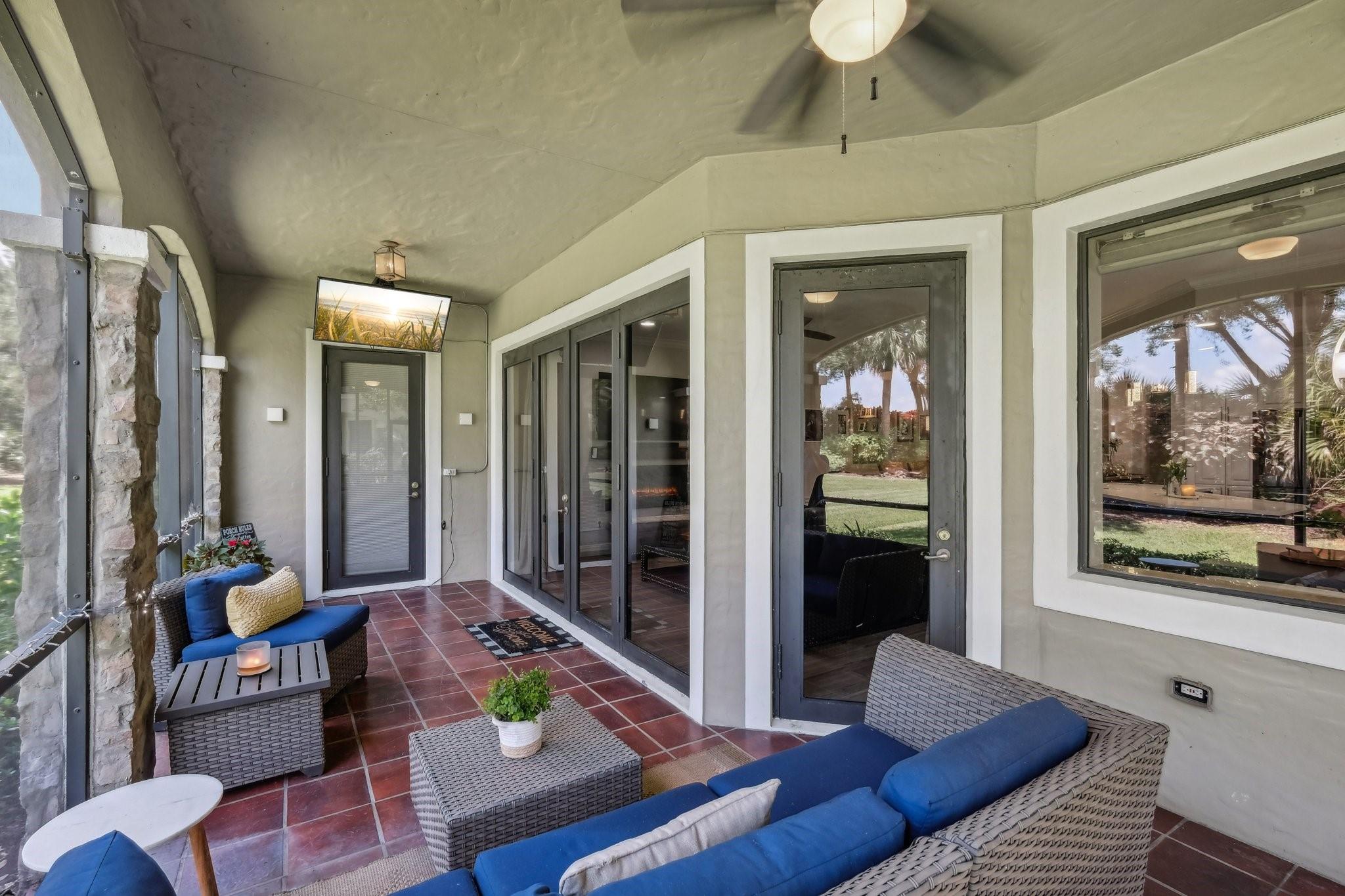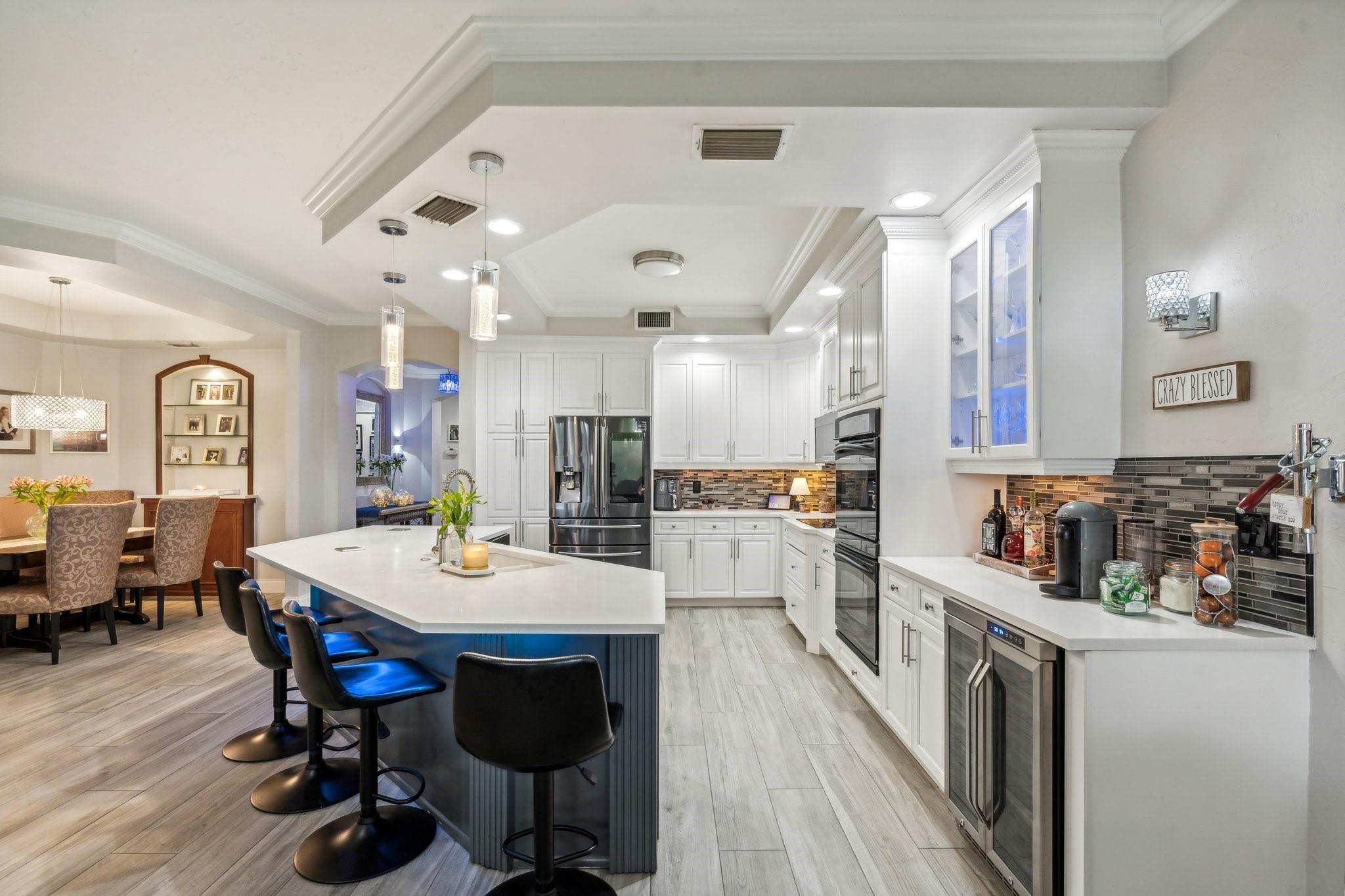 Welcome to your beautifully remodeled, one-level townhome! This turnkey home seamlessly blends luxury and comfort. New 2025 Roof, Impact windows, modern kitchen featuring top-of-the-line appliances, wine fridge, quartz countertops, double oven, smart-fridge, ample cabinet space, open & spacious floor plan, The primary bedroom boasting a generous walk-in closet and a en-suite bathroom. Enjoy the lanai soaking in the tranquil surroundings. The additional bedrooms are perfect for family, guests, or a home office. The community offers top amenities & remolded in 2024, including golf cousrse, fitness center, sauna, pool, tennis courts, pickle ball, bar & restaurant. Quarterly HOA Covers, Insurance, Roof, Lawn Care, Pool, & Maintenance. Home is Gated with 24 hour Security.