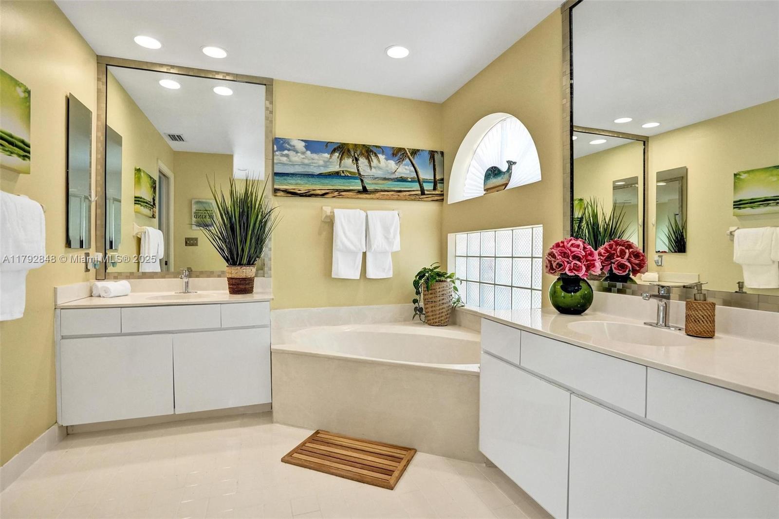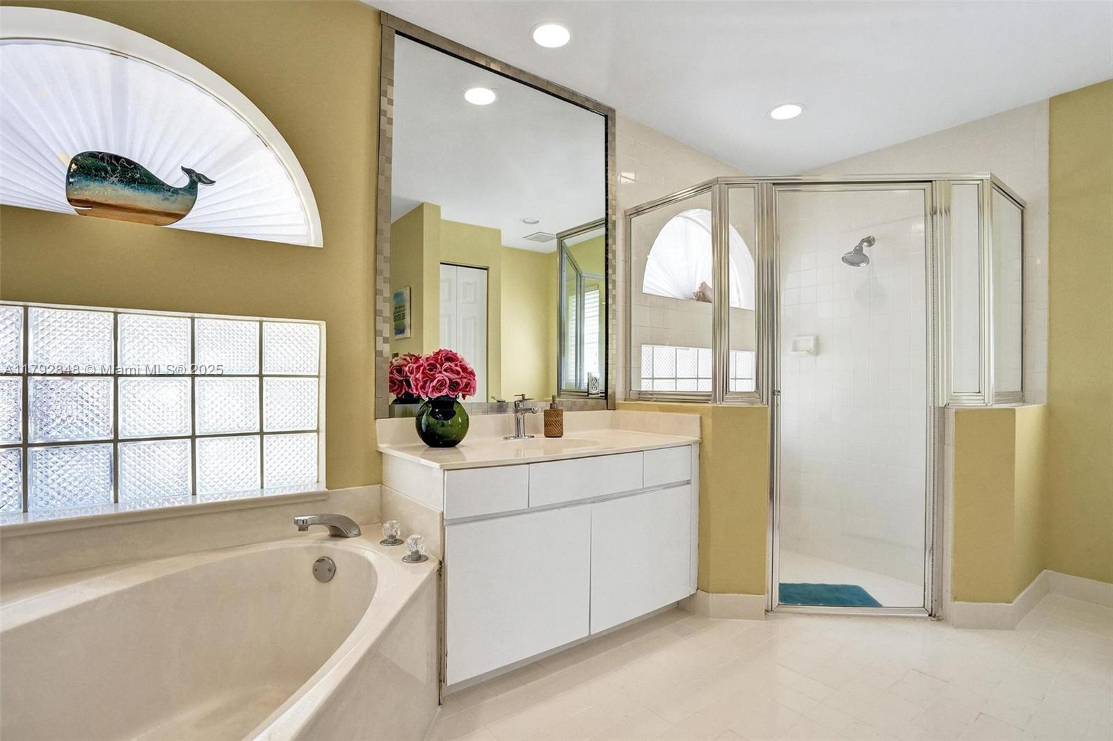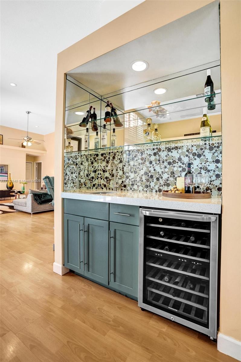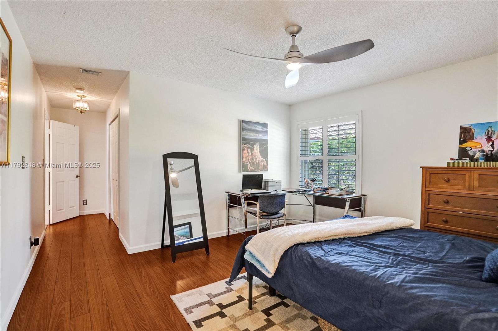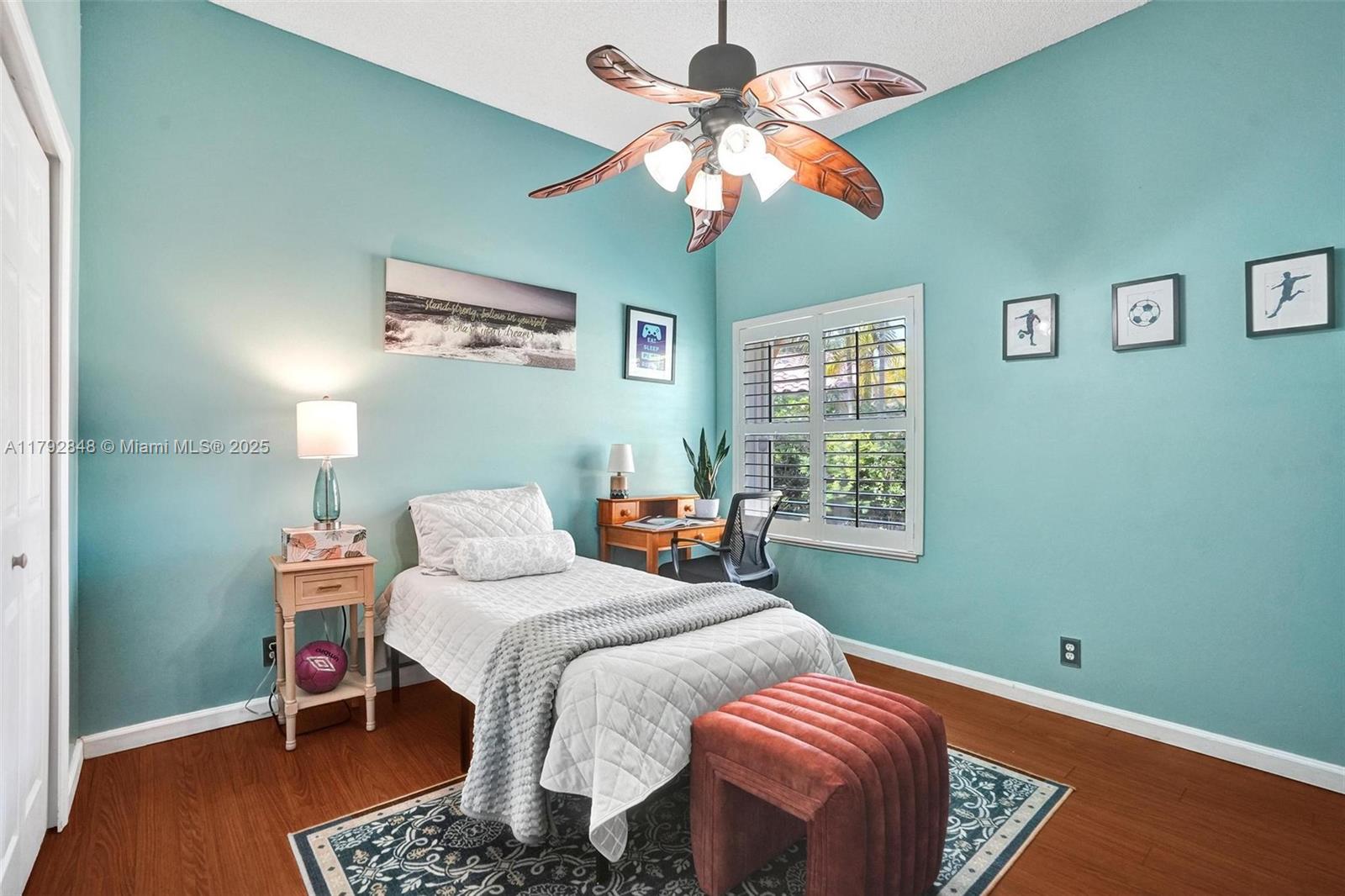 Nestled in an intimate section of Brookside on a pie-shaped homesite with beautiful curb appeal! This 4BD/3BA, 3-car garage home offers a perfect flow with soaring volume ceilings, vinyl plank floors, versatile formal dining room with outside hurricane & inside plantation shutters. Grand double-door entry opens to spacious living areas separated by a wet bar with storage, while butted glass windows frame tranquil water views. The custom kitchen features Quartz counters, beautiful cabinets & tiled backsplash. Oversized bedrooms in a triple-split layout with cabana bath. Spacious laundry w/ tub. The owner’s retreat boasts floor-to-ceiling windows, dual walk-ins with built-ins, Roman tub & dual vanities. Freshly painted pool deck and fenced yard with lake views complete the picture!
