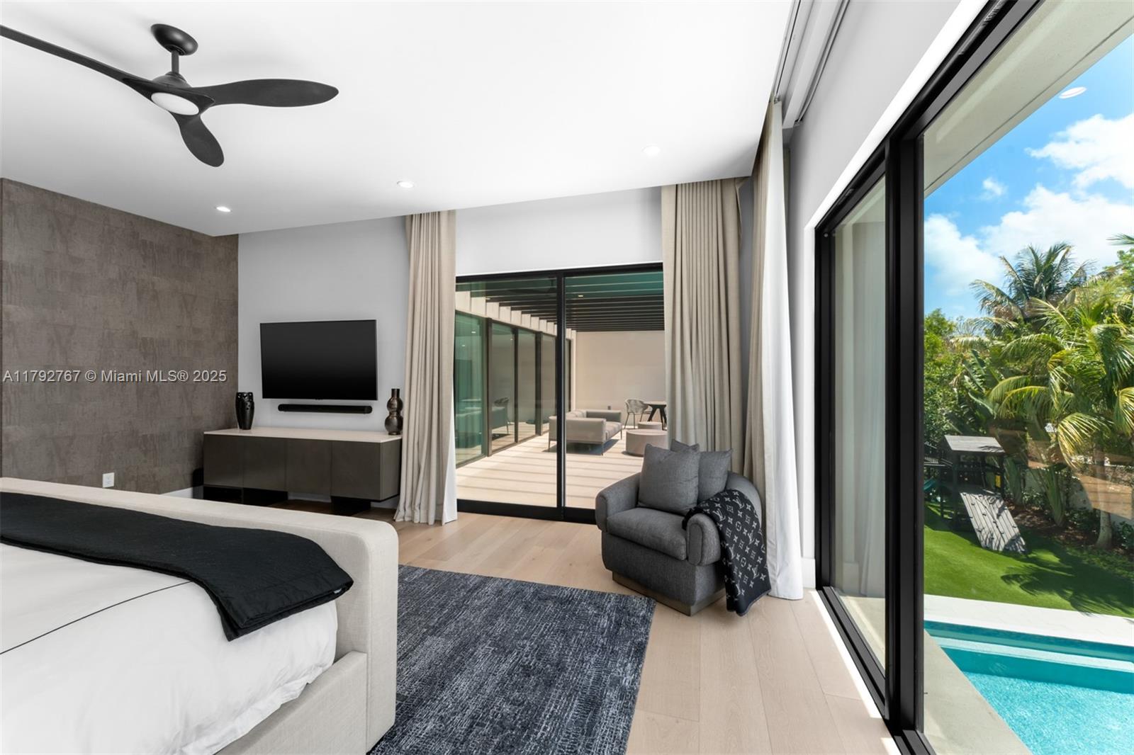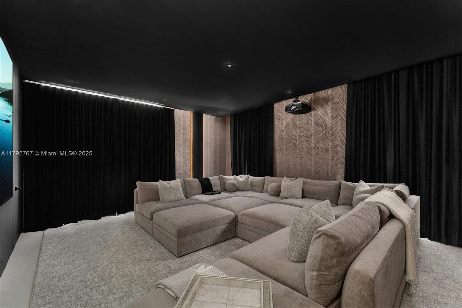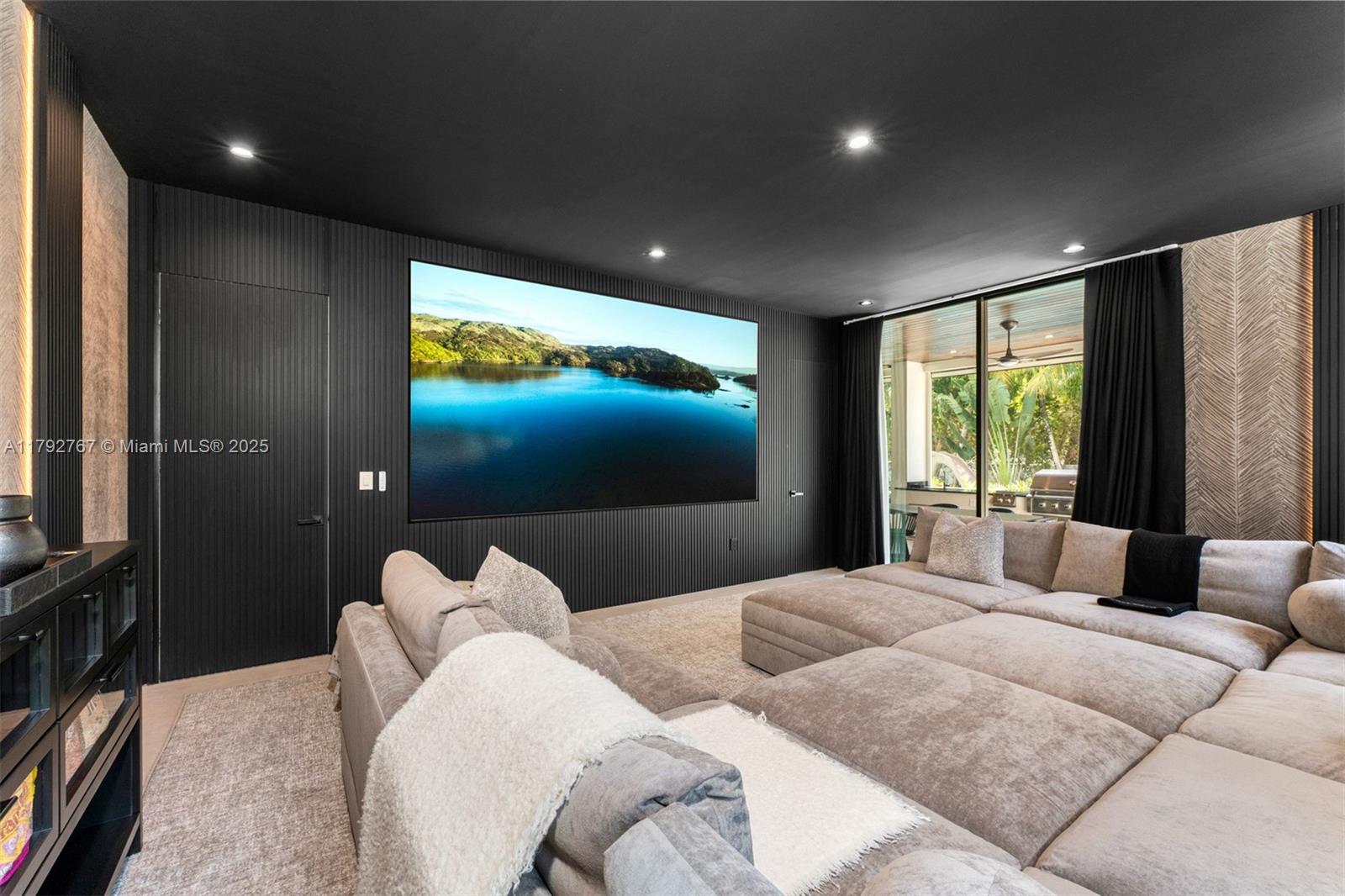 Modern architectural estate in Pinecrest featuring 6 bedrooms, 7.5 bathrooms, & a professional built theater/media room. Thoughtfully designed with an open-concept layout, including a guest bedroom, housekeeping suite, 2-car garage, laundry room, butler’s pantry, & family room on the 1st floor. Gourmet kitchen equipped with Miele and Wolf appliances. Elevator, generator, gas water heaters, & smart home integration. Outdoor highlights feature a summer kitchen, expansive covered terrace with electric screens, & oversized pool. Upstairs, a split floorplan offers a grand primary suite with his-and-hers closets, dual toilets, sinks, & showers, plus three additional bedrooms, each with en-suite baths & private balconies + a common family rm. Located in a secure gated community of only 4 homes.