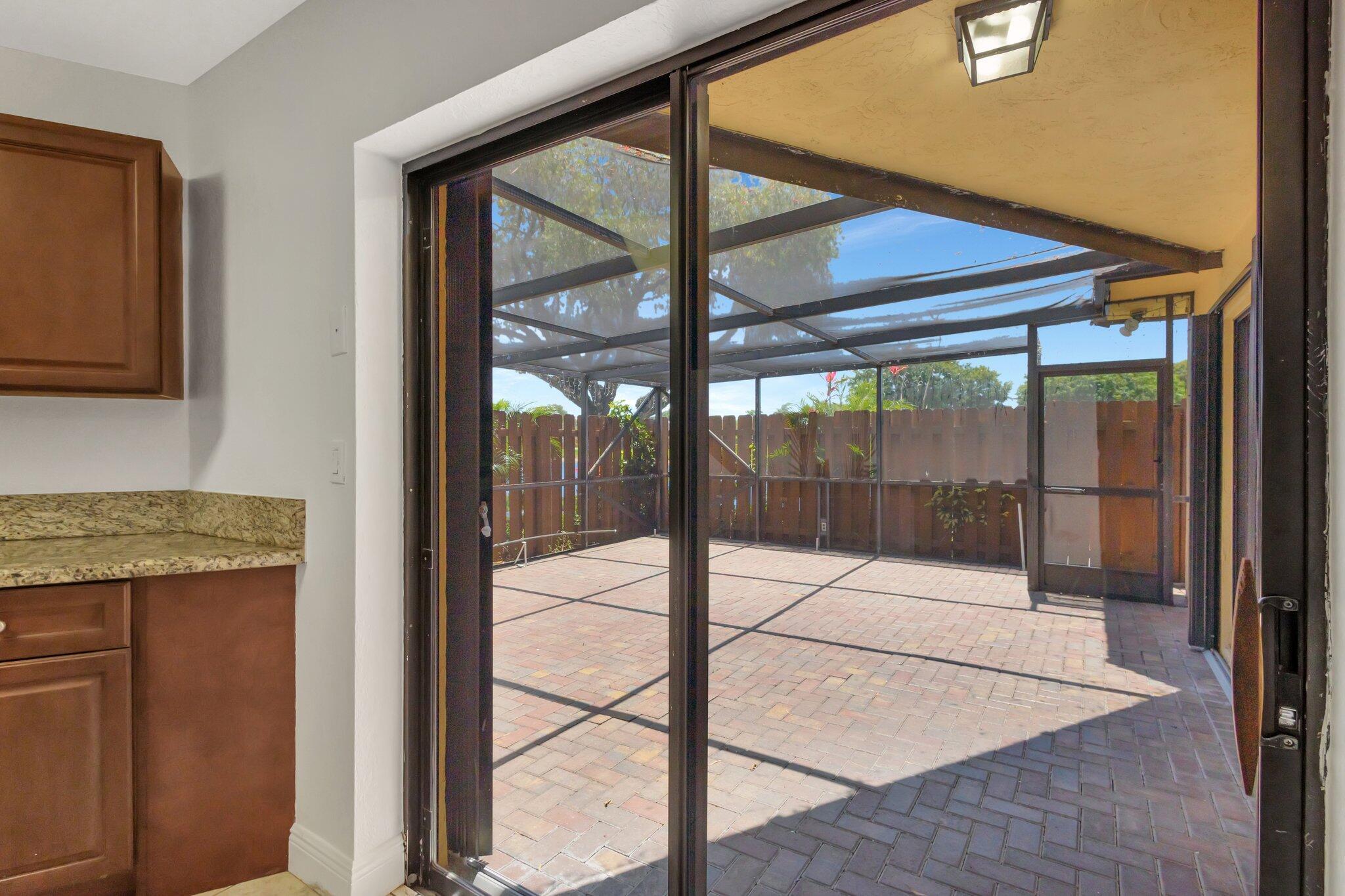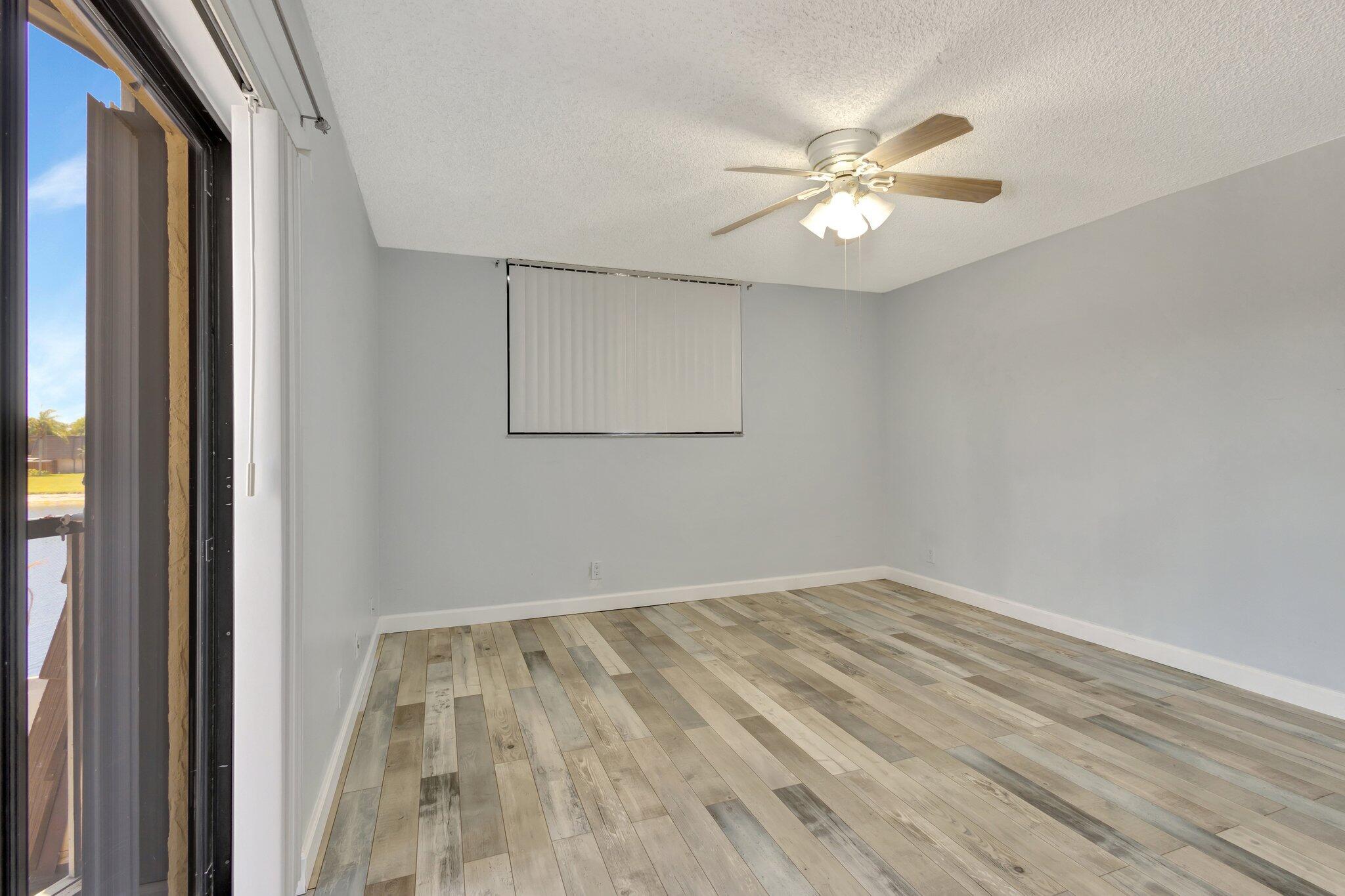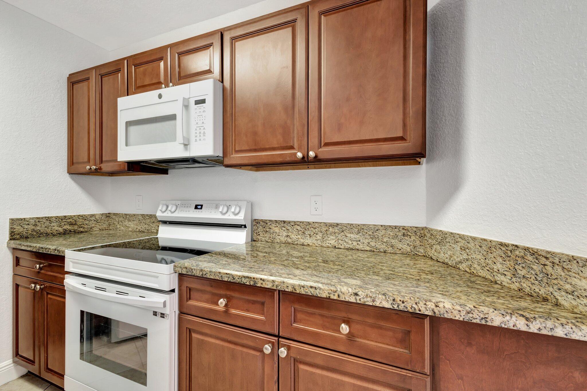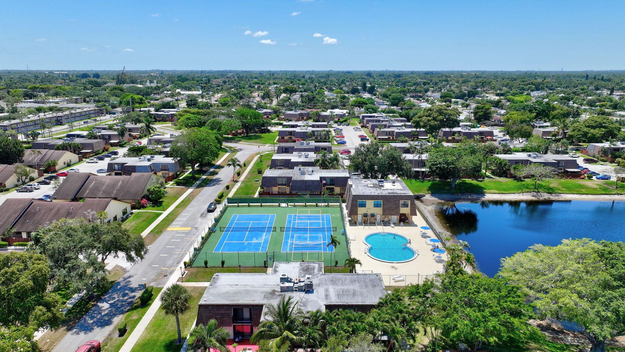 Move-in ready townhouse with 2 master suites upstairs, each with private balconies and beautiful lake views. Downstairs offers an open floor plan with large tile flooring, newly painted walls, and new carpet on the stairs. Modern wood-look laminate flooring upstairs. Kitchen features wood cabinets, granite countertops, breakfast bar, and newer appliances. New dishwasher and refrigerator. Half bath w/washer/dryer. Sliders off the kitchen and living room lead to a fully fenced, screened private courtyard w/ brick patio is perfect for outdoor dining and entertaining. Accordion shutters, 2 assigned parking spaces, and pet-friendly (1 dog or 1 cat). Community includes a new gym, pool, tennis, pickleball, and clubhouse. Great location! New roof in 2022! Move in ready and waiting for new owners.