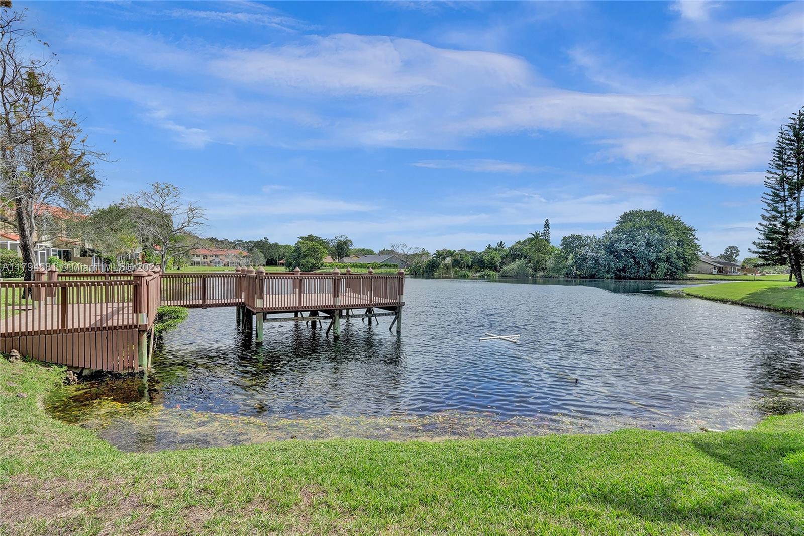 Welcome to this beautifully maintained 3-bedroom, 2.5-bath townhome in desirable Dahlia community of Plantation. This home features an updated kitchen with granite, stainless steel appliances, and plenty of storage. The spacious master suite boasts soaring volume ceilings and a newly renovated master shower for a spa-like feel. Enjoy peace of mind with a Goodman A/C and Rheem hot water heater—both less than a year old—as well as full impact windows and doors. The polybutylene plumbing replaced 2024 with PEX A piping and freshly painted. Step outside to a private, screened-in patio ideal for morning coffee or evening relaxation, and a freshly installed walkway welcomes you at the front door. The community offers a pool and a tranquil dock overlooking the water. This home truly has it all.