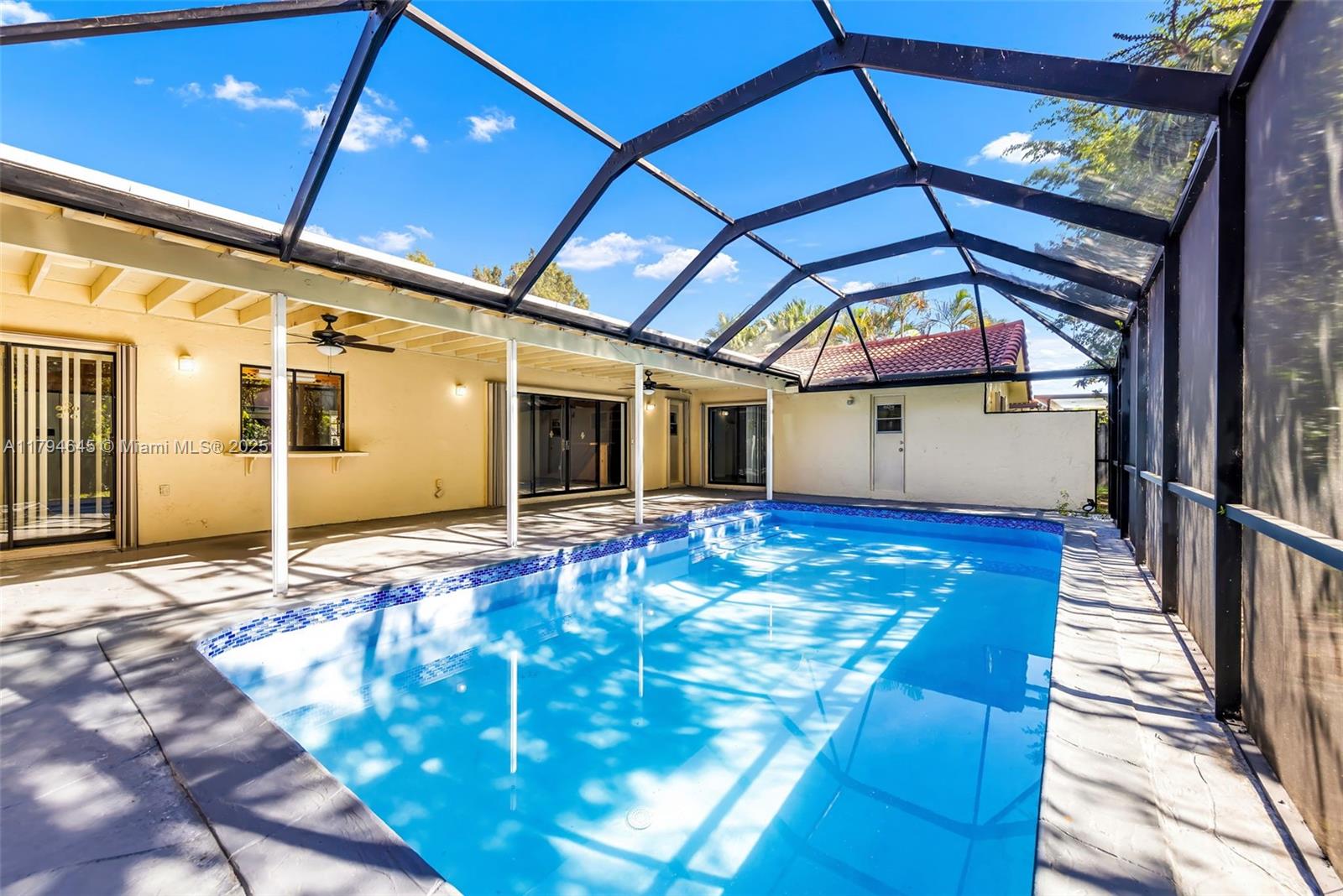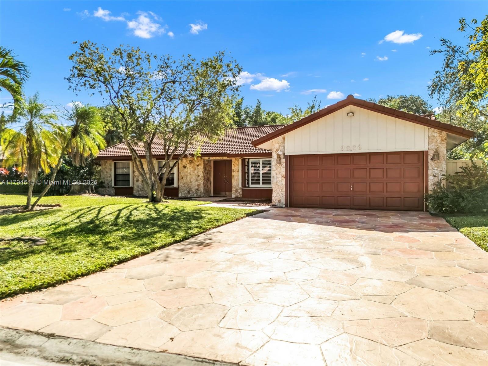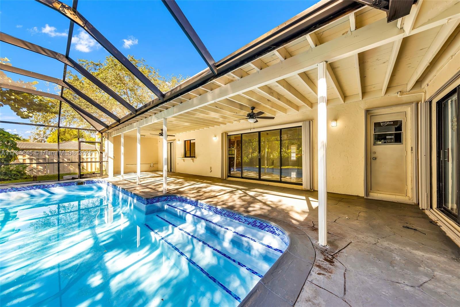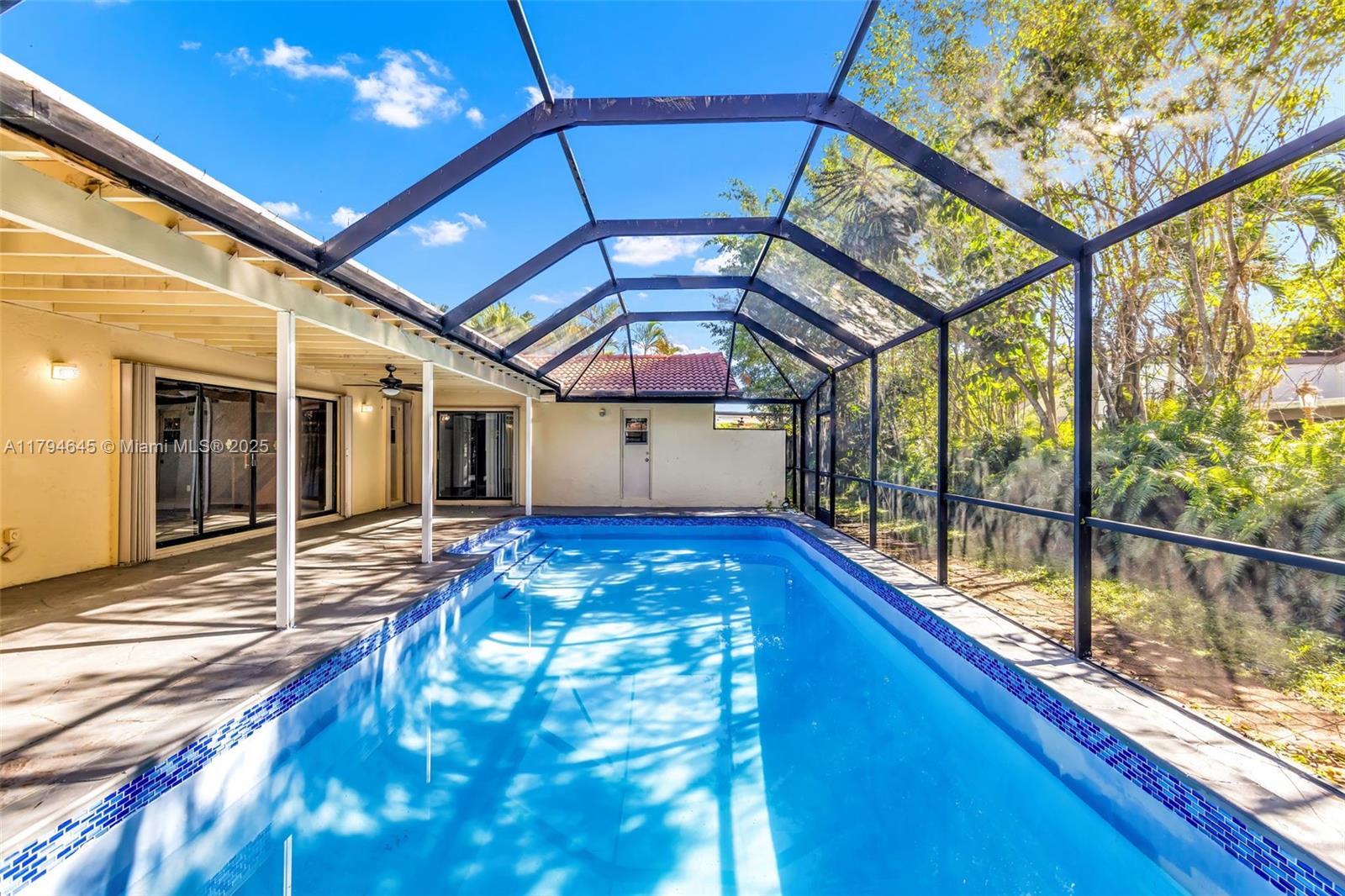 Spacious 4-bedroom, 2-bathroom home with a DEN and 2-car garage is nestled on an oversized corner lot in the highly sought-after Maplewood community, with no HOA! Newer upgrades include luxury marble flooring, modern bathrooms, fresh interior paint, and elegant lighting fixtures. The home features a 2022 flat roof, a 2002 tile roof with 5 years of remaining life expectancy, and accordion hurricane shutters. The kitchen, family room, and primary suite have an inviting, spacious floor plan and a beautiful view of the pool area, ideal for entertaining guests. Located just minutes from parks, top-rated schools, shopping, dining, and nightlife. Easy to show—schedule your private tour today!