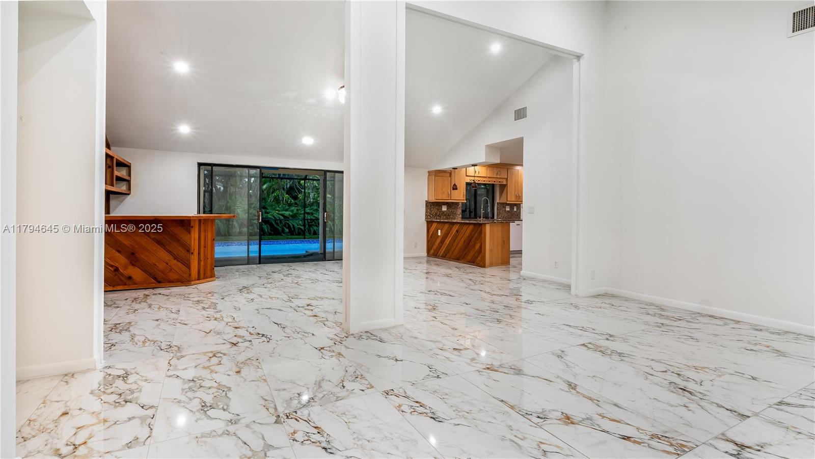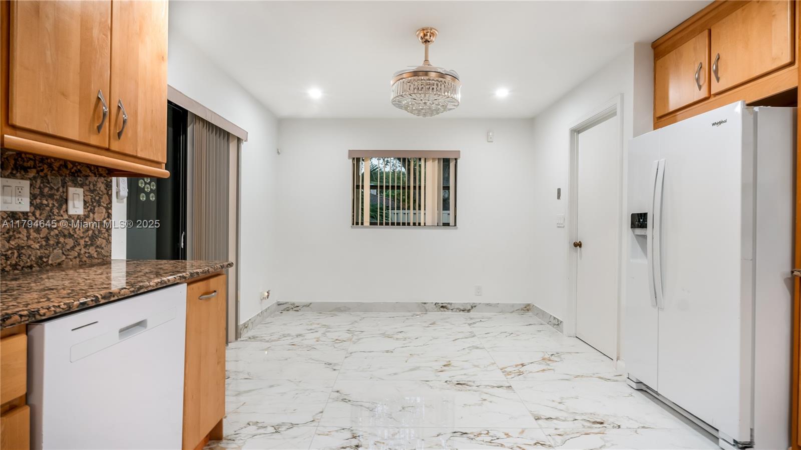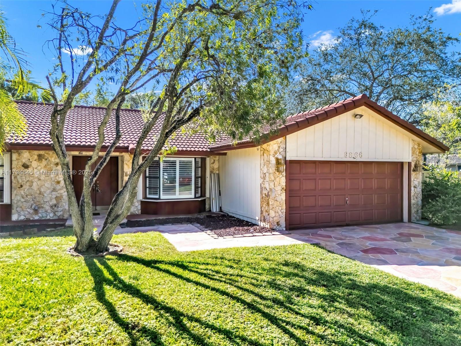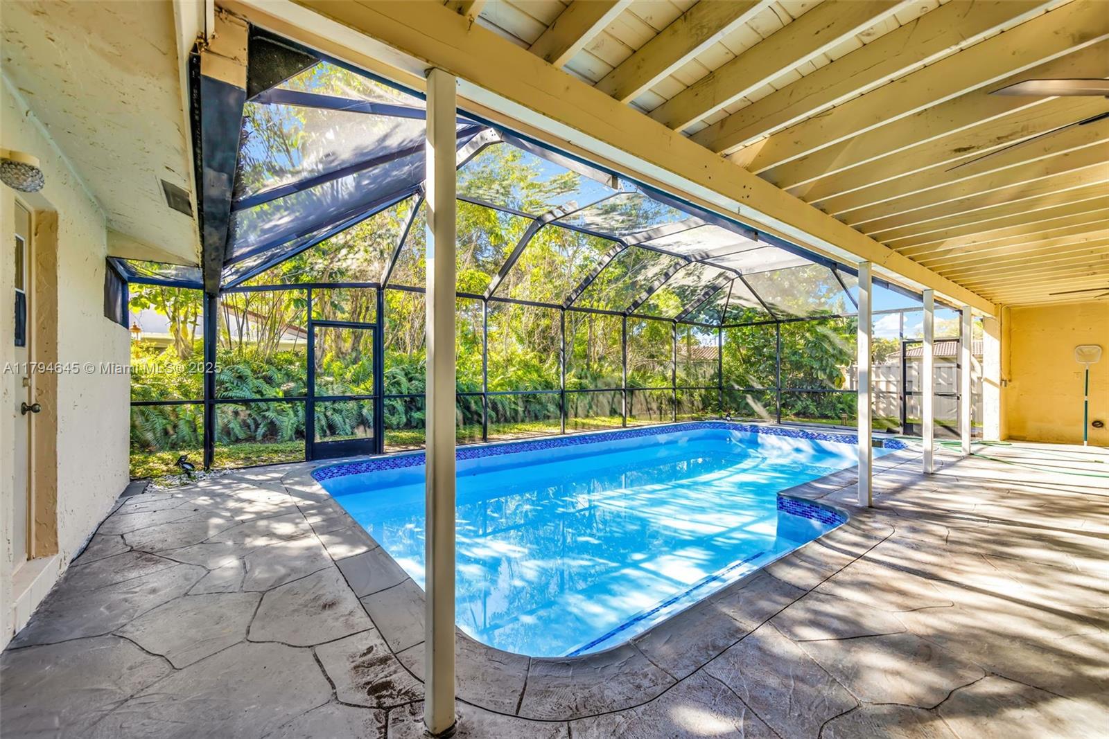 Spacious 4-bedroom, 2-bathroom home with a DEN and 2-car garage is nestled on an oversized corner lot in the highly sought-after Maplewood community, with no HOA! Newer upgrades include luxury marble flooring, modern bathrooms, fresh interior paint, and elegant lighting fixtures. The home features a 2022 flat roof, a 2002 tile roof with 5 years of remaining life expectancy, and accordion hurricane shutters. The kitchen, family room, and primary suite have an inviting, spacious floor plan and a beautiful view of the pool area, ideal for entertaining guests. Located just minutes from parks, top-rated schools, shopping, dining, and nightlife. Easy to show—schedule your private tour today!