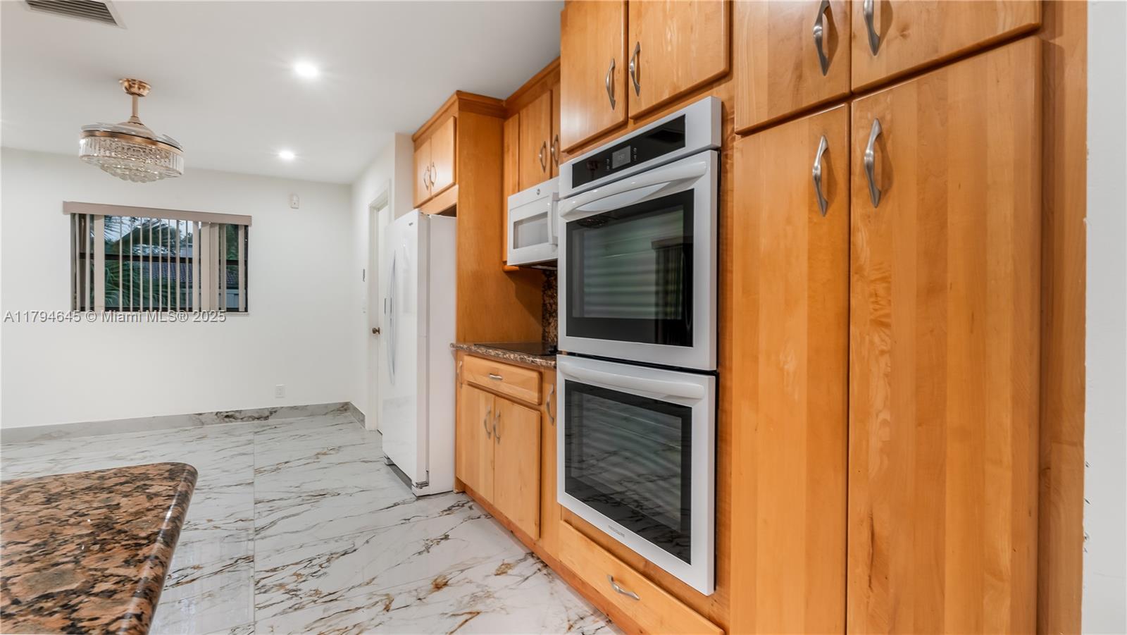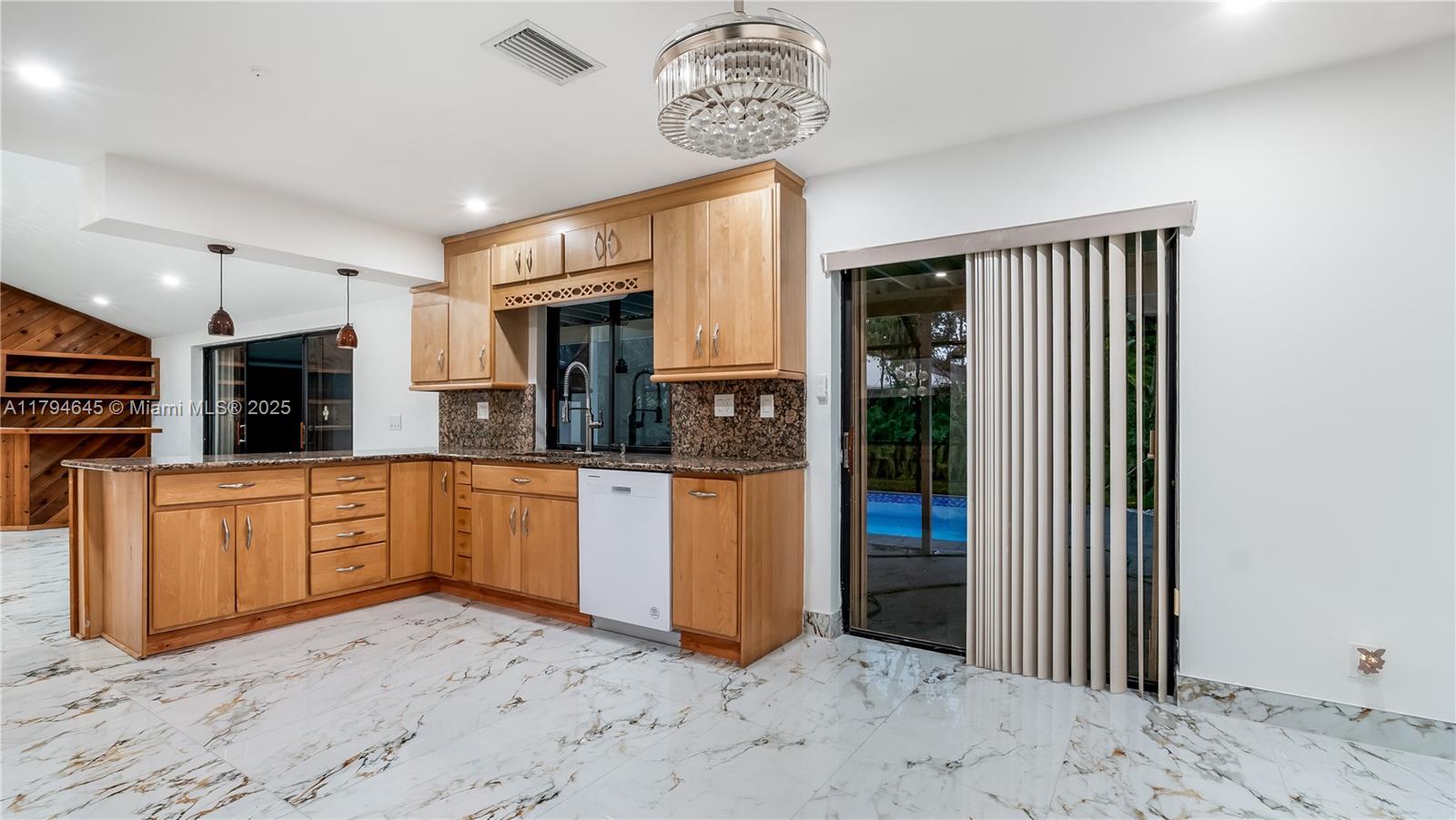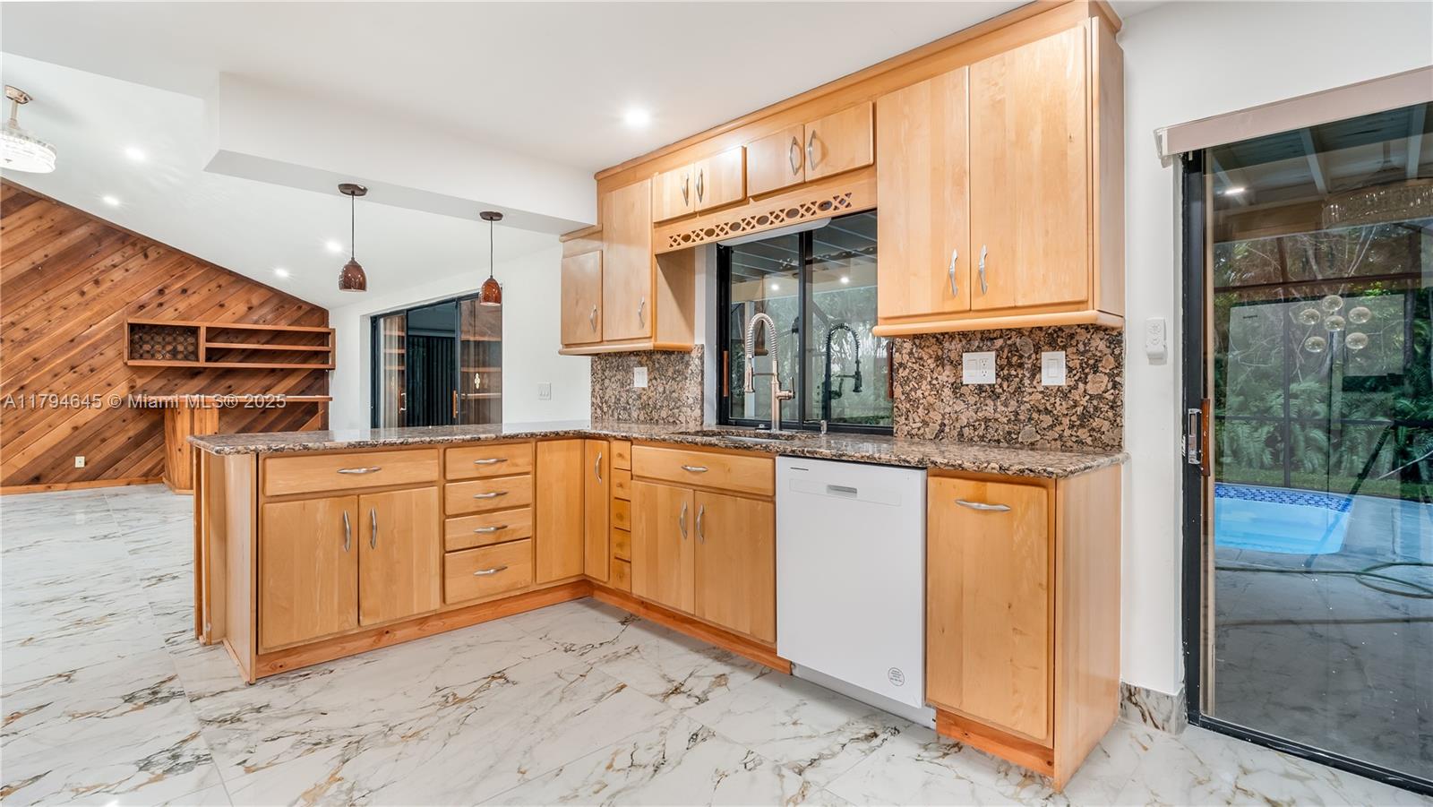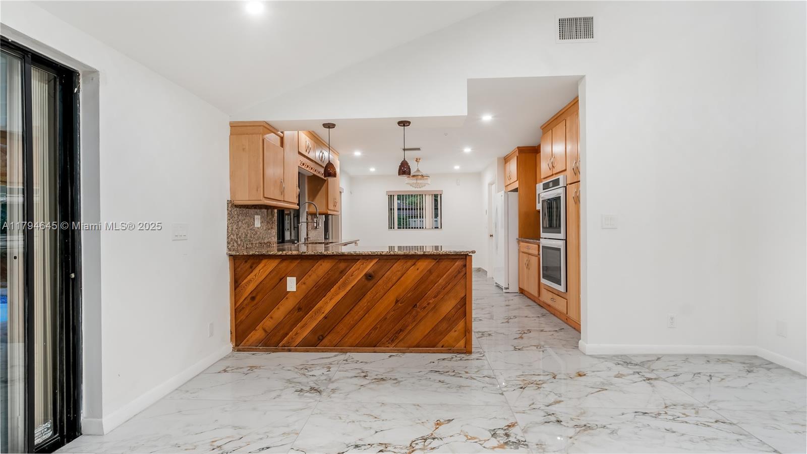 Spacious 4-bedroom, 2-bathroom home with a DEN and 2-car garage is nestled on an oversized corner lot in the highly sought-after Maplewood community, with no HOA! Newer upgrades include luxury marble flooring, modern bathrooms, fresh interior paint, and elegant lighting fixtures. The home features a 2022 flat roof, a 2002 tile roof with 5 years of remaining life expectancy, and accordion hurricane shutters. The kitchen, family room, and primary suite have an inviting, spacious floor plan and a beautiful view of the pool area, ideal for entertaining guests. Located just minutes from parks, top-rated schools, shopping, dining, and nightlife. Easy to show—schedule your private tour today!