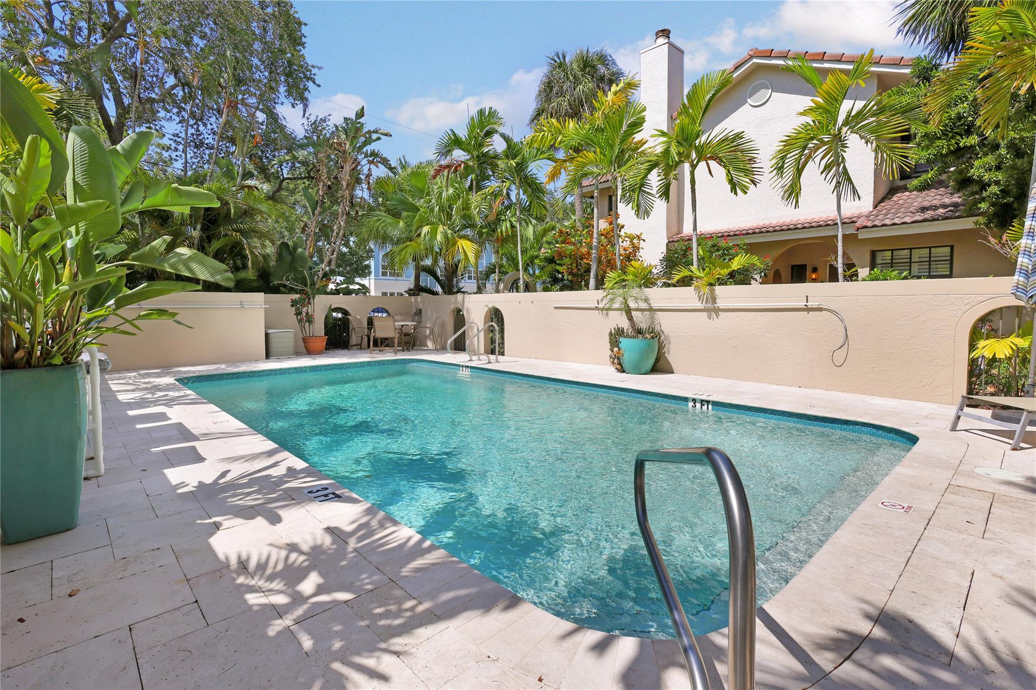 Great priced for GREAT LOCATION in East Fort Lauderdale! Hidden Gem pet-friendly Townhouse Community. Updated paradise w/heated pool, tree canopy, close to beach, restaurants, downtown, airport. Spacious corner home, full IMPACT windows & doors, newer AC, storage. Enjoy sweeping flow of the home w/HUGE Kitchen, Expansive Living Space & wood burning fireplace. Granite counters, wood cabinets new Vinyl Floors, Powder Room & Full sized washer & dryer are on first floor. Large sliders onto private courtyard. Up plush soaring stairs to 2 corner bedroom suites with WICs. Primary has upgraded bathroom, glass shower & double vanities. Guest Suite: bathtub-shower combo. 2-car Tandem parking & guest spots. Come see it, then make it yours! See Virtual TOUR for drone video. FULL RESERVES! Low down.