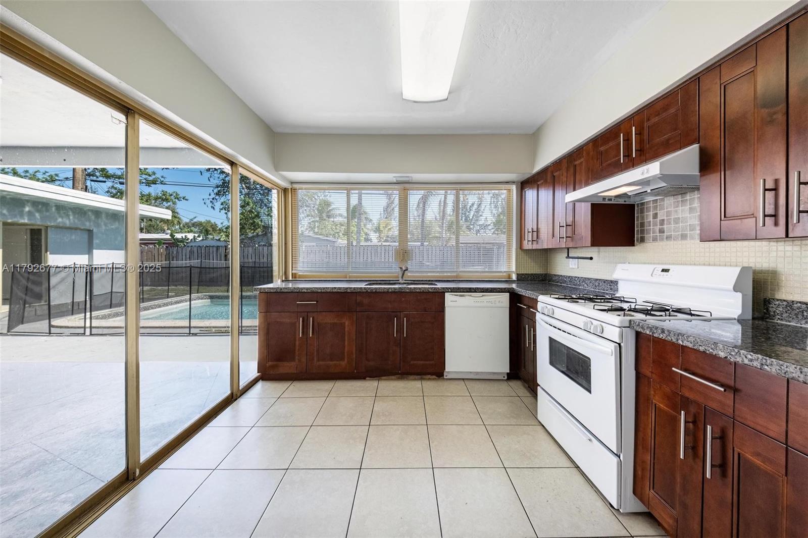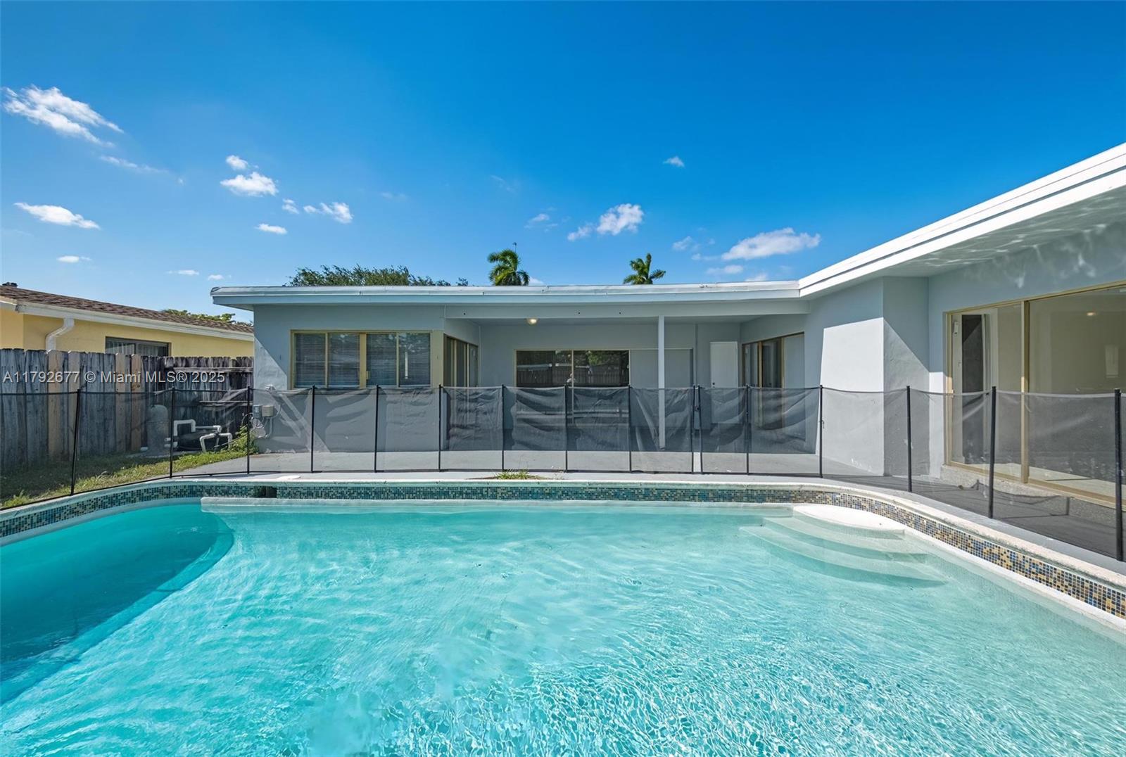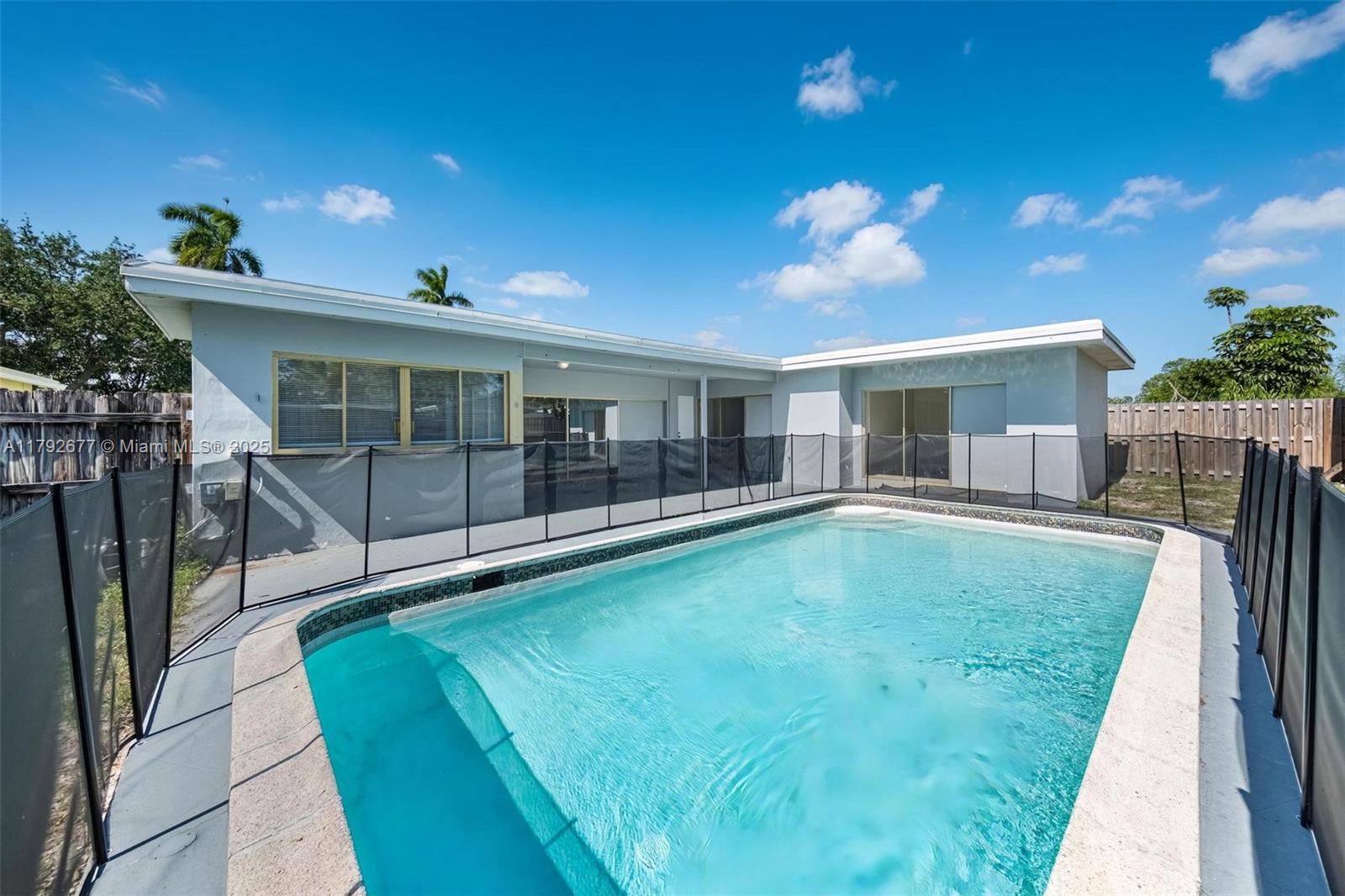 Four-bedroom, two-bathroom home with a one-car garage and a private pool. The pool adds a sense of tranquility, with views from the living room, kitchen, and one of the bedrooms. The kitchen is perfect for entertaining, featuring granite countertops, updated cabinetry, and white appliances. The backyard boasts a large covered porch—ideal for relaxing in the sun or setting up a grill for outdoor cooking. This home has it all—schedule your showing today!