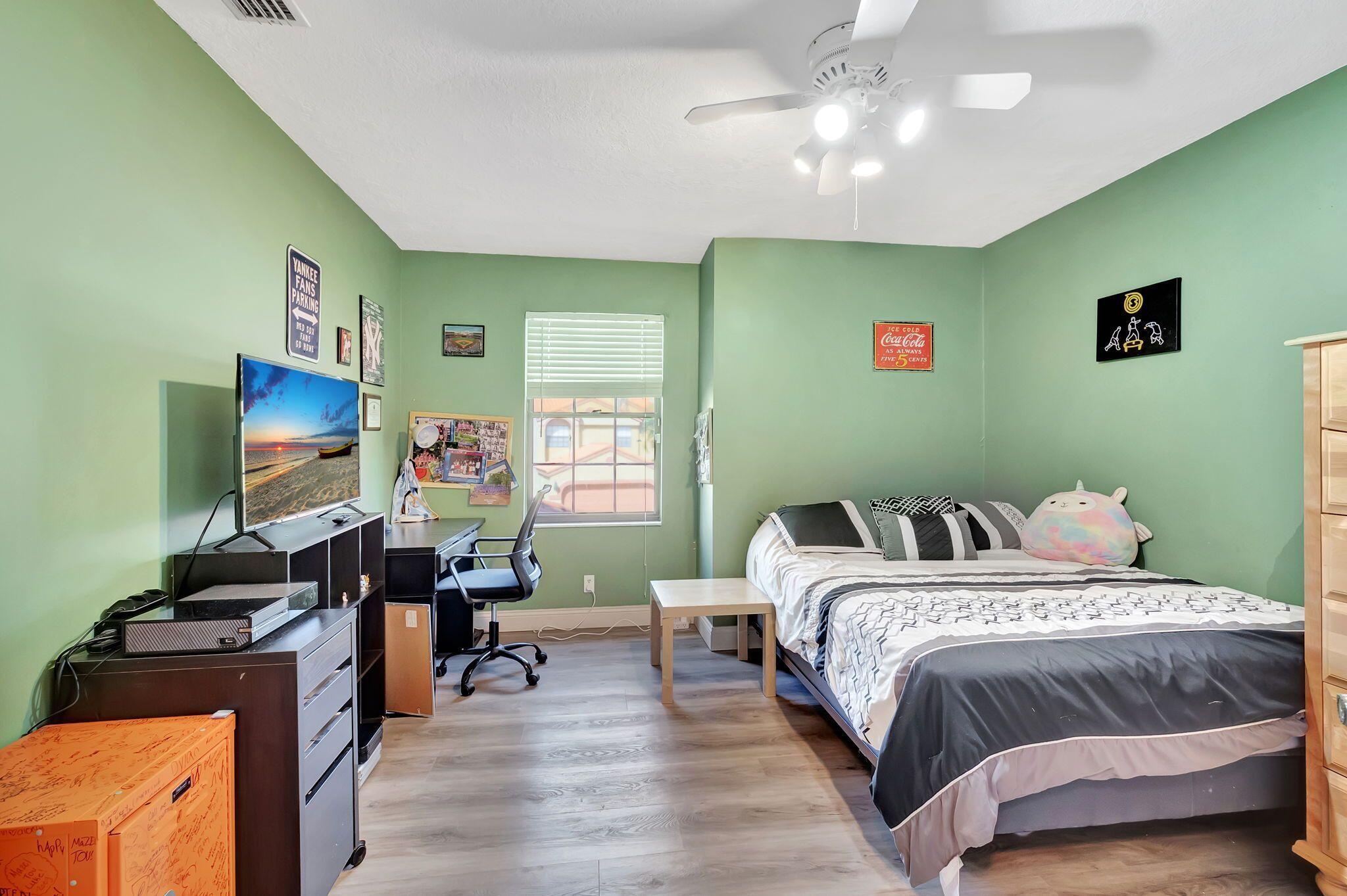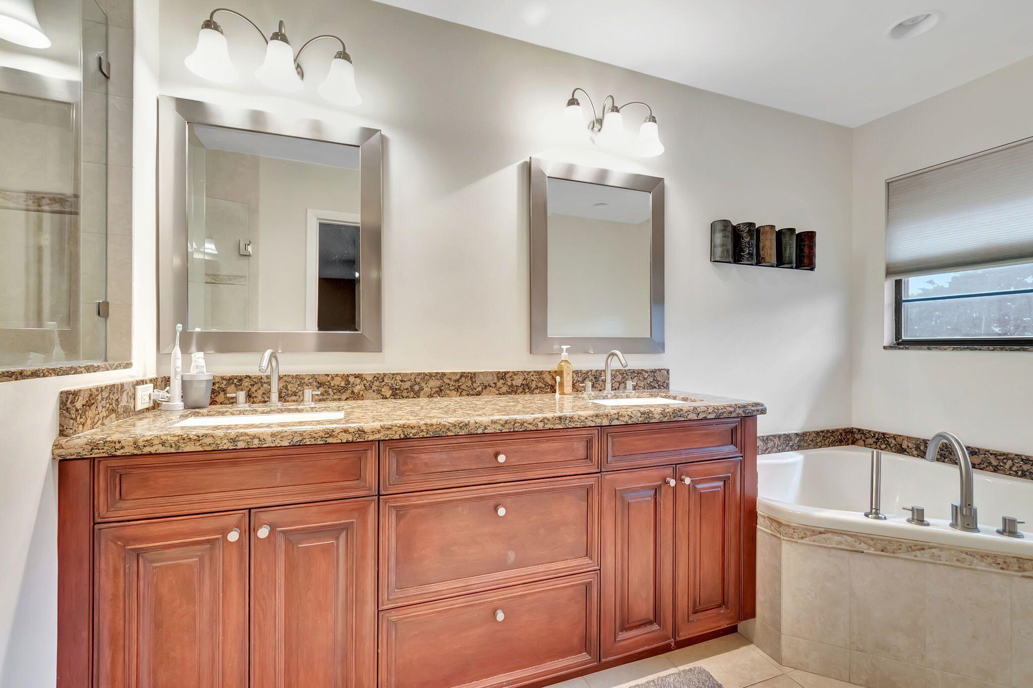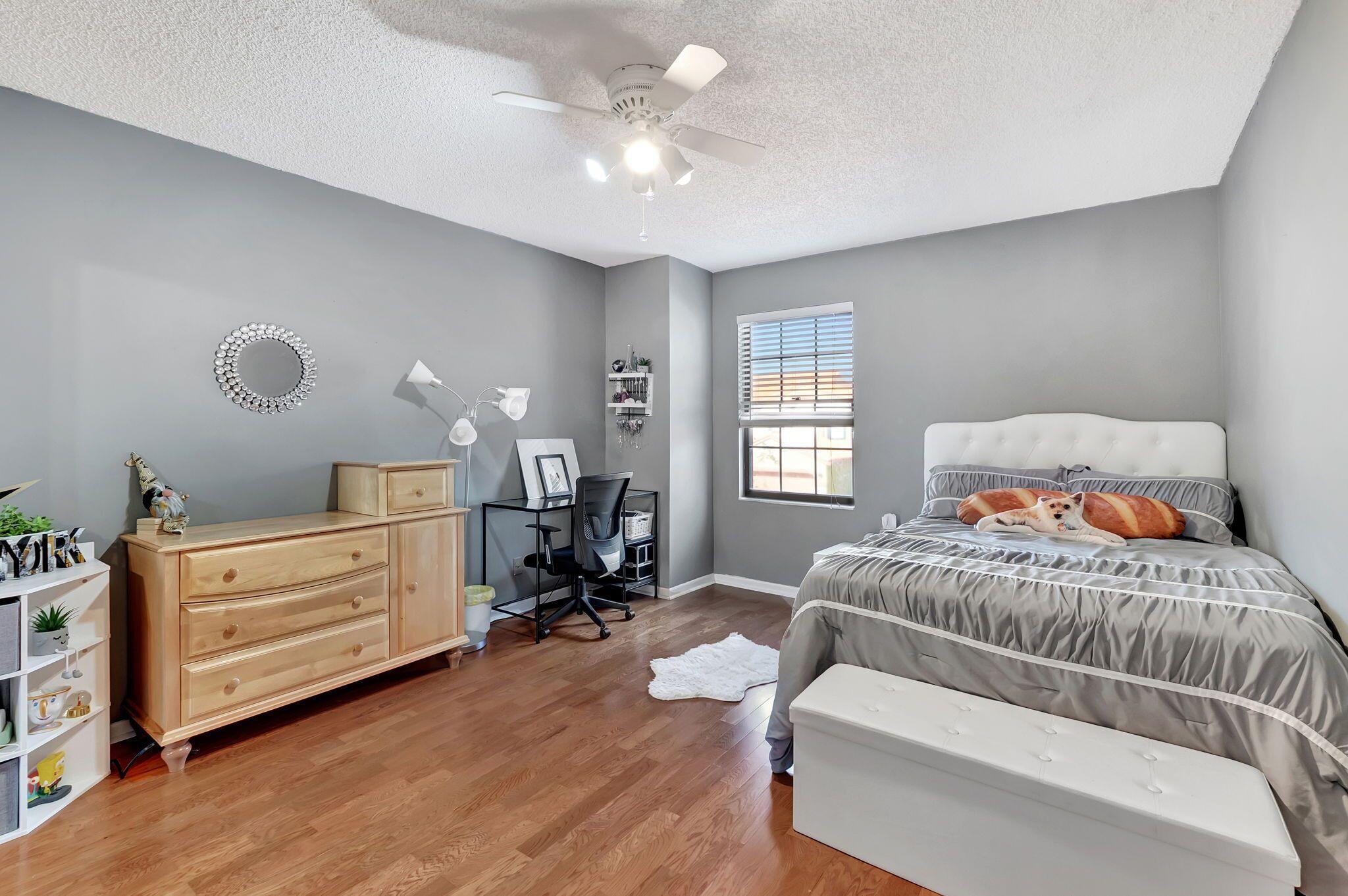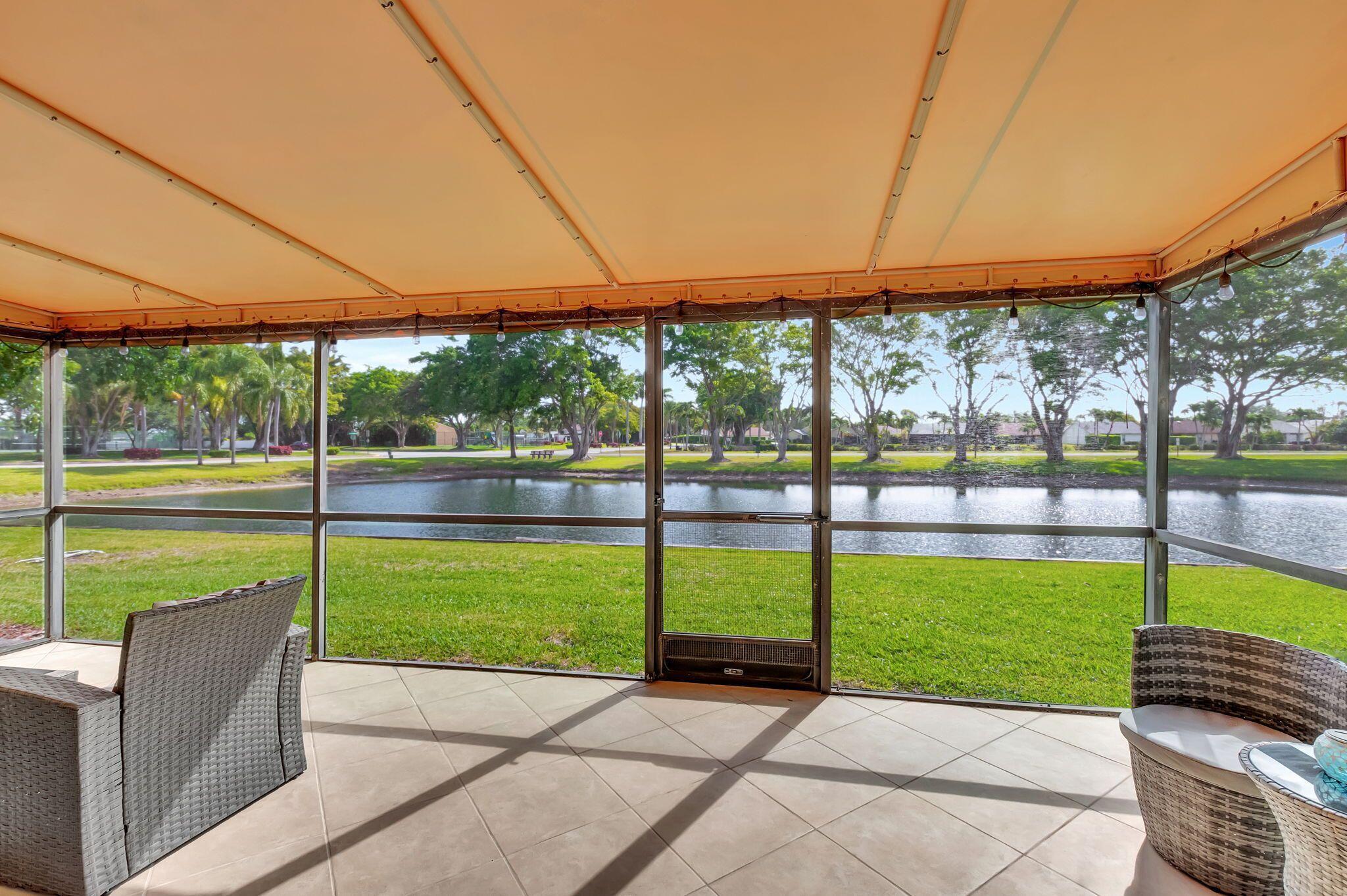 Great west Boca location, zoned for all A schools! This expansive townhouse features 3 large bedrooms, 2.5 bathrooms, and a 2-car garage. You'll find wood-look vinyl flooring throughout living areas, a bright and airy layout with both a living room and family room. Enjoy constant lake views from living room, dining room, primary bedroom and patio! The primary suite is a true retreat, boasting dual vanities with granite counters and updated fixtures, frameless glass shower with floor-to-ceiling tile, and a relaxing Roman tub. Step outside to the peaceful lake views from the large, tiled, covered and screened patio - perfect for entertaining or relaxing year-round. New roof (2016) and accordion shutters for safety and peace of mind.