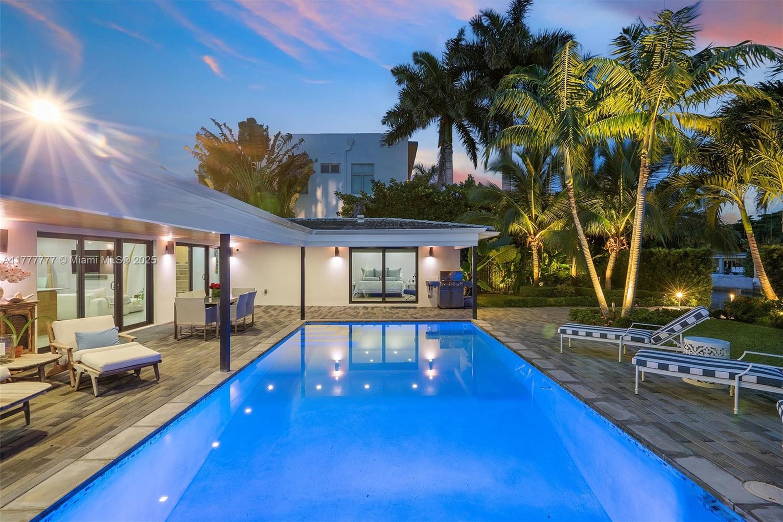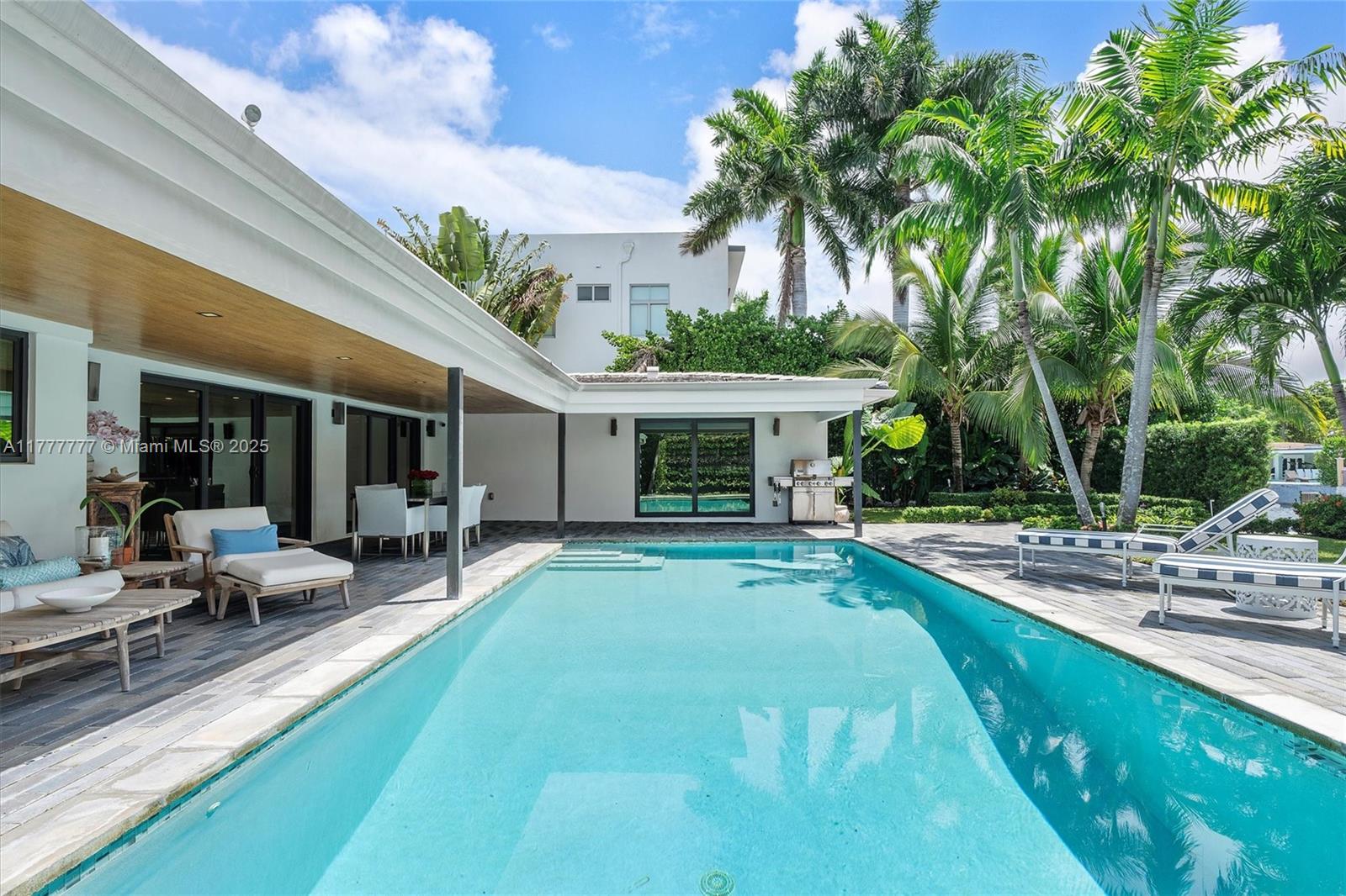 Experience the pinnacle of waterfront luxury in this stunning 5-bedroom, 4.5-bath designer smart home in guard-gated Keystone Point. Boasting over 3,000 sq ft of living space on a 75 ft waterfront lot with direct, bridge-free ocean access, this residence features a gourmet white quartz kitchen with Sub Zero and Fisher Paykel appliances, butler's pantry, and smart home controls for lighting, AC, speakers, and security. Enjoy sun-filled interiors with impact glass, a primary suite overlooking the heated pool, lush landscaping, a covered outdoor lounge, mosquito misting, a living wall, and a 60 ft illuminated dock—minutes from Bal Harbour, beaches, and fine dining on a quiet cul-de-sac.