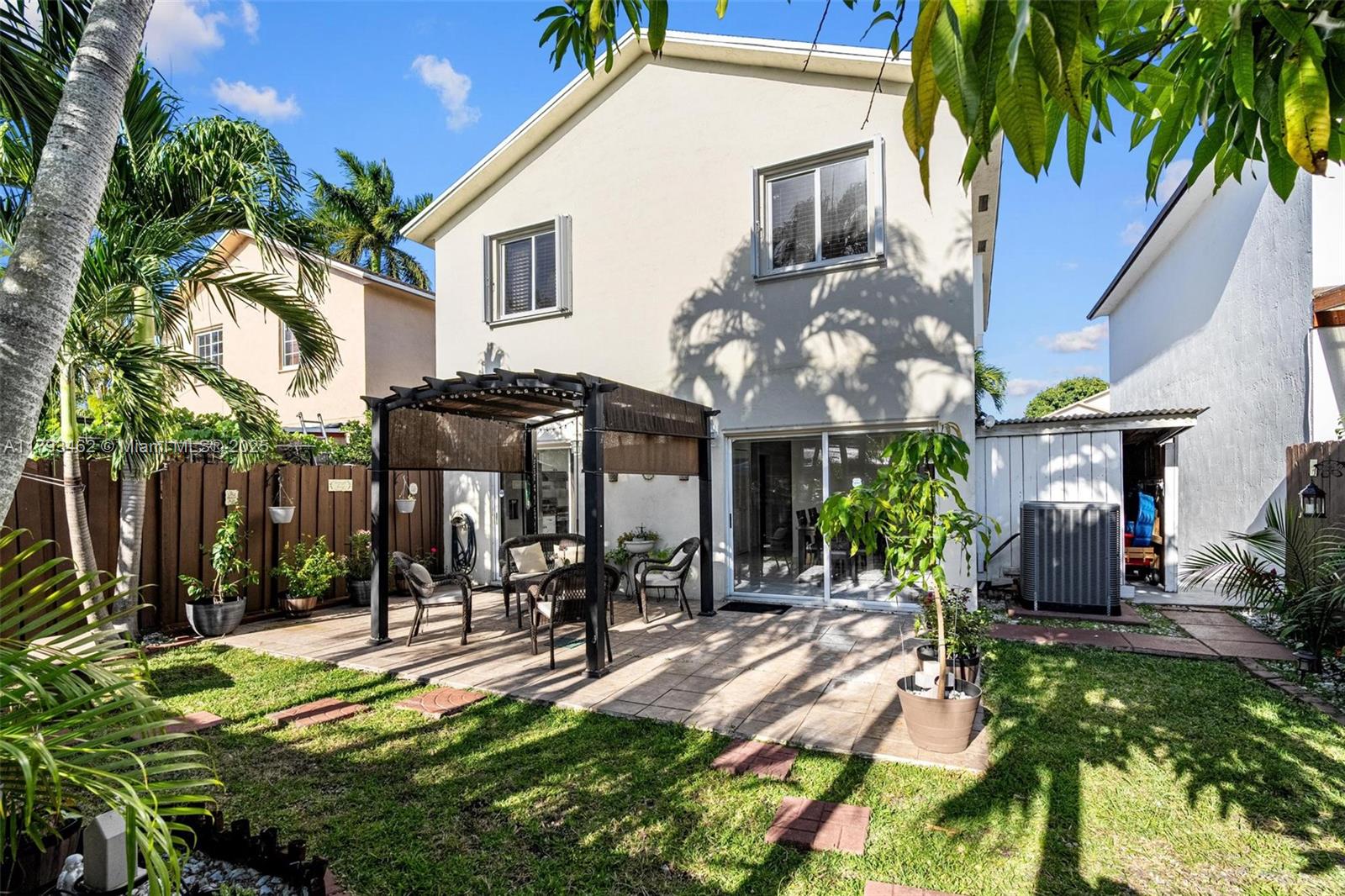 PRICE JUST REDUCED! MUST SELL FAST! Don’t miss out on this incredible opportunity. The seller is extremely motivated and ready to make a deal — moving out of town by the end of July! Come and see this beautiful, well maintained two-story single-family home 4/3 and a converted garage with central AC, perfect extra room, office, or guest space. Inside, you’ll find spacious bedrooms with good closet space, including a generously sized master suite with a walk-in closet. One full bathroom is conveniently located downstairs perfect for guests. Step outside into your private backyard oasis featuring a tiled patio area, a lush grassy section ideal for pets or play and a mango tree offering shade, perfect for family gatherings.