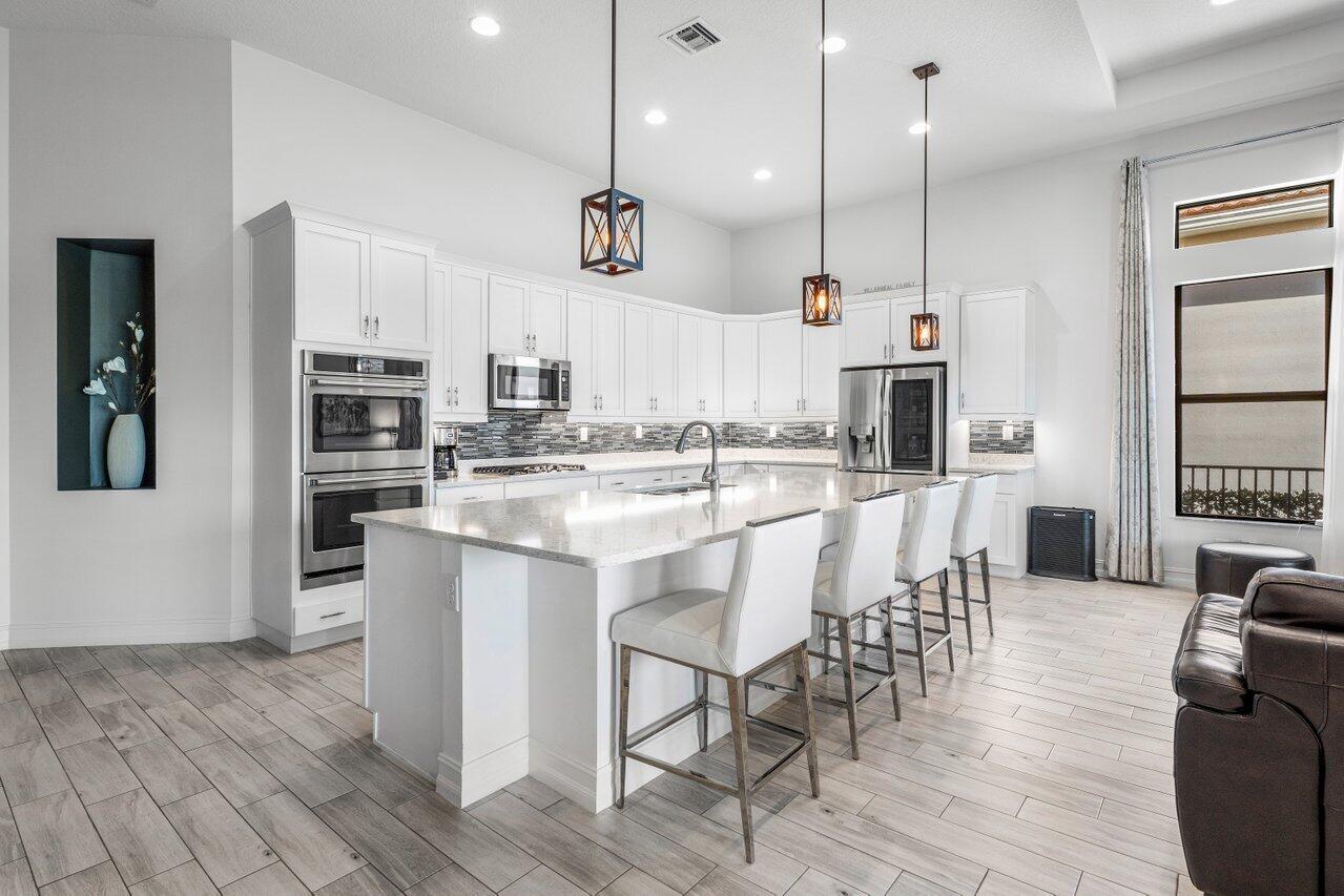 Welcome to your 55+ Dream Home in Parkland, FL ! This modern waterfront residence offers the perfect blend of luxury and convenience, boasting 2 spacious ensuite bedrooms and 2.5 pristine bathrooms within 2,601 square feet of well-designed living space. Enjoy the expansive, north-south exposure from the screened-in lanai, ideal for entertaining guests or simply soaking in the serene views. Step inside to discover a large chef's kitchen with neutral finishes, seamlessly connecting to the great room. The glass sliders pocket into the wall, creating a flawless transition to the lanai and fenced backyard--a true entertainer's paradise. A flex room offers versatile space for your needs, while the whole house generator ensures peace of mind. Custom Closets throughout. Fabulous Hom