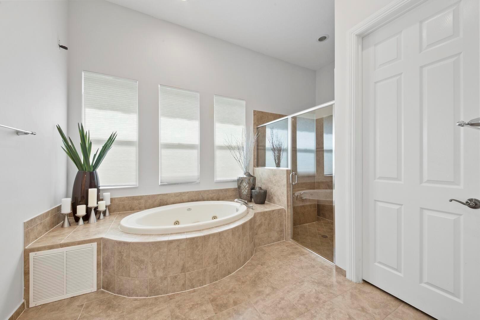 Step into style and sophistication in this beautifully updated 4-bedroom, 3-bath home featuring a newer roof and designer details throughout. From the grand foyer to the expansive great room and elegant formal dining area framed by transom windows, every space is crafted for comfort and impact. The gourmet kitchen impresses with crisp white cabinetry, granite countertops, a matching backsplash, stainless steel appliances, and a sleek snack bar--perfect for casual dining or entertaining. The luxurious primary suite features a double-door entrance, tray ceiling, and custom walk-in closet, while the spa-like bath invites relaxation with dual vanities, a jetted soaking tub, and a separate walk-in shower