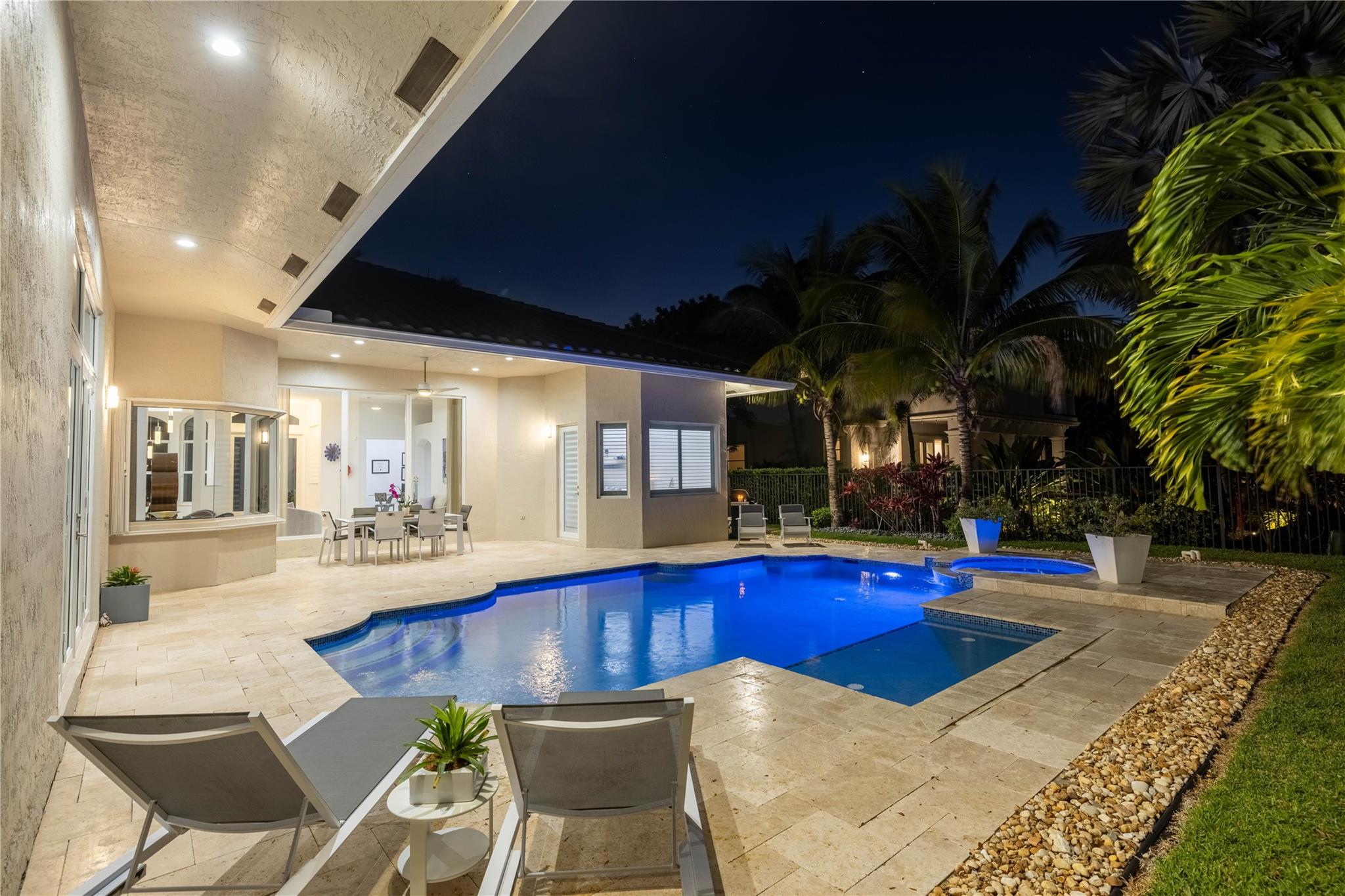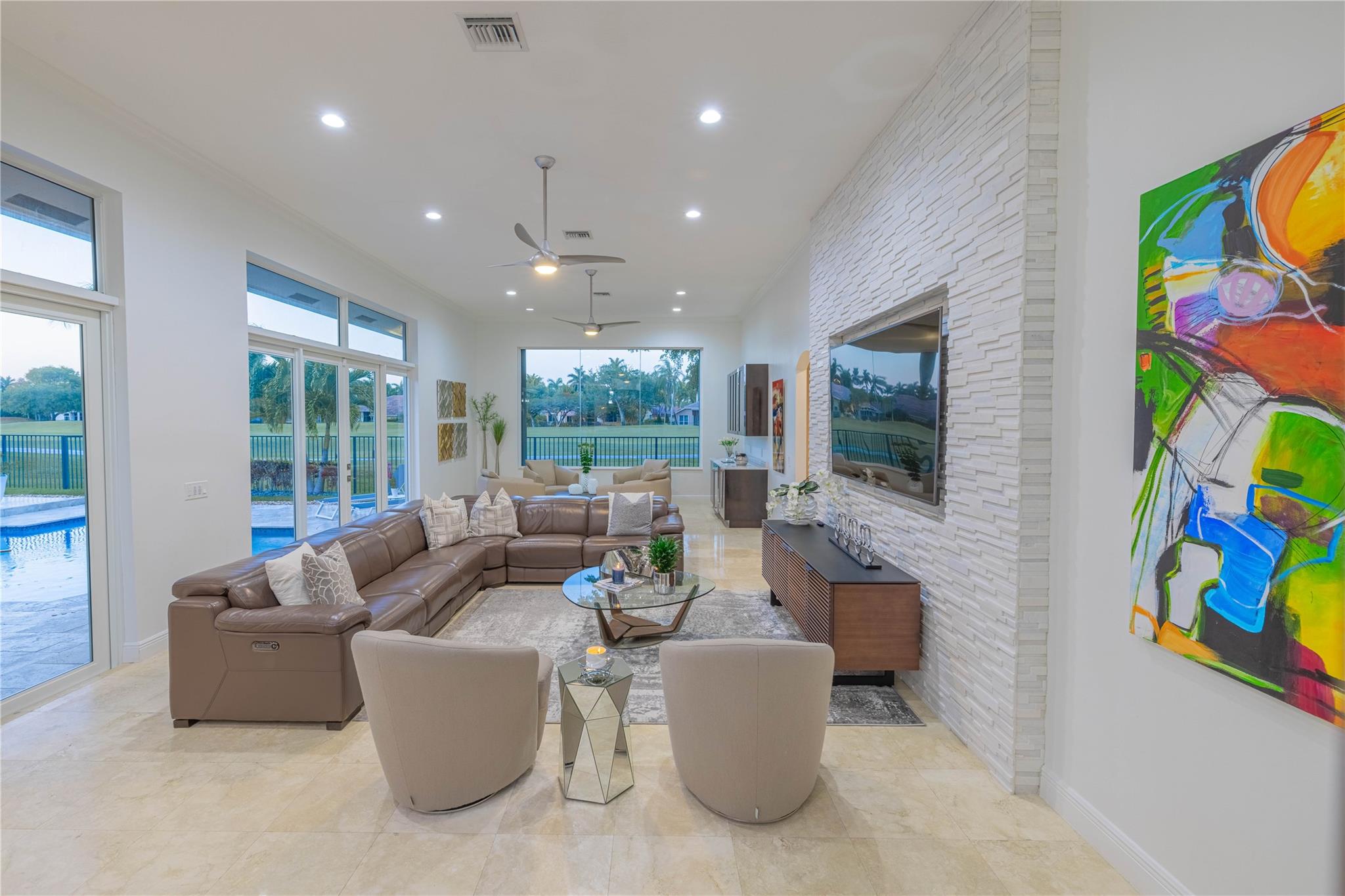 TEE TIME! Stunning, completely renovated, modern elegant 5BD+Den/4BA/3CG residence with new 2022 roof, all new impact glass, oversized heated salt-water pool with integrated spa & sun-shelf, travertine deck and sweeping golf views! Step inside to a luminous open concept interior bathed in natural light, highlighted by soaring ceilings & walls of glass that seamlessly blend indoor elegance with outdoor beauty. An expansive family room includes an extended entertainment lounge with custom built-in bar, framed by huge windows with spectacular golf views! From the state-of-art kitchen straight out of a design magazine, to the sleek spa-inspired primary bathroom, to exquisite custom lighting, every feature has been meticulously designed for both comfort and luxury. Welcome home to Weston Hills!