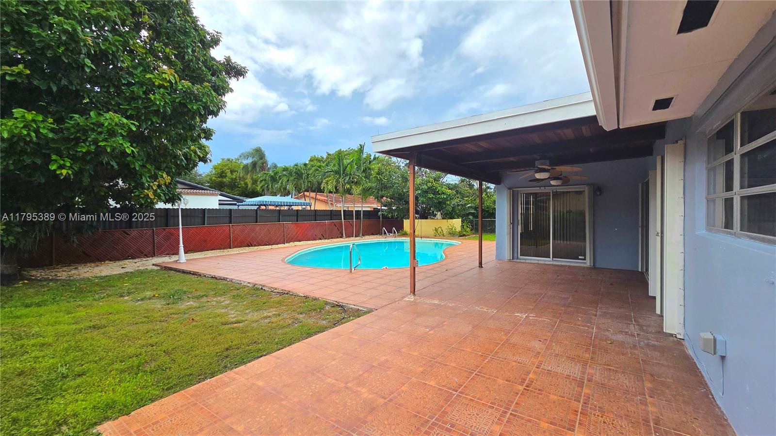 This is a rare opportunity to customize this 3-bed 2 bath home with a 1 car garage in sought after Miami Lakes. The home features a family room connected to a covered back terrace which overlooks a spacious backyard and pool which is perfect for outdoor living and entertaining. The AC system is less than 2 years old and the home has been freshly painted. It also has been partially updated, including the electrical panel box but needs your personal touches which is reflected in the selling price. The property is located on a quiet street which has 2 tot lot parks. It is also located within walking distance to top-rated schools, parks, and Main Street shops and cafes. There is endless potential in this prime location. The property is being sold As-Is but inspections are always welcomed.