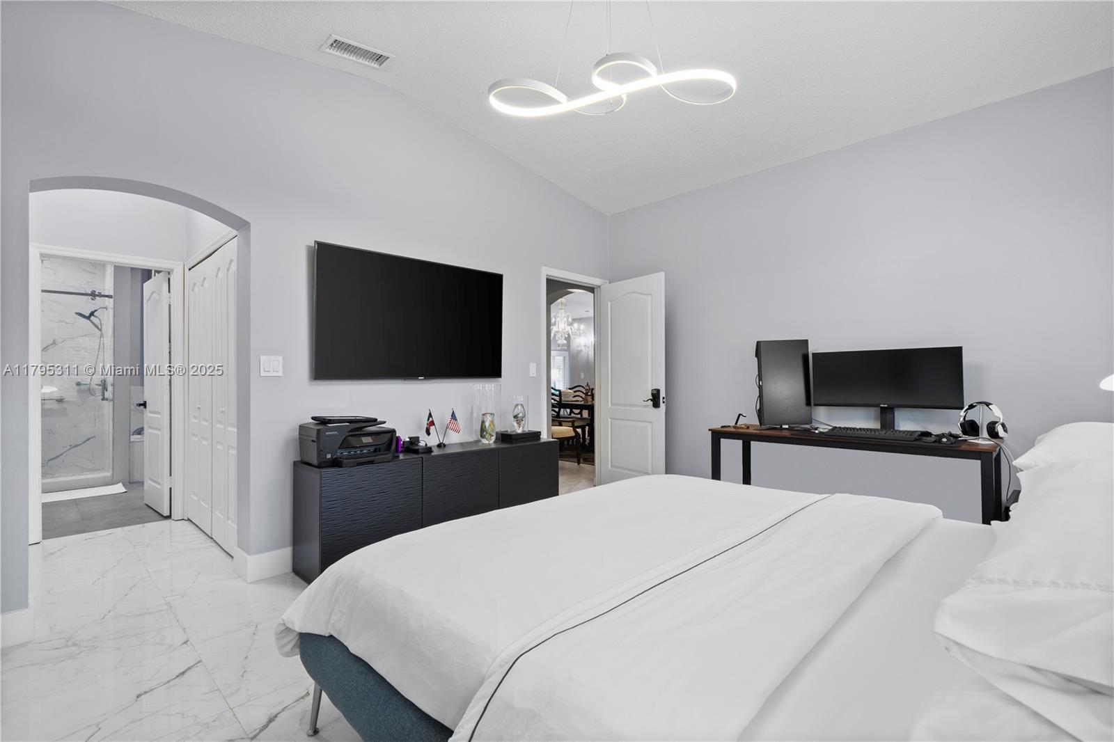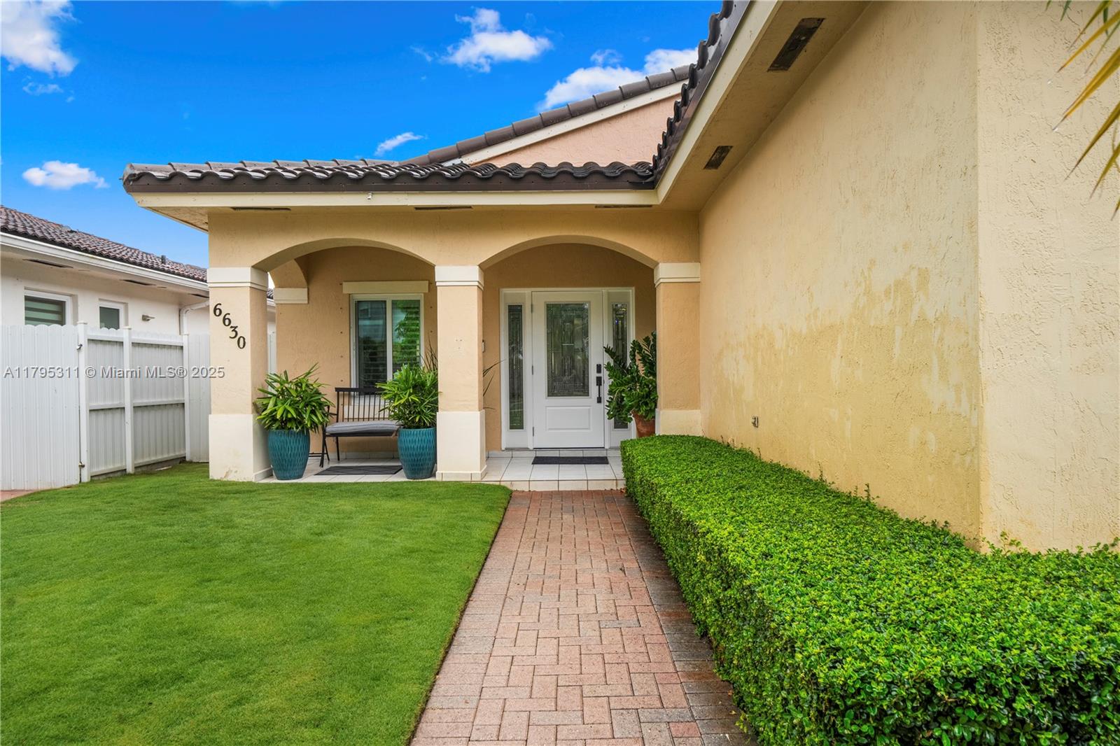 This stunning single-family home boasts 4 bedrooms, 2 bathrooms, and a spacious 1 car garage. The interior features, luxurious quartz countertops, and Bahama blinds throughout. Enjoy peace of mind with impact doors and windows, and stainless steel appliances in the updated kitchen. The master bath is a true oasis with modern finishes and a sleek design. This home is perfect for entertaining or relaxing with family and friends. Don't miss out on this rare opportunity to own a piece of paradise in a secure and prestigious neighborhood.