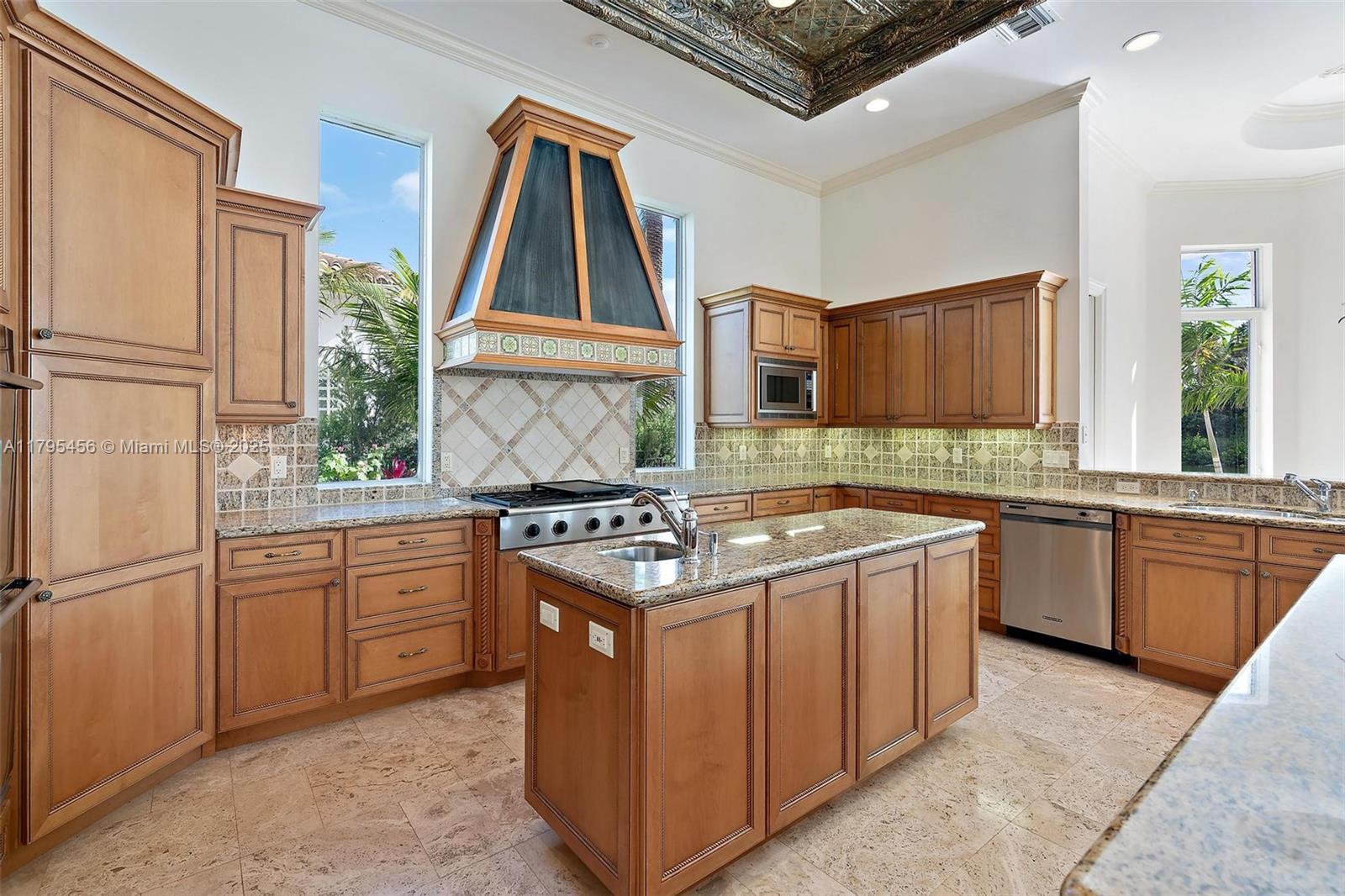 Beautiful waterfront property on a point lot with 260' of frontage and deep water dockage for up to an 80' vessel (special exception for 100' TBD) nestled in the prestigious gated waterfront community Harbour Isles. Panoramic views of the Intercoastal Waterway and North Palm Beach Country Club golf course. This 5 bedroom home includes a ground floor master suite, 1st floor, office, large open kitchen with a gas cooktop, wine cooler, center island and breakfast bar surrounded by a summer kitchen. Spacious outdoor patio includes bar, and BBQ. Dock includes boat and jet ski lift.. Great for the seasonal boat parade! Only minutes to Palm Beach Airport, gourmet markets, restaurants and all the amenities that make this part of Florida the place for a high quality, yet casual lifestyle.