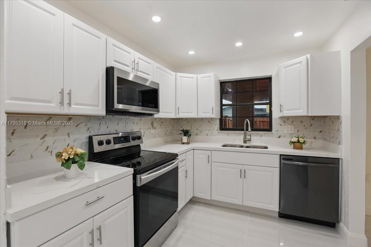 This stunning 3 Bedrooms 2 full Bathrooms, making it ideal for large families or those who love to entertain. A beautiful open kitchen, featuring brand new quartz countertops complemented by sleek white cabinetry & new stainless steel appliances. Specious laundry room, with a tankless water heater. Step outside to your backyard, with double covered patio, perfect for those summer days to gather with friends & Family. Property sits on a corner lot with a double driveways on each side of the house, it's perfect for those with multiple vehicles, a boat and/or camper. NO HOA restrictions, perfect for Airbnb or a family to make their HOME!