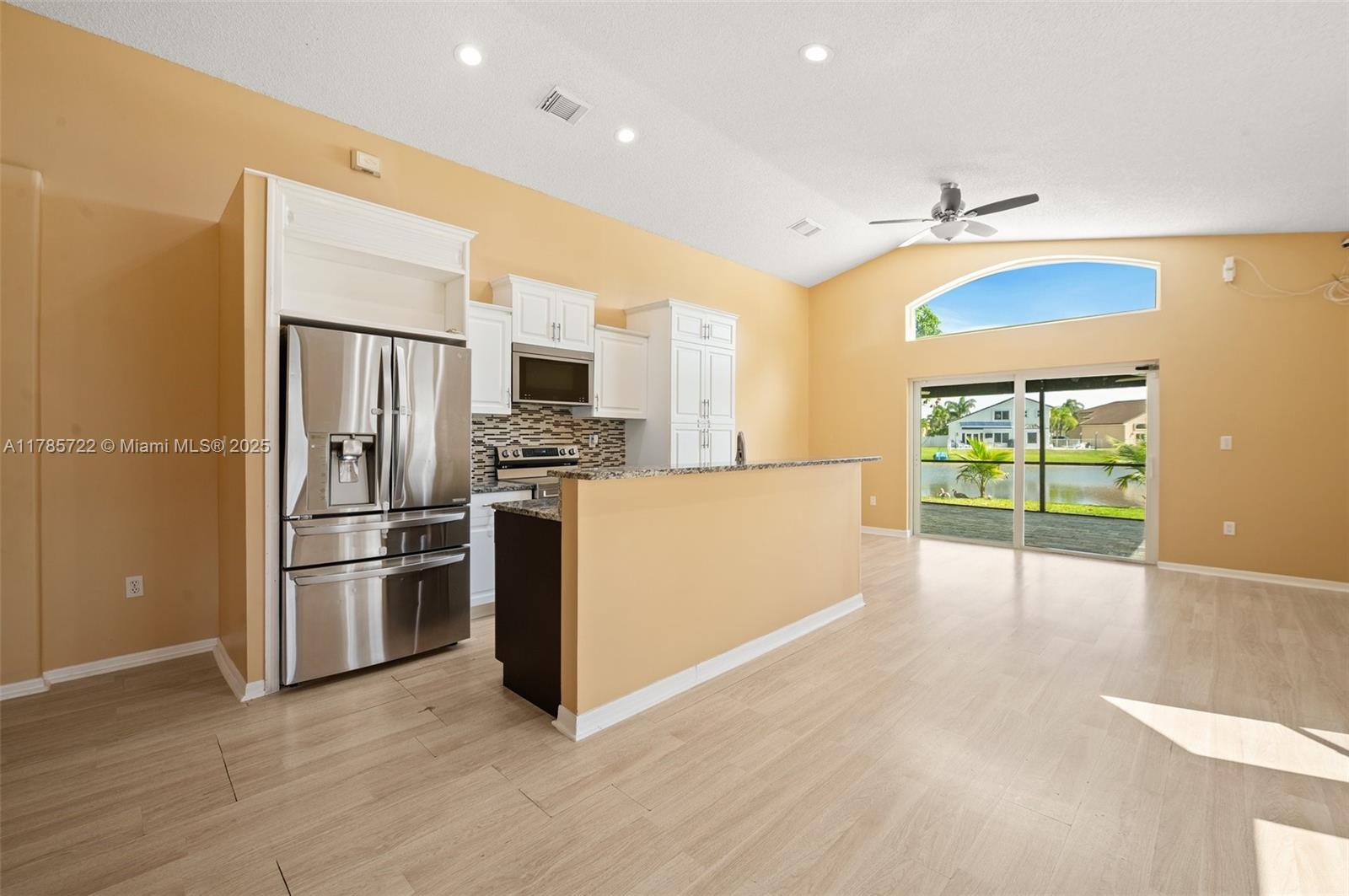 MOTIVATED Seller offering $15,500 CONCESSION to buyer at closing! Home offers stunning lake views & a spacious COVERED SCREENED PATIO - perfect for relaxing or entertaining year-round. PLUS flexible den/office space, easily converted back to extend the main living area. Inside you will find a remodeled kitchen w/a modern layout, featuring newer appliances including a Microwave/Air Fryer Oven & Cooking Range. The 2nd bathroom has been tastefully renovated, updated. Additional upgrades include IMPACT WINDOWS & DOORS, a NEW ROOF INSTALLED IN 2023 and no carpet throughout with easy maintenance and clean living. Located in a desirable 24-hour manned gated community, residents enjoy low HOA fees that include cable and internet. Conveniently close to top-rated schools, stores & highways!