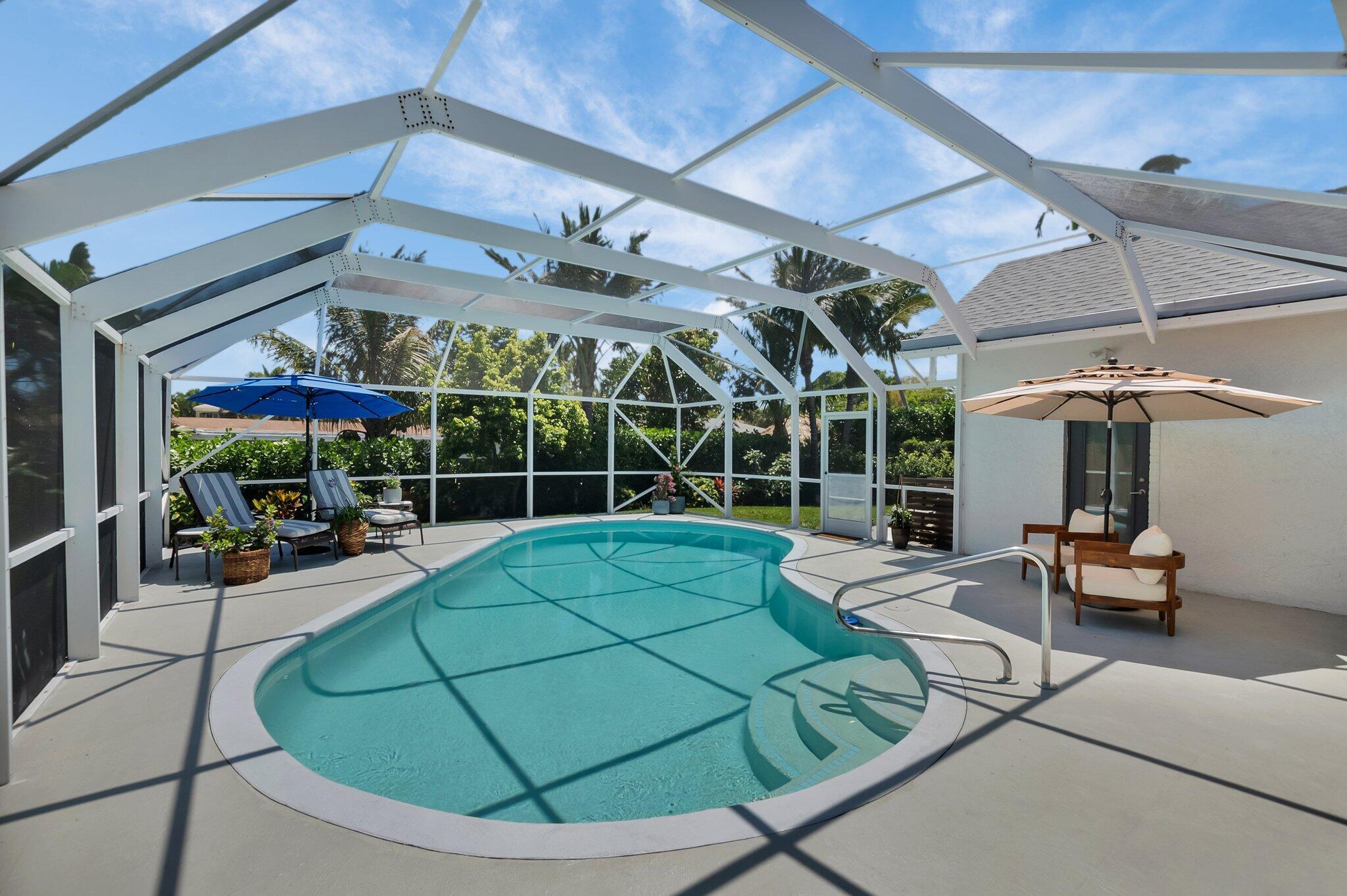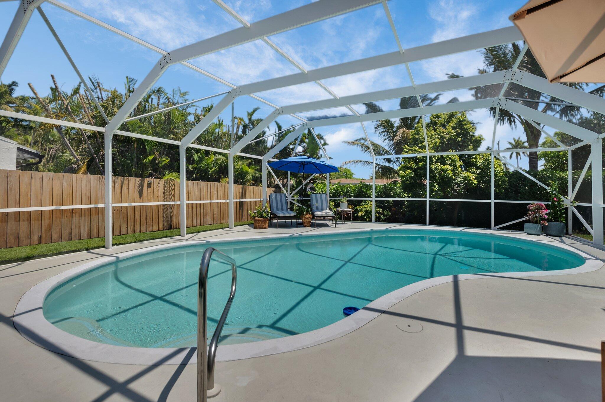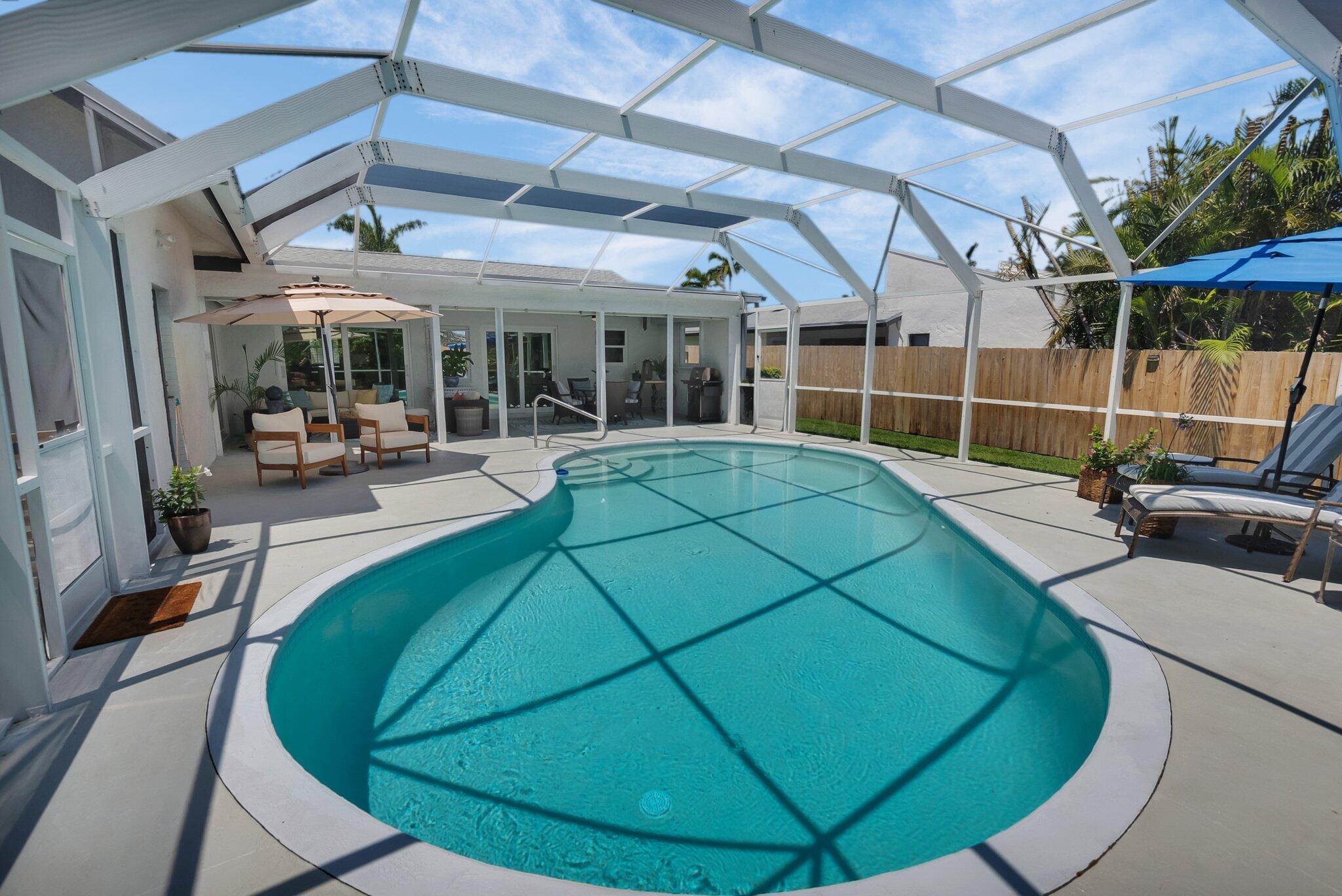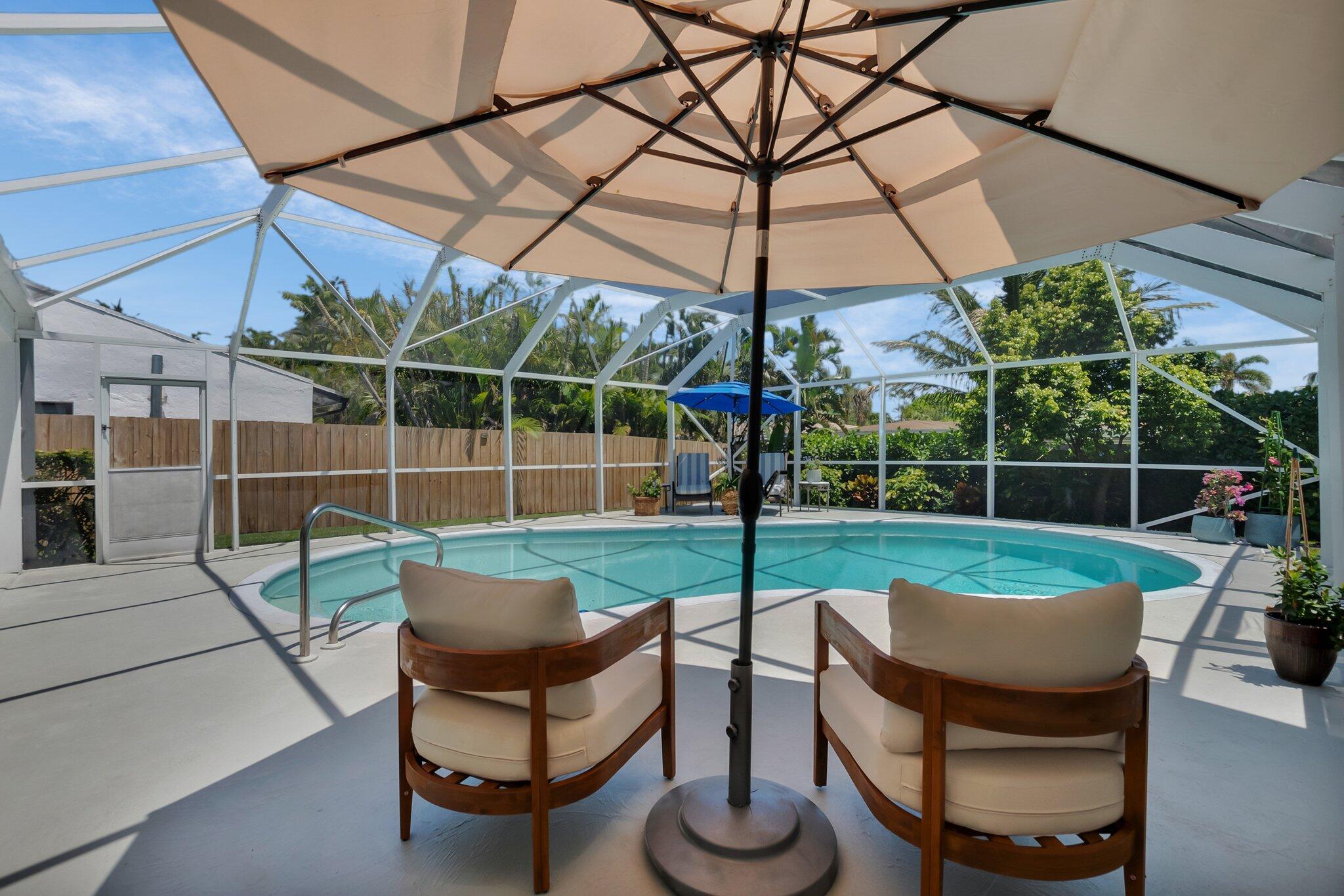 Gorgeous home in East Boynton, bring your boat! No HOA and less than a mile from the Boynton boat ramp. Find retreat in this beautiful one story three bedroom two bath home with a sparkling private pool and lush landscaping for privacy on a large lot. ALL IMPACT windows and doors! Open concept kitchen with views of the dining room, living room and family room. New kitchen and appliances. Elegant travertine marble flooring. The bedrooms showcase hardwood flooring. Primary bedroom is so peaceful, overlooking the pool and offering a new very large en-suite bath. Brand new custom-built walk-in closet. Huge walk-in shed in the backyard for storage. Near shops and Atlantic Avenue restaurants! Relax in the tranquil seclusion of your pool home next to the Intracoastal! No HOA