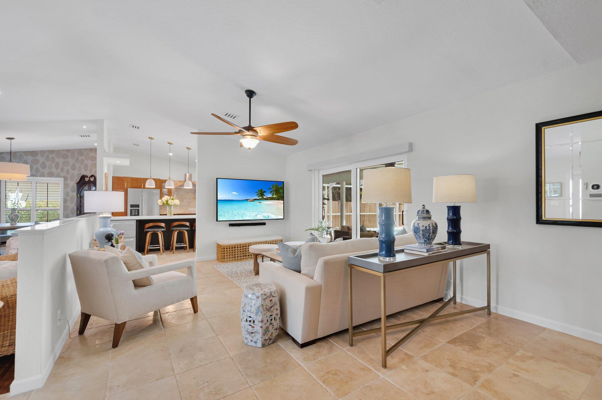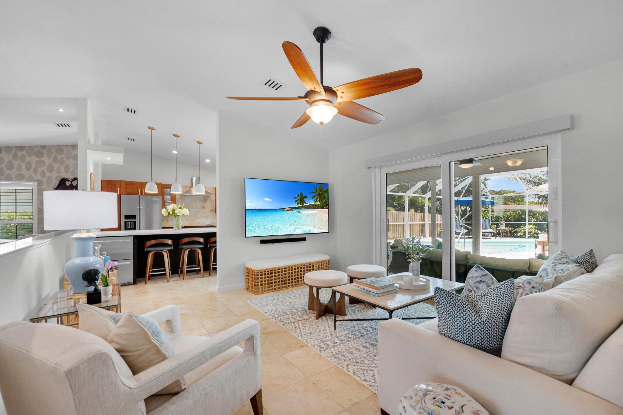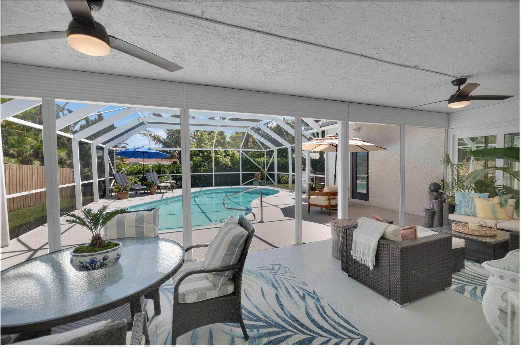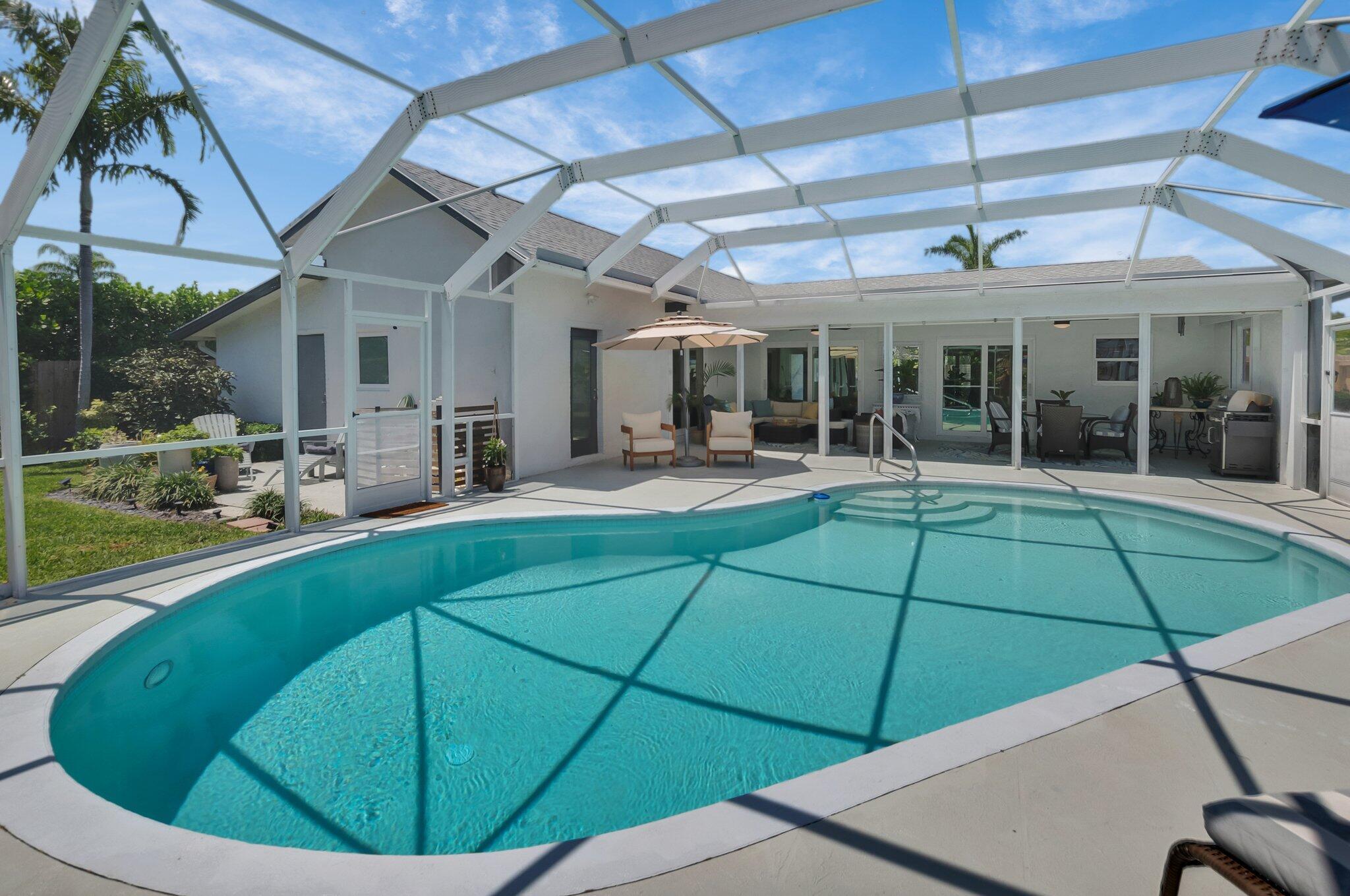Gorgeous home in East Boynton, bring your boat! No HOA and less than a mile from the Boynton boat ramp. Find retreat in this beautiful one story three bedroom two bath home with a sparkling private pool and lush landscaping for privacy on a large lot. ALL IMPACT windows and doors! Open concept kitchen with views of the dining room, living room and family room. New kitchen and appliances. Elegant travertine marble flooring. The bedrooms showcase hardwood flooring. Primary bedroom is so peaceful, overlooking the pool and offering a new very large en-suite bath. Brand new custom-built walk-in closet. Huge walk-in shed in the backyard for storage. Near shops and Atlantic Avenue restaurants! Relax in the tranquil seclusion of your pool home next to the Intracoastal! No HOA