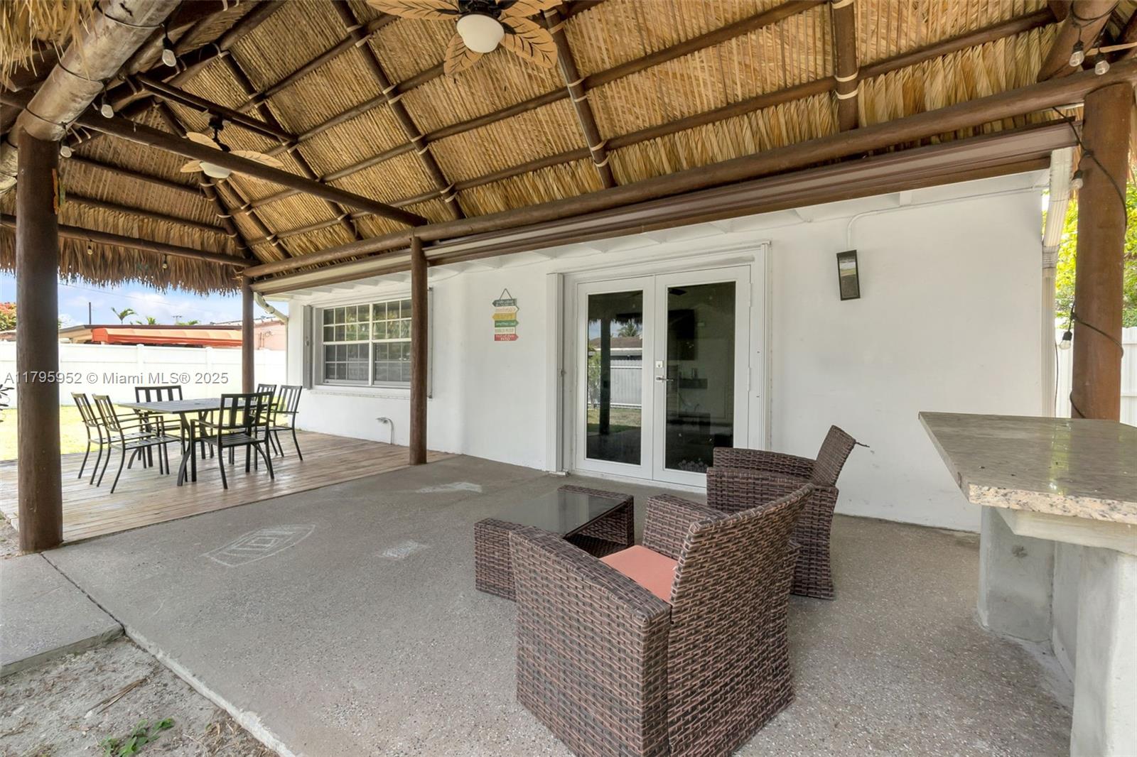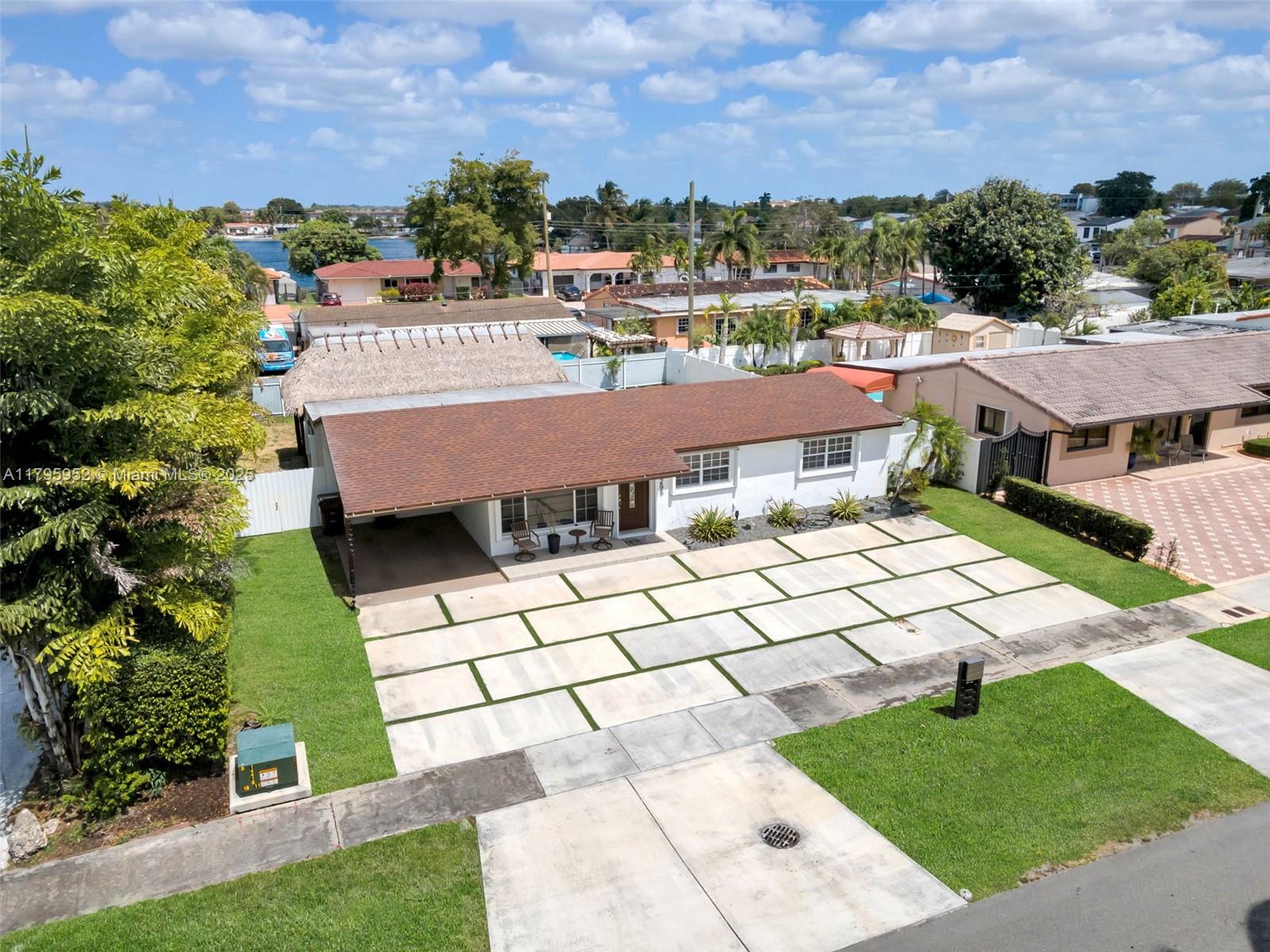 Charming 3-bed, 2-bath home in the heart of Hialeah! Featuring 1,327 SF of living space on a spacious 7,500 SF lot, this home offers an updated kitchen and baths, tile floors throughout, and a 2020 roof. Enjoy peace of mind with accordion shutters and impact French doors. Entertain under the Tiki hut-covered patio or in the expansive backyard. A modern concrete driveway provides ample parking. A perfect blend of comfort and style—don't miss this one!