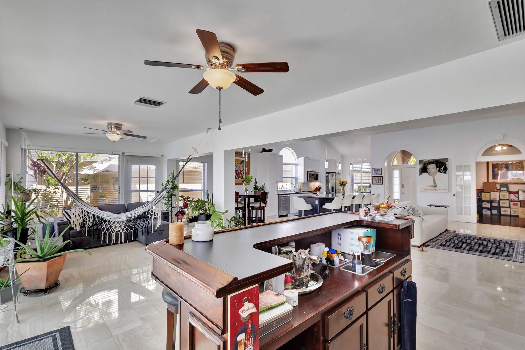 Experience the joy of cooking in the custom chef's kitchen, complete with exquisite granite countertops and beautifully restored marble flooring, perfect for culinary creators and entertaining guests alike. Imagine hosting unforgettable gatherings in the multiple indoor and outdoor entertainment spaces designed for enjoyment at every level. Whether you're relaxing at the resort style freeform pool, under the sail canopy at the outdoor bar, enjoying the luxurious screen enclosure, tending to your orchid house, or soaking in the tranquil canal views, this home is designed for memorable moments. This is not just a house; it's the ideal venue for celebration--ample space for a Motown Review or any event you can envision! All of this is nestled in the vibrant heart of W. Palm Beach.