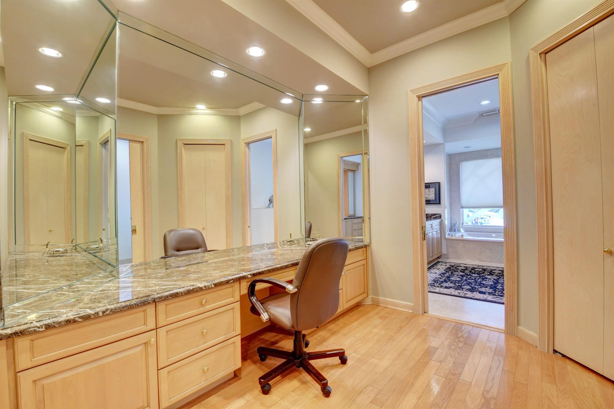 This expansive, custom-built estate offers luxurious single-story living with soaring 18-foot ceilings and top-tier finishes throughout. A grand entryway leads to an open-concept living room with fireplace and a formal dining area featuring a large wet bar--perfect for entertaining. With 5 spacious bedrooms (one used as an office) and 4.5 bathrooms, this home features a desirable split-bedroom layout. The impressive primary suite includes two full bathrooms and two huge walk-in closets. The chef's kitchen flows seamlessly into a massive family room and dining nook, all opening to a screened porch with Southern serene views of the pool, lush gardens, & the peaceful 5th hole of the golf course. Additional highlights include a dog run, full-house generator, and no interior steps. Bocaire