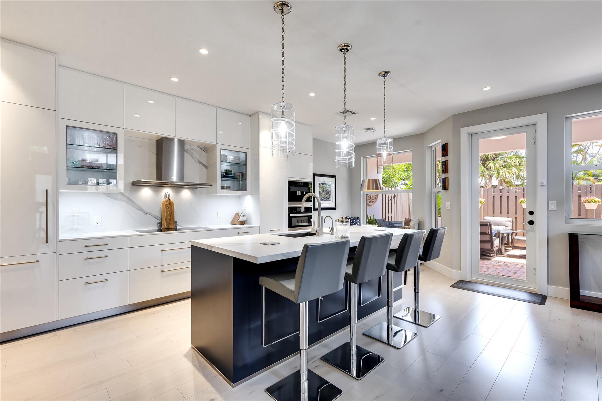 Stunningly updated 3 bedroom, 2.5 bath plus den townhouse in the heart of Victoria Park in one of few gated communities in Downtown Fort Lauderdale. There is an abundance of natural light when you enter the large living room with soaring ceilings, coral fireplace and impact windows and doors throughout. Features include a new chef's kitchen with large island, stainless Miele appliances, built-in coffee maker and breakfast nook. First floor has a large dining area with wet bar, bonus room for den or office, powder room and access to a spacious private patio. Second floor boasts a large primary suite with luxurious bathroom including soaking tub, separate shower and dual vanity. Two additional bedrooms with updated bathroom and laundry room also on second floor. Walk to Las Olas and Beach!