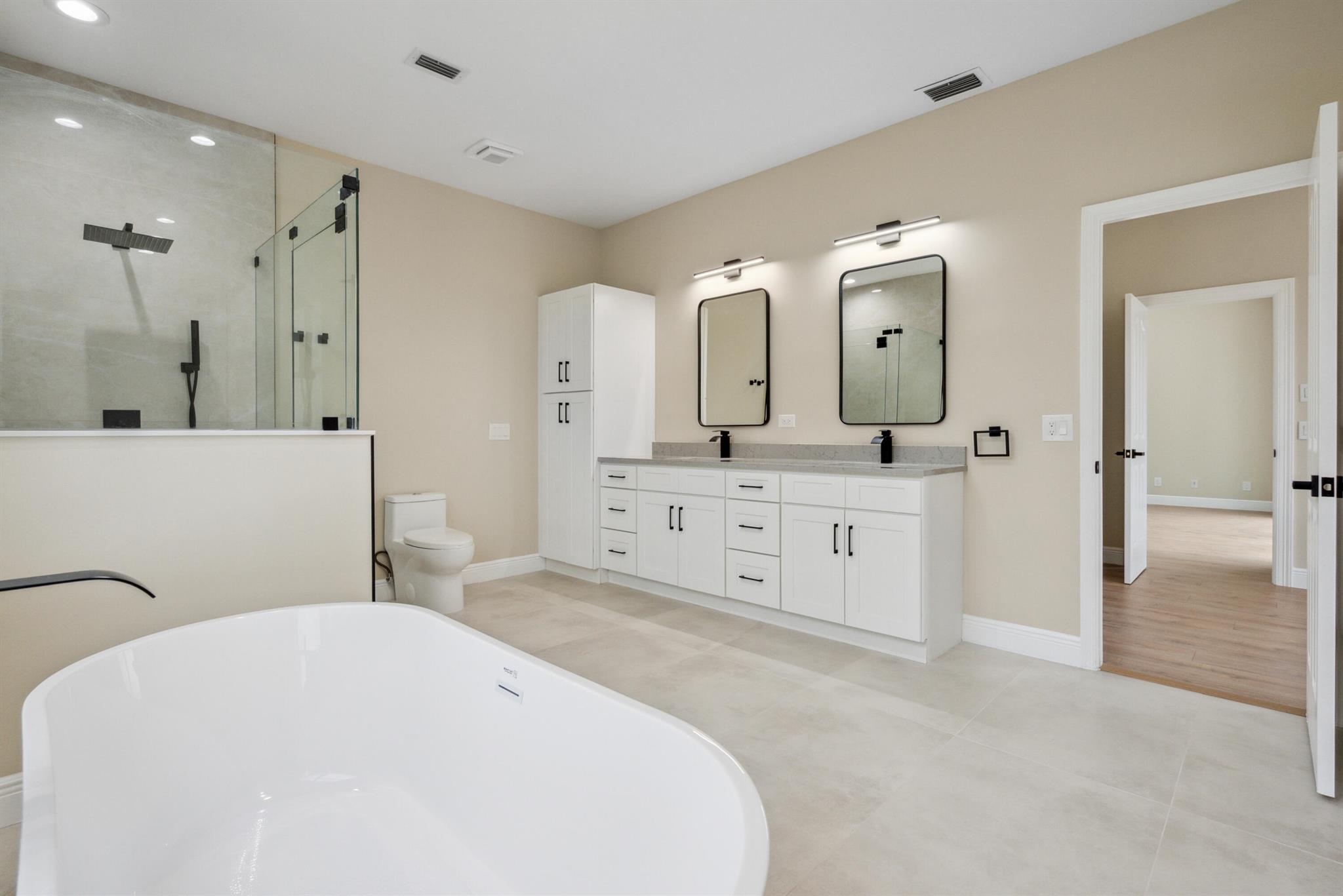Step into the South Florida sunshine with the best deal in PGA Village! Enjoy this BRAND NEW, waterfront, and move in ready 3BR/2.5BA with oversize garage home in the prestigious PGA Village. Every detail has been thoughtfully updated! BRAND NEW ROOF, BRAND NEW IMPACT windows and sliding doors, designer kitchen, custom bathrooms, new flooring, lighting, and premium Samsung appliances! No expense spared and not a single detail overlooked, this home is truly turnkey. Enjoy stunning golf course and lake views from your large master suite, as well as a private backyard spa, and an oversized two car garage with additional parking. This is a rare opportunity in South Florida for luxury living in Port Saint Lucie's most desirable neighborhood!