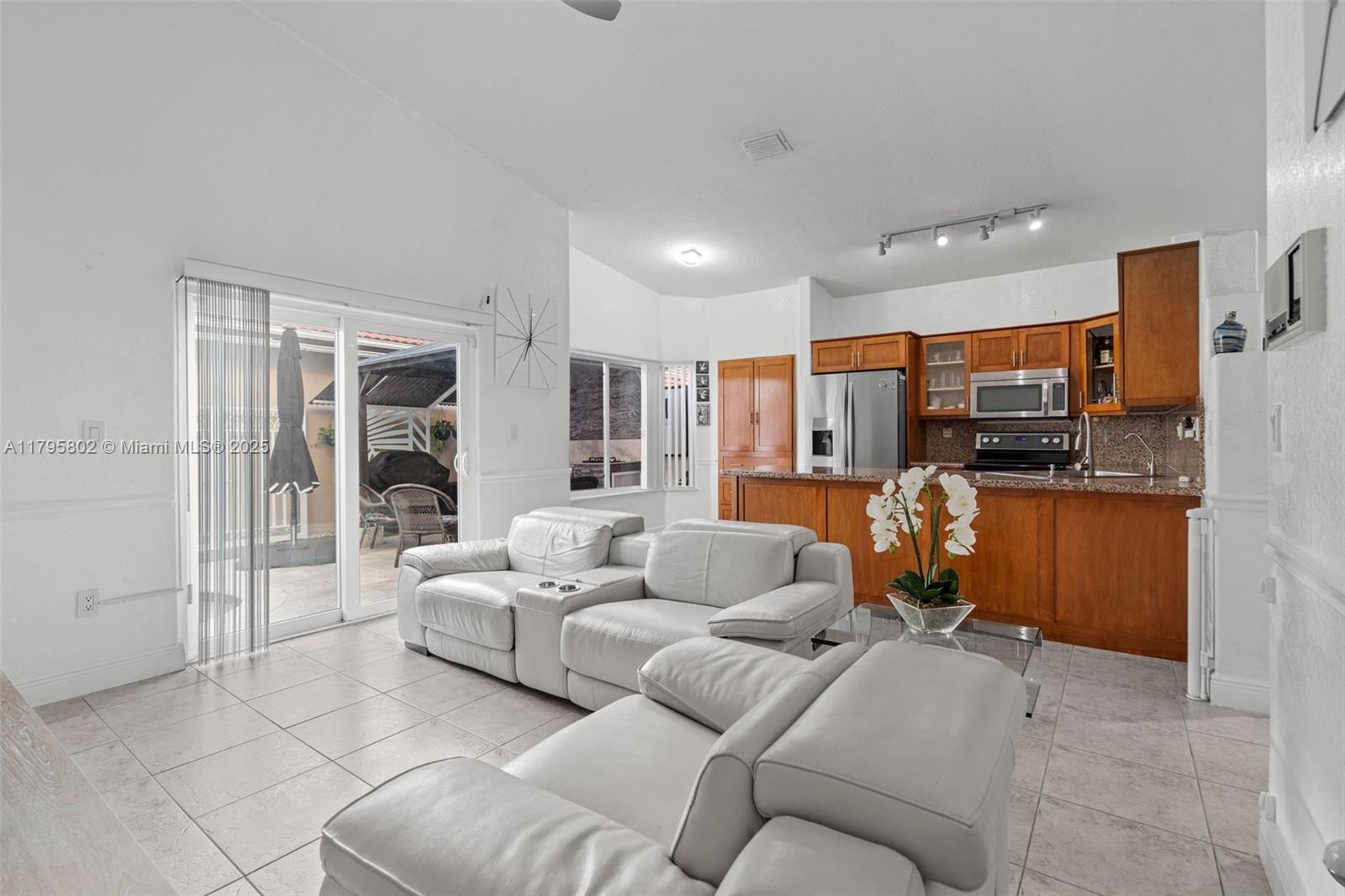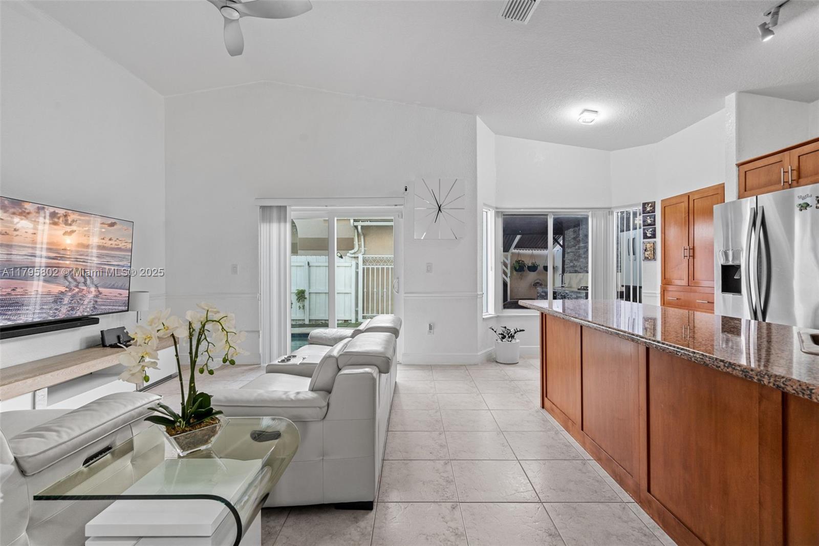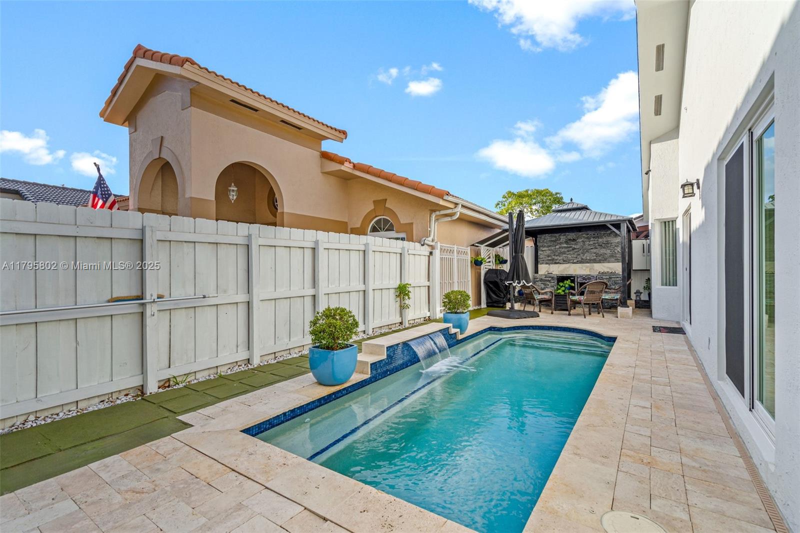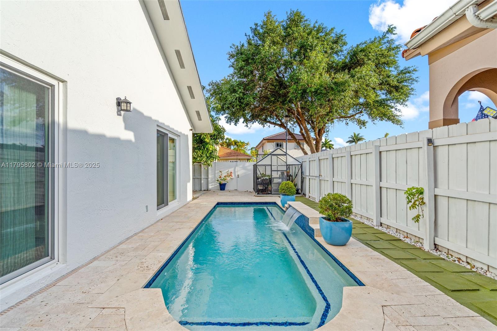 This fantastic 3-bedroom, 2-bath single-family home is located in the highly sought-after Miami Lakes neighborhood, offering a spacious layout with a living room, family room, dining room, office, laundry room, and kitchen with wood cabinets and granite counters. Extensively updated with a new roof, new AC, new water heater, all in 2024, fresh interior and exterior paint (2024), and new washer and dryer (2024). The master bathroom was remodeled in 2022, and doors and windows were replaced in 2022 with a lifetime warranty. A full-house water treatment system was installed in 2021. Enjoy outdoor living with a private heated pool and porch. A private well feeds the irrigation system and features mature fruit trees.