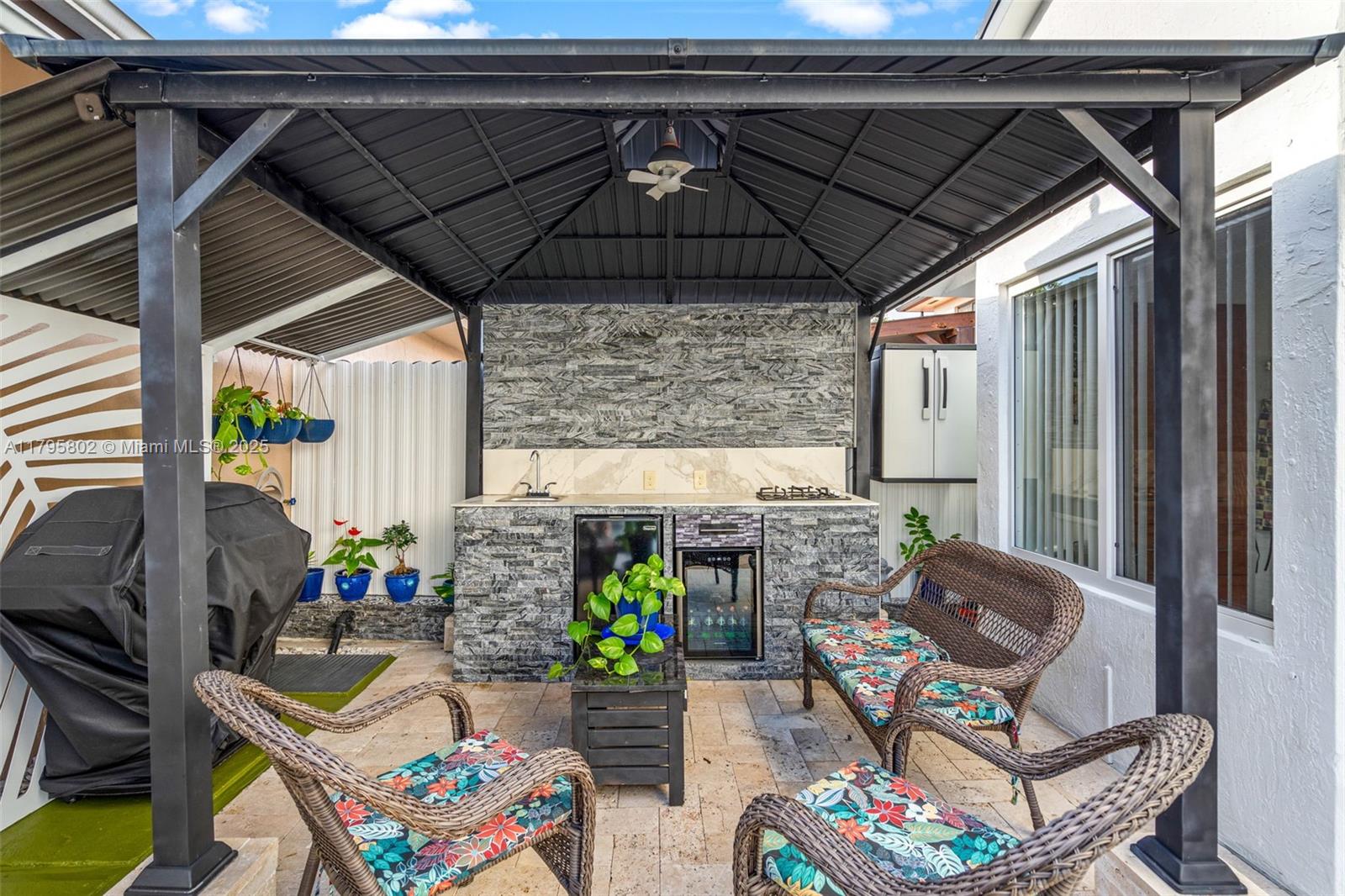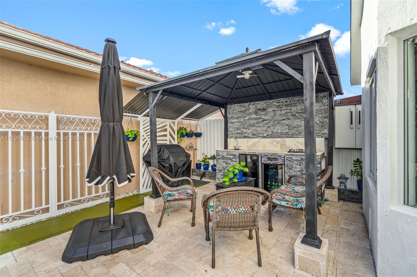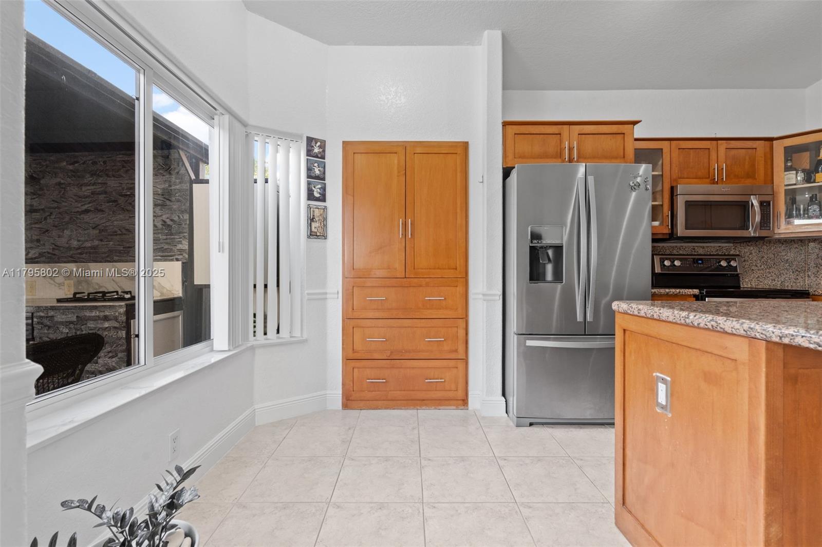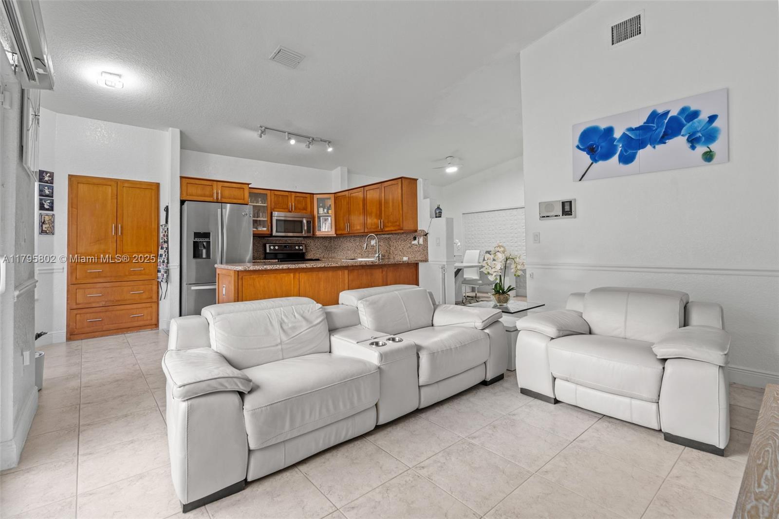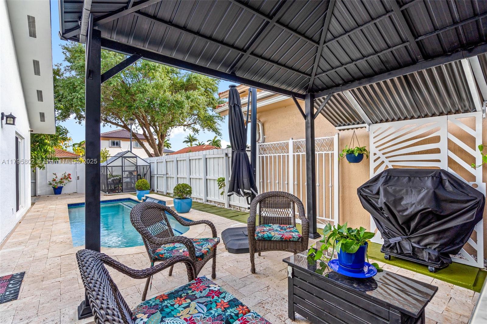 This fantastic 3-bedroom, 2-bath single-family home is located in the highly sought-after Miami Lakes neighborhood, offering a spacious layout with a living room, family room, dining room, office, laundry room, and kitchen with wood cabinets and granite counters. Extensively updated with a new roof, new AC, new water heater, all in 2024, fresh interior and exterior paint (2024), and new washer and dryer (2024). The master bathroom was remodeled in 2022, and doors and windows were replaced in 2022 with a lifetime warranty. A full-house water treatment system was installed in 2021. Enjoy outdoor living with a private heated pool and porch. A private well feeds the irrigation system and features mature fruit trees.