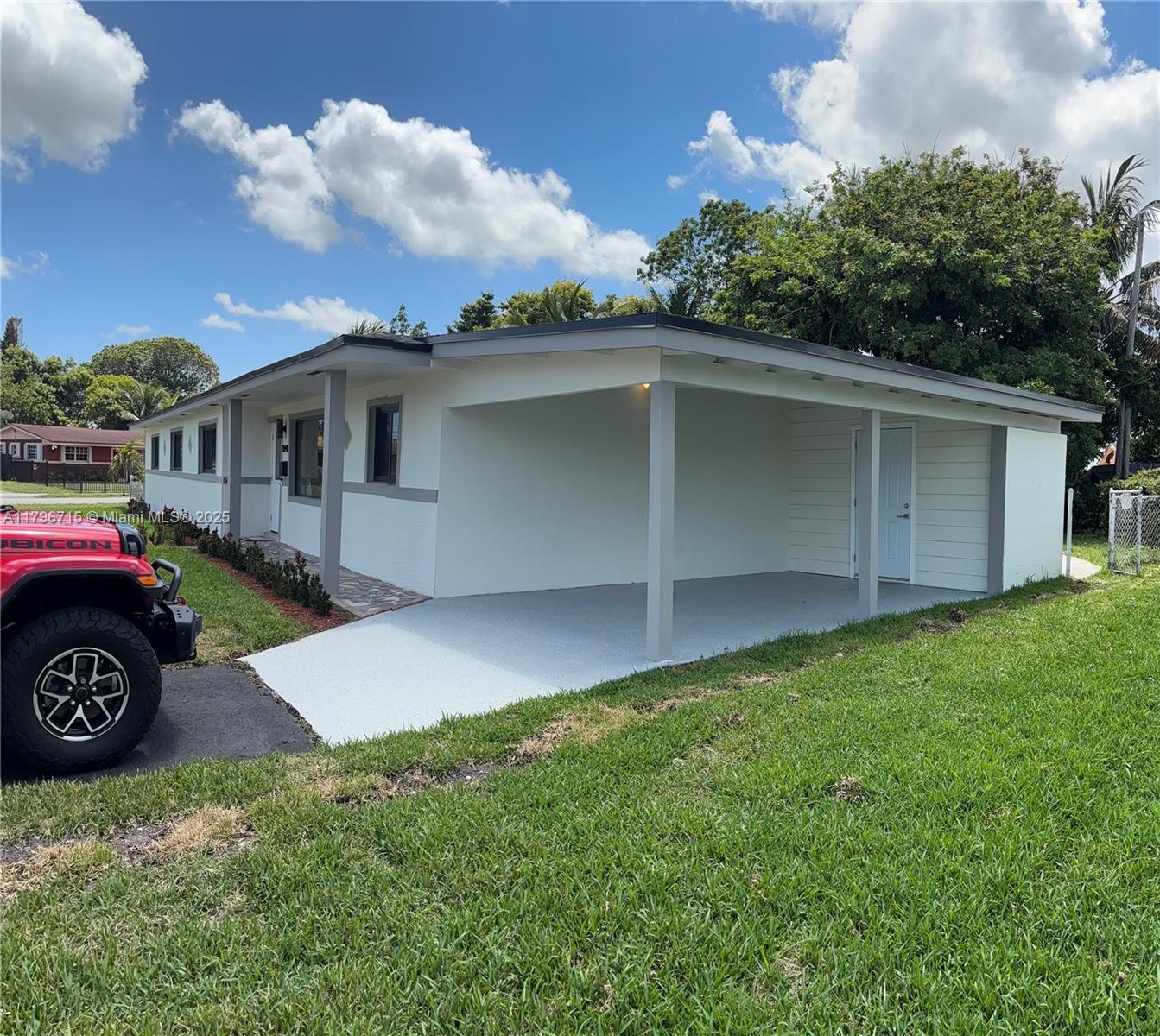 CORNER LOT HOUSE! This 4-bedrooms, 2-baths features a NEW Roof & AC, NEW Kitchen and Laundry Room, NEW bathrooms, NEW impact windows, designer wall accents, NEW Floors, and sleek finishes throughout. Step outside to your fenced yard with plenty of Outdoor Storage, Full Landscaping and COVERED CARPORT & DRIVEWAY!