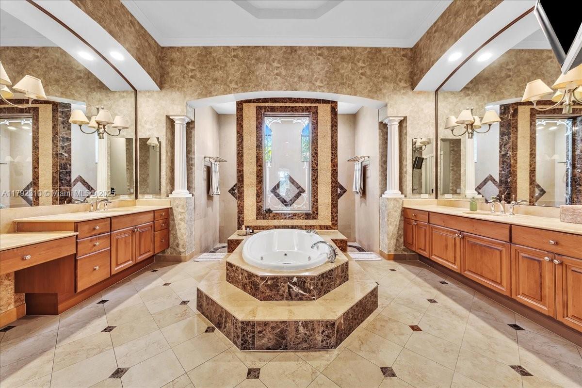 Welcome to an exclusive home in Sanctuary at Pembroke Falls on a rare and private 1/2 an acre lot crafted for luxury and comfort. This 4-bedroom + office, 3.5 bath home & 3 car garage features high volume ceilings and a seamless open layout ideal for entertaining and daily living. Lots of natural lighting which brings up the quality of an amazing updated modern kitchen, a chef’s dream with a 48" gas range, 6 burners, double ovens, built-in refrigerator, wine cooler, large island, drawer microwave, and custom cabinets. The spacious primary suite includes a sitting area, dual vanities, Jacuzzi tub, and double shower. Enjoy a private and one of the biggest back yard for community with a saltwater pool, a spa, natural gas grill ready, and fully fenced yard, accordion shutters and so much more.