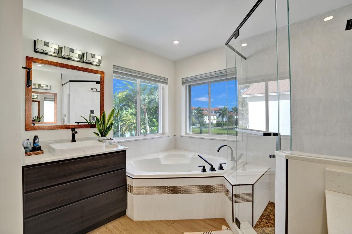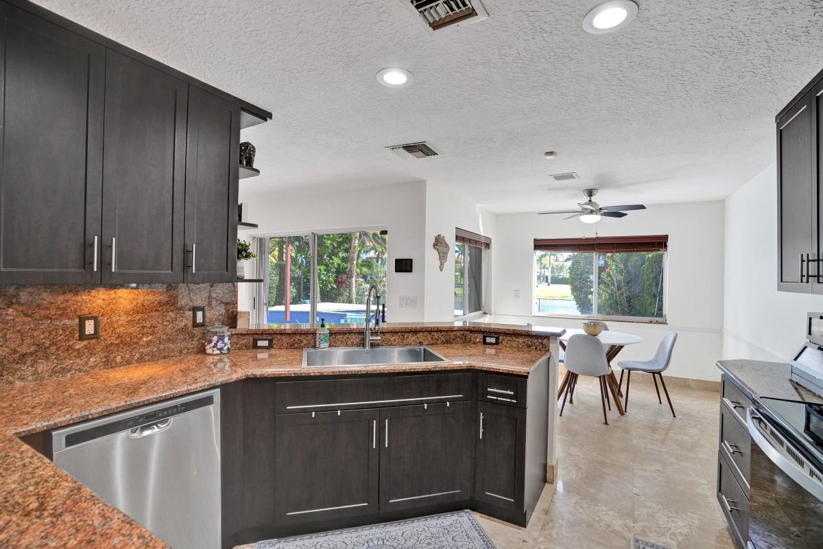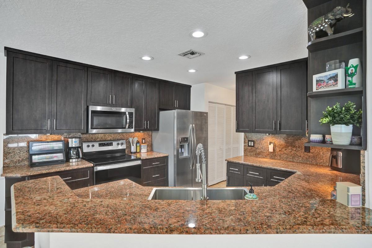 Lakefront retreat with stunning views! This 4-bed, 2.5-bath pool home features remodeled kitchen and baths, marble floors, new roof (2020), A/C (2020), water heater (2025), washer (2024), EV charger, and Vivint smart security. Enjoy hurricane shutters, fenced yard, pool safety fence, and covered patio. Relax or entertain in style. Low HOA. Minutes to beaches, shopping, dining, hospitals, and highways. Move-in ready, stylish, and perfectly located!