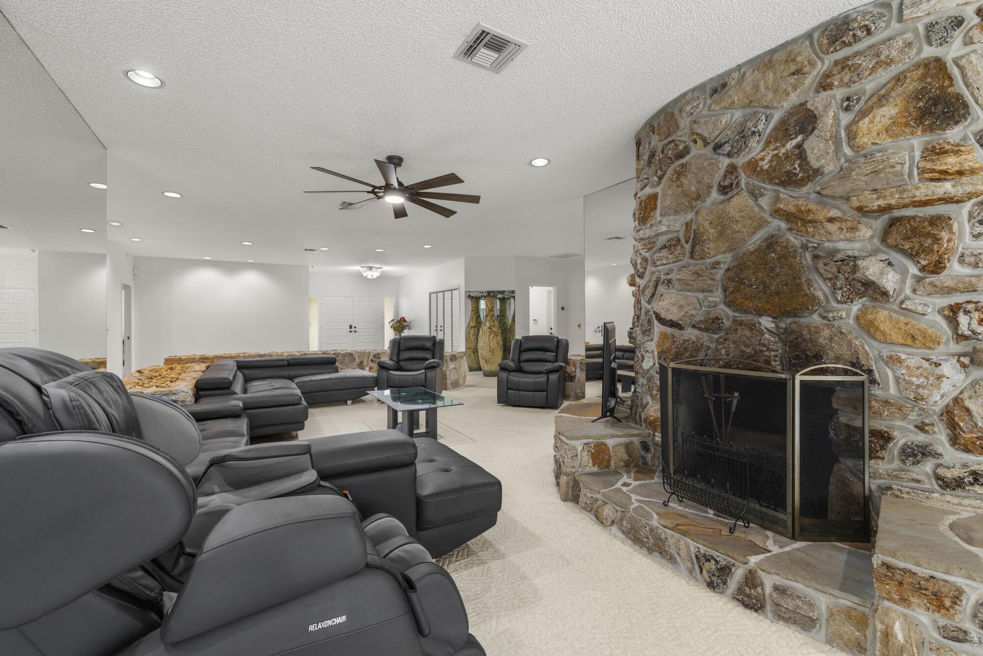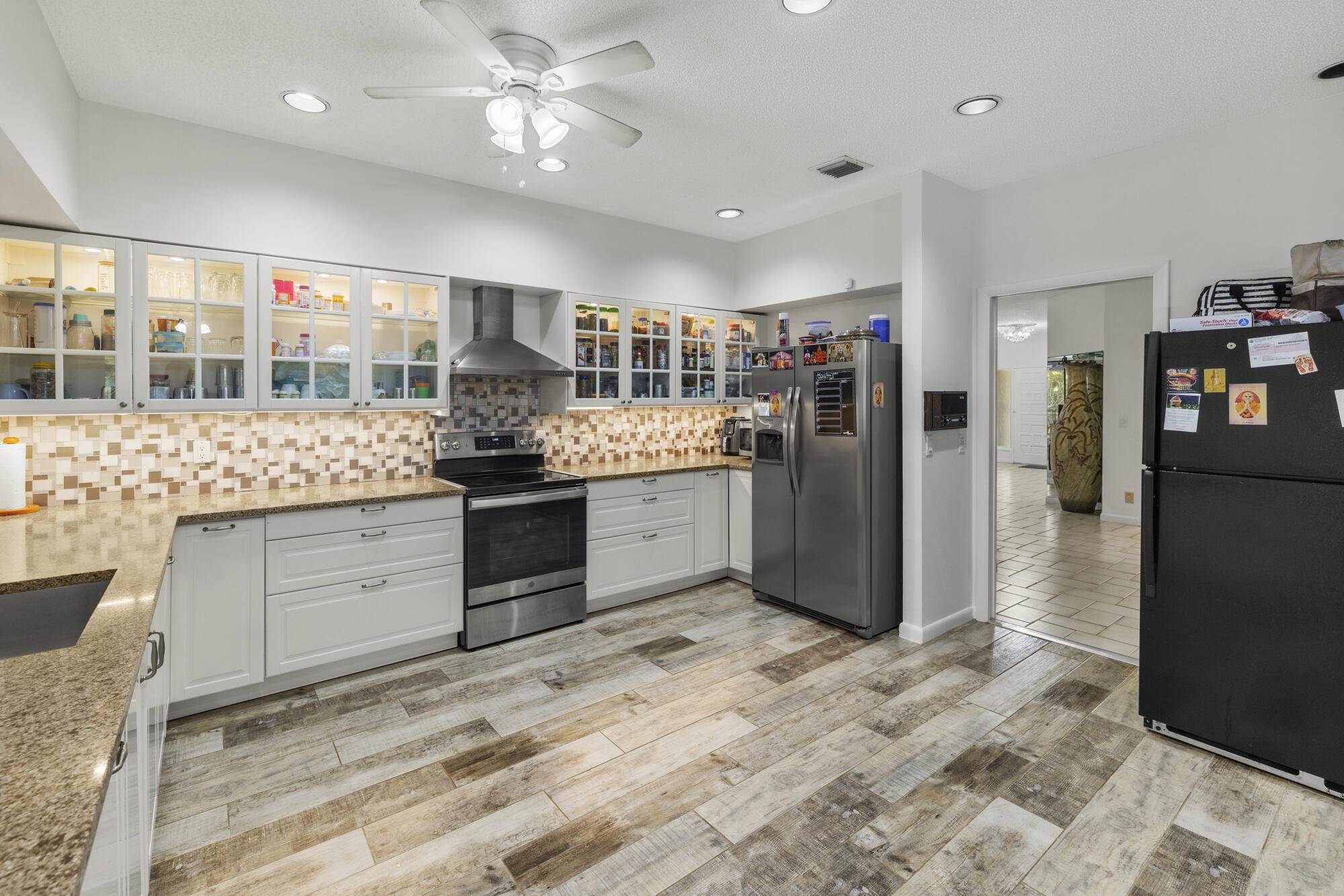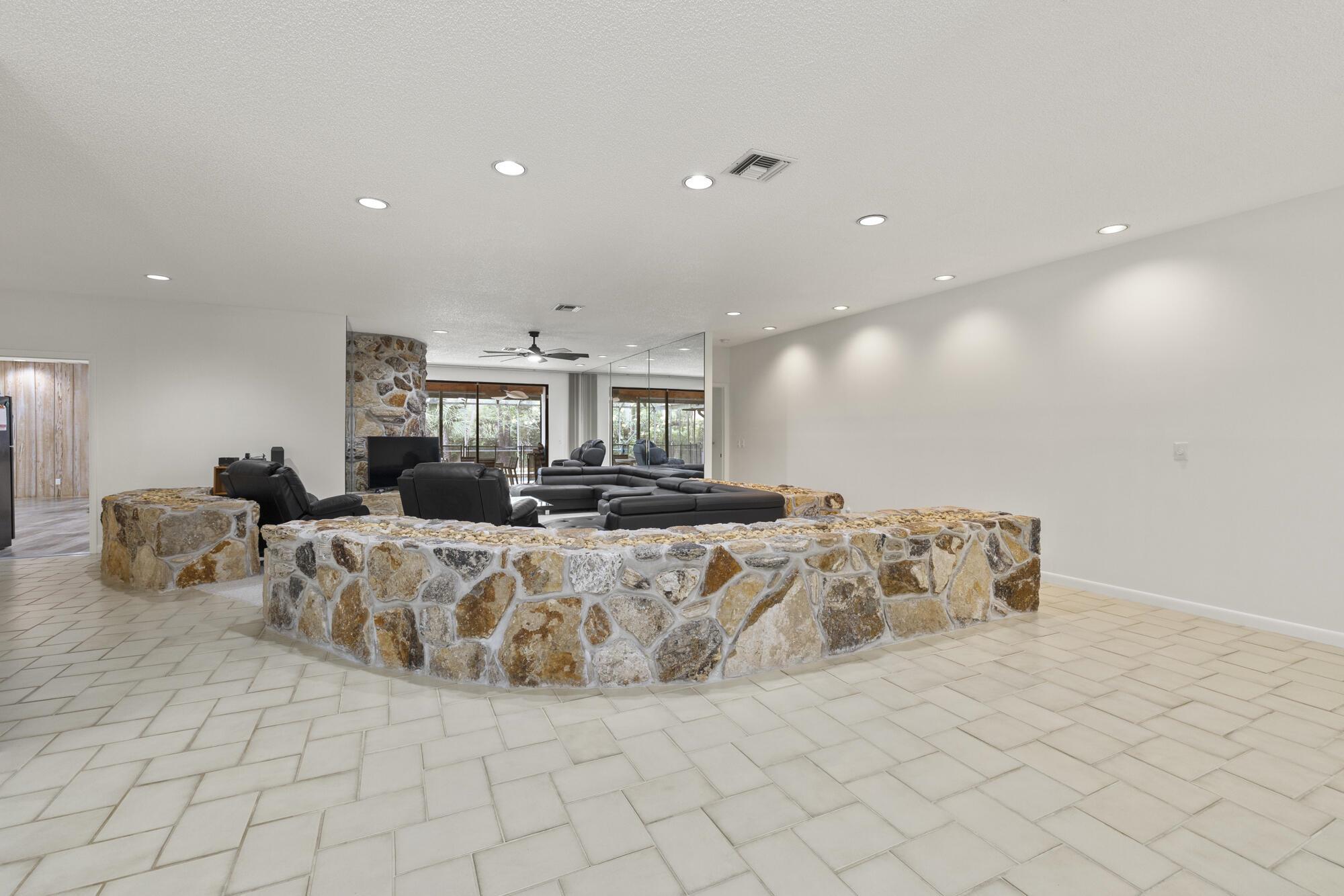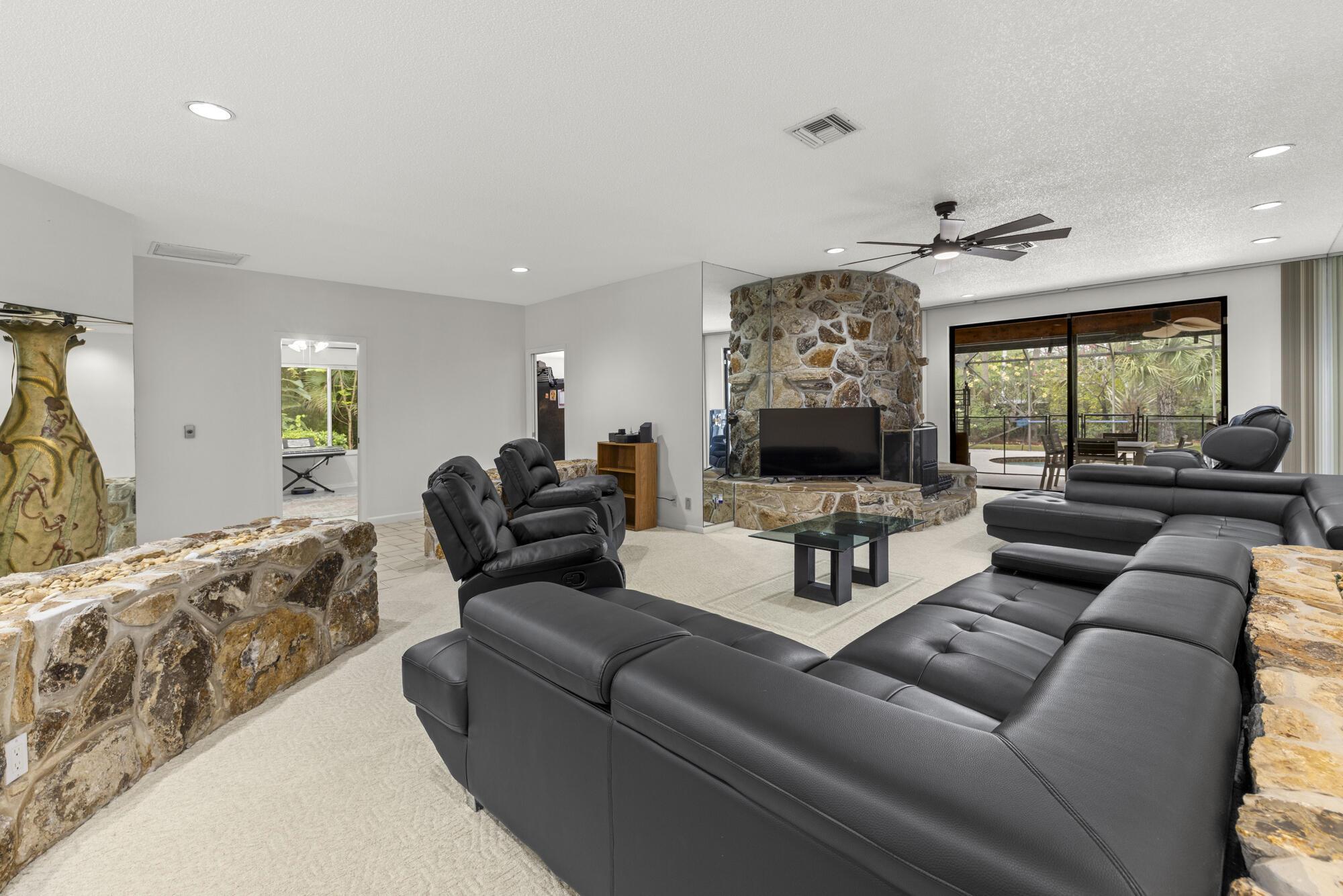 This stunning estate offers 5 oversized bedrooms, a flex room that can be converted into your sixth bedroom, 2 living rooms, renovated kitchen, fireplace, formal dining room, cabana bath, and separate laundry room--all across 4,100+ sq ft of living space. Oversized primary bedroom and bathroom with dual sinks and soaking tub. Situated on a 1.1-acre lot, the home features a screened, heated pool and a huge backyard ideal for birthdays, and entertaining. The home also includes impact windows, a new roof (2022), (2019) A/C, and a generator hook up. Enjoy a dramatic extended driveway with ample parking for guests, plus a 2-car garage. Surrounded by rare flowering plants and mature fruit trees including mango, avocado, papaya, lychee, sugar apple, and coconut, plus a vegetable garden.