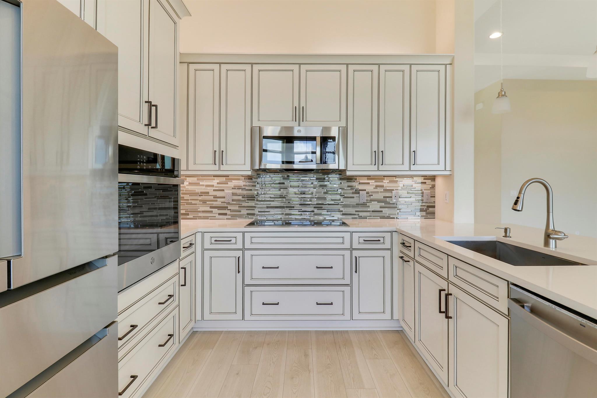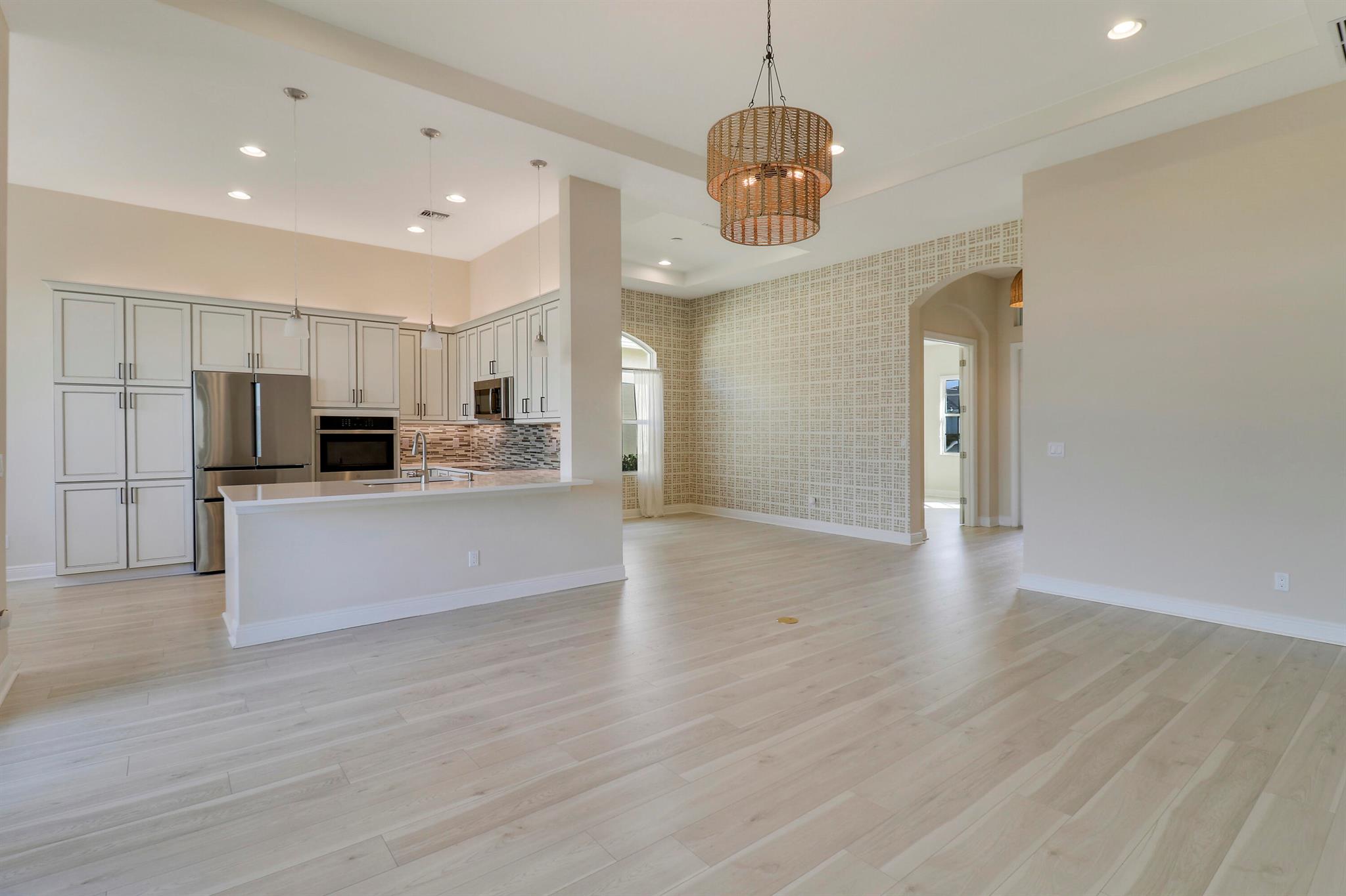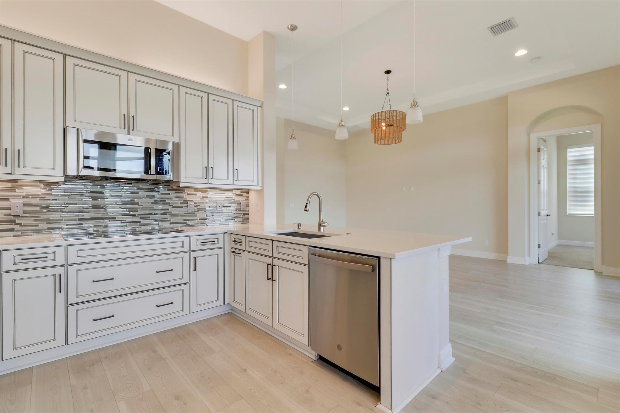 DEEP LAKE FRONT LOT ON A CUL-DE-SAC WITH A SPACIOUS, FENCED BACK YARD AND A THREE CAR GARAGE IN THE RESORT STYLE 55+ NEIGHBORHOOD OF CRESSWIND AT VERANO! Don't miss this tastefully upgraded home that is completely move-in ready! This 2BR+Den/2BA/3CG 'Isabella' floor plan was built in 2022 and is brimming with practical and stylish upgrades including decorative stone work on the front exterior, impact glass windows & doors, an oversized fenced yard, extended paver patio, glass entry front door, wallpaper accent wall, upgraded light fixtures t/o, hihat lighting in almost all the rooms, wood-look plank flooring through the main living areas & den, plush carpeting in the bedrooms, upgraded tiled bathrooms and more.