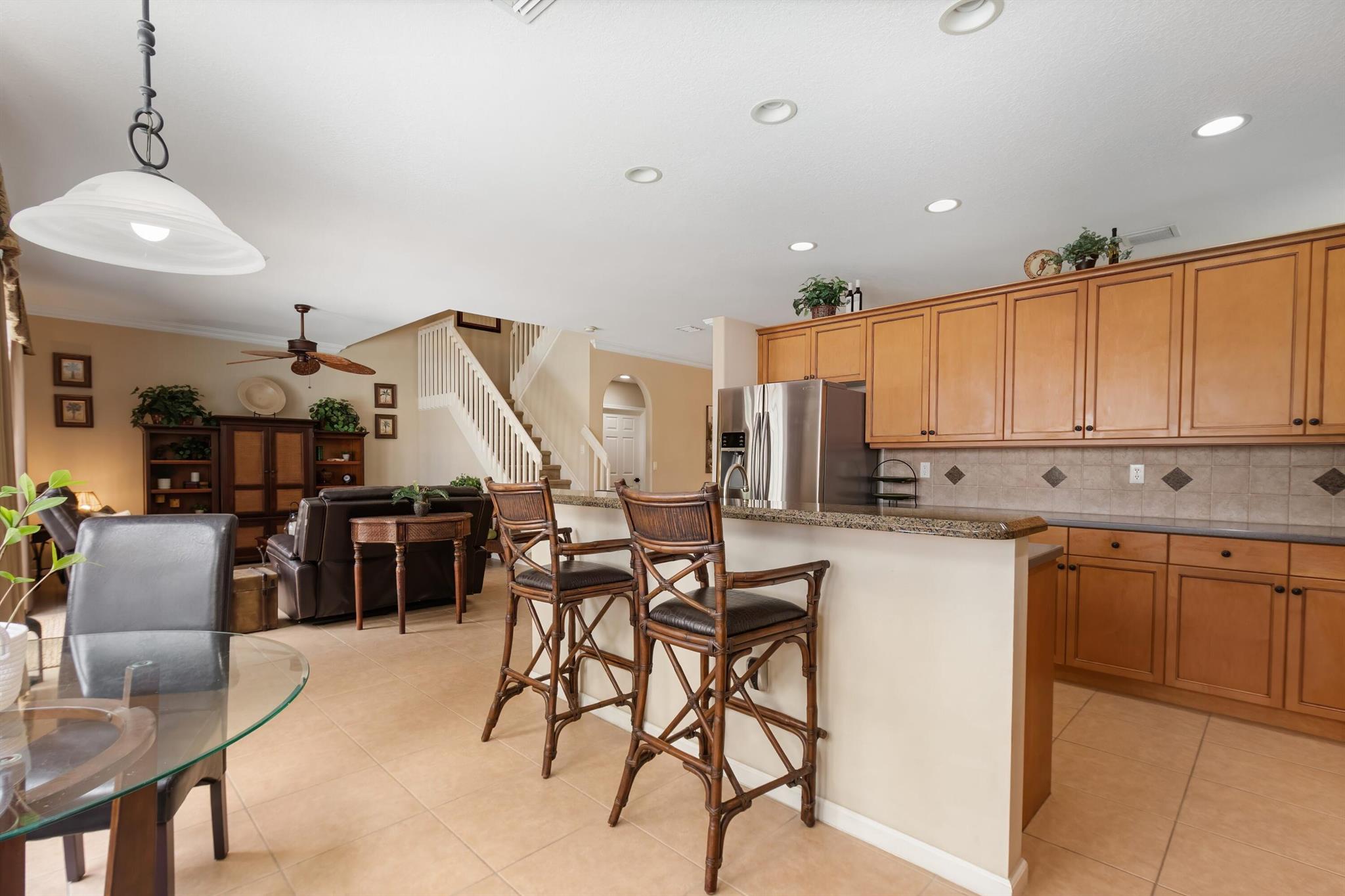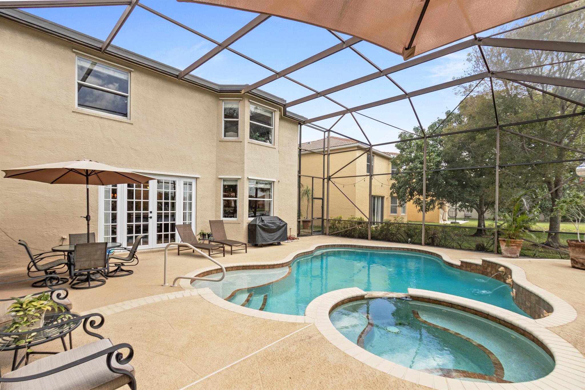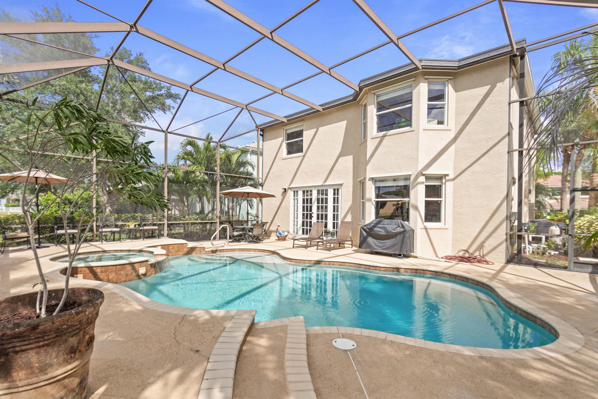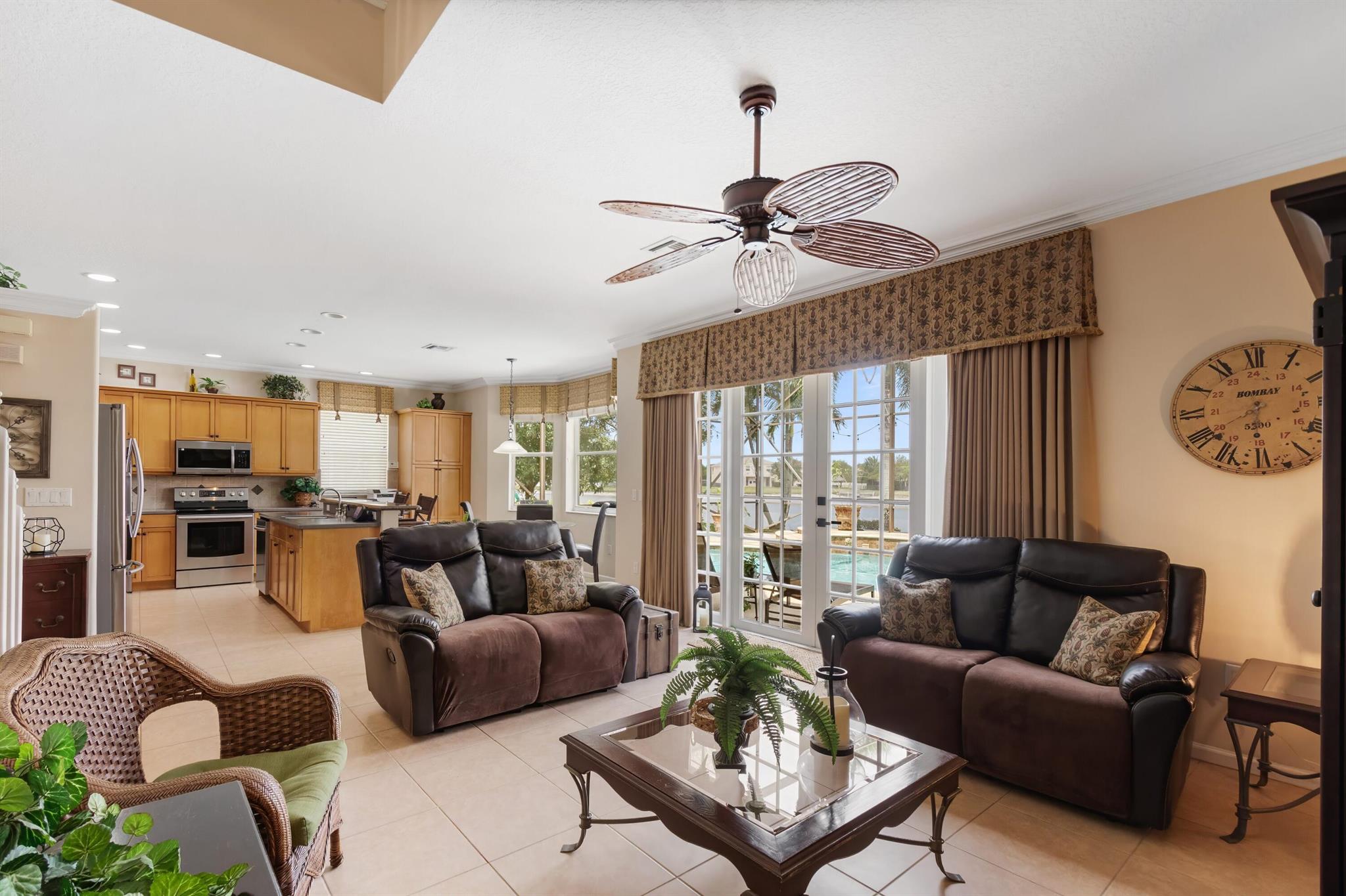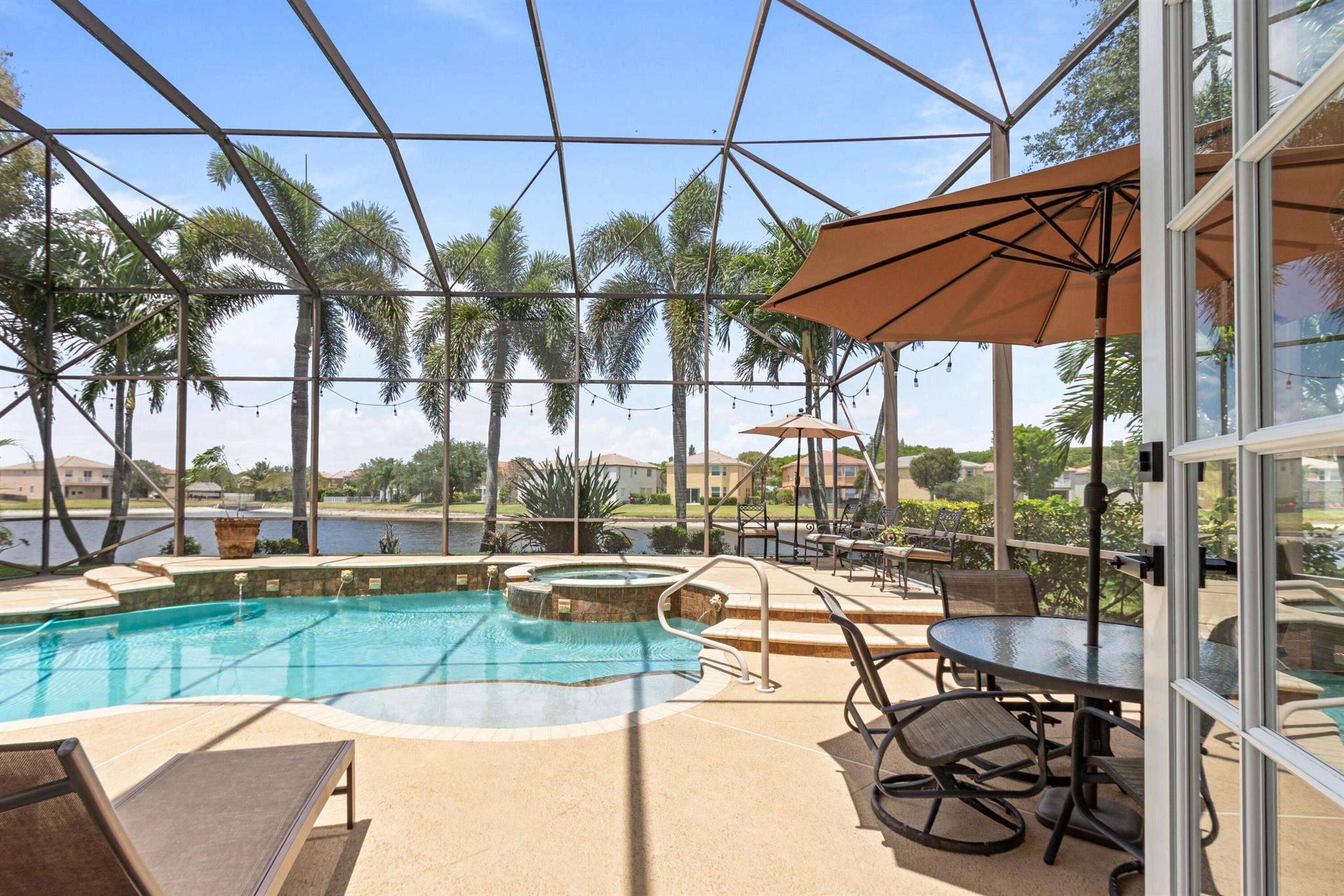 Welcome to Wellington's prestigious and premier resort style community Olympia! You can enjoy paradise living in this over 3300 til sq. ft. Cordova 5 bedroom home with the most gorgeous oversized pool, spa, and water feature on the lake situated for the most stunning sunsets! The yard is truly a vacation from reality and the reason we live in Florida, enjoy your private tropical landscaped oasis, you deserve it! One of my favorite features if the huge screen enclosure making your outdoor living enjoyable and bug free. This home is designed for entertaining with indoor and outdoor space becoming one. Main floor includes formal dining, living, family, and eat in kitchen as well as a huge island for gathering friends.