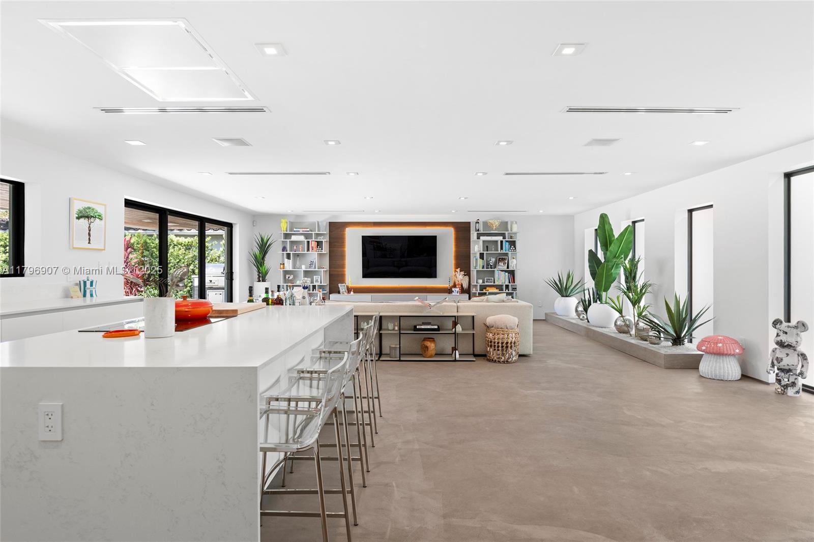Modern waterfront living in the exclusive gated community of San Souci Estates. This fully renovated contemporary home sits on a 9,375 SF lot with 75 feet of deepwater frontage and direct ocean access—ideal for boaters. Offering over 2,700 SF of thoughtfully designed interior space, the home was completely updated with all-new electrical, plumbing, HVAC, and hurricane-rated smart windows and doors. The Italian-designed kitchen by Cesar features premium appliances, complemented by sleek Italian interior doors and cabinetry throughout. The outdoor area is built for entertaining, with a re-roofed Tiki hut, built-in BBQ, and a 15,000 lb boat lift. A rare opportunity to own a turnkey waterfront retreat in one of Miami’s most desirable neighborhoods.