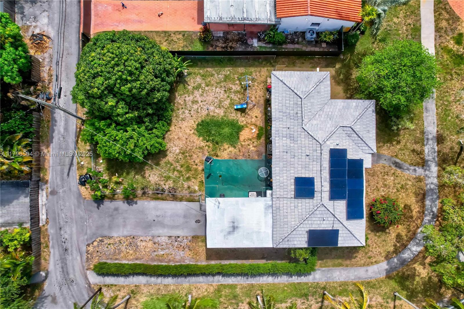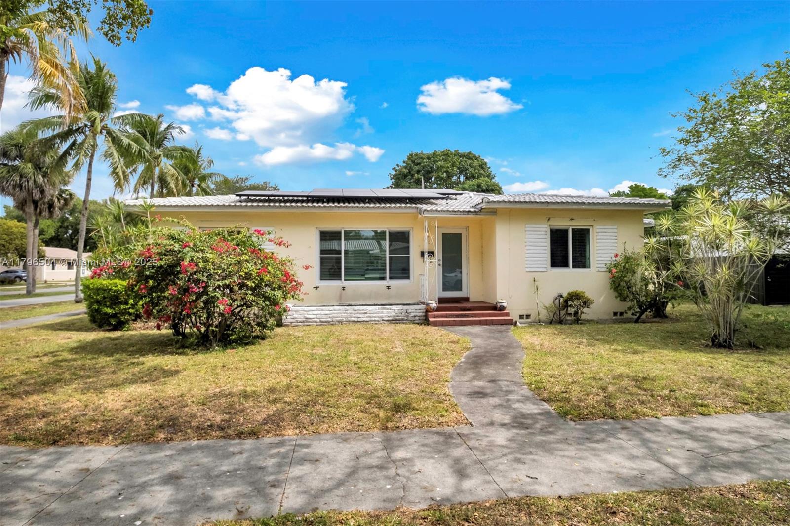 CORNER LOT, NEARLY 10,000 SQ. FT., IN MIAMI SHORES. 2 BEDROOMS AND 2 FULL BATHS. ONE CAR GARAGE, ROOM FOR A POOL, FRUIT TREES. IMPACT WINDOWS, SOLAR PANELS, CENTRAL A/C. THIS HOME CAN BE RENOVATED, ADDED ON TO, OR TORN DOWN, AND YOU CAN BUILD A NEW HOME.