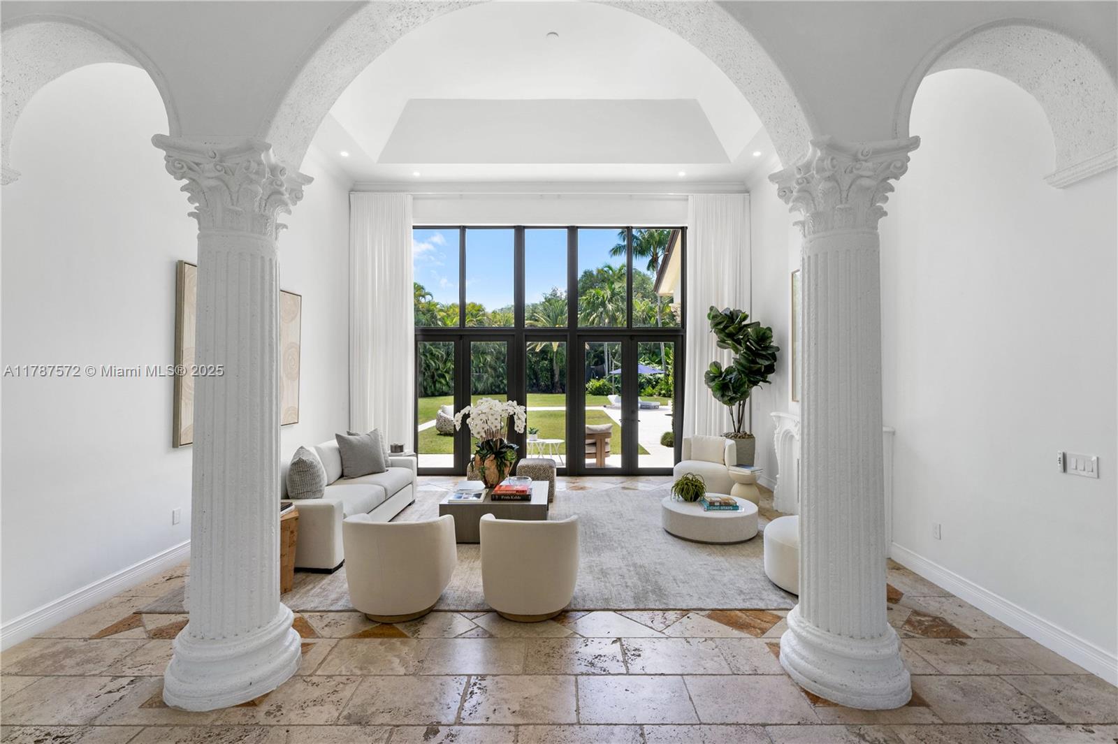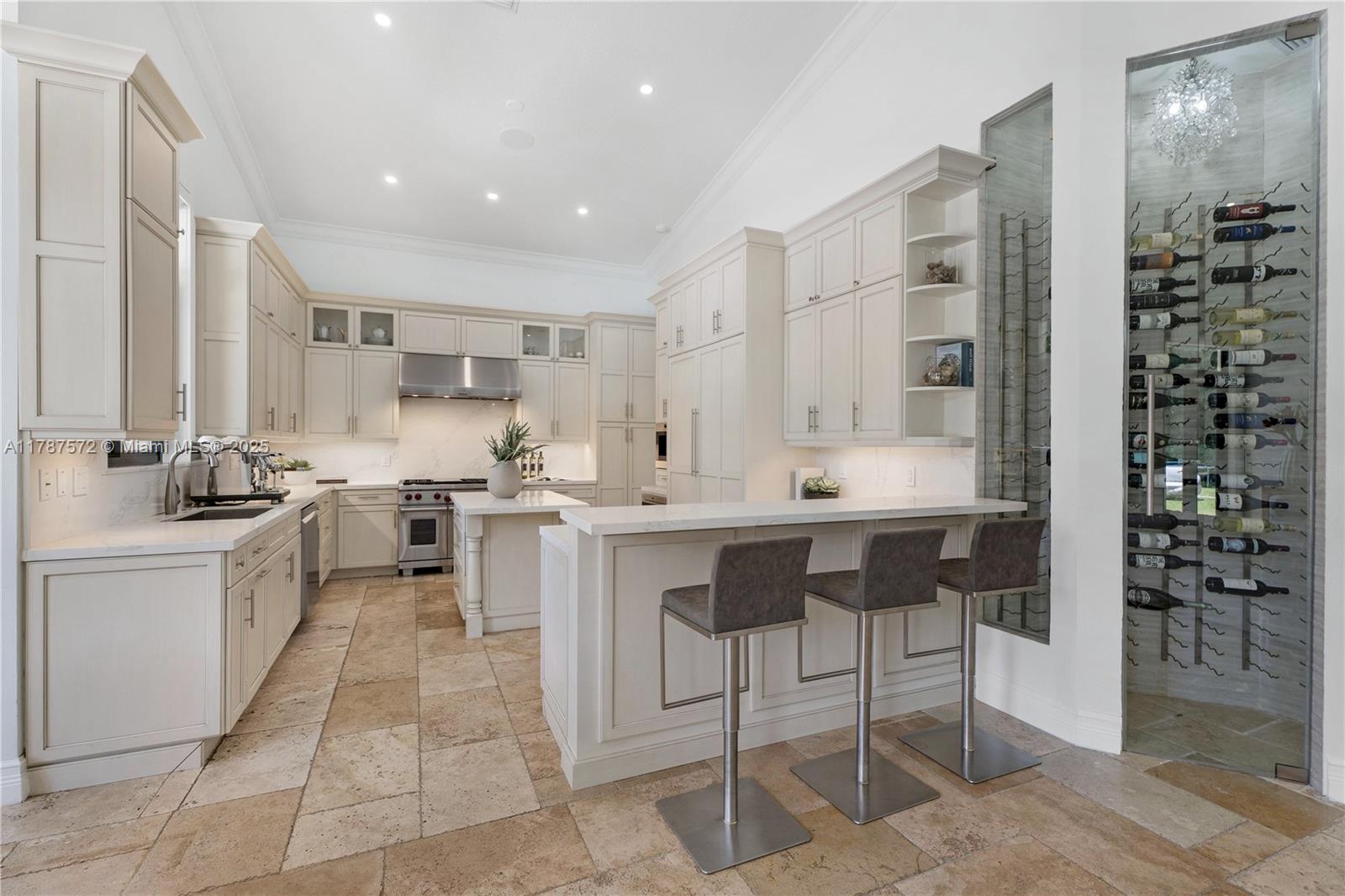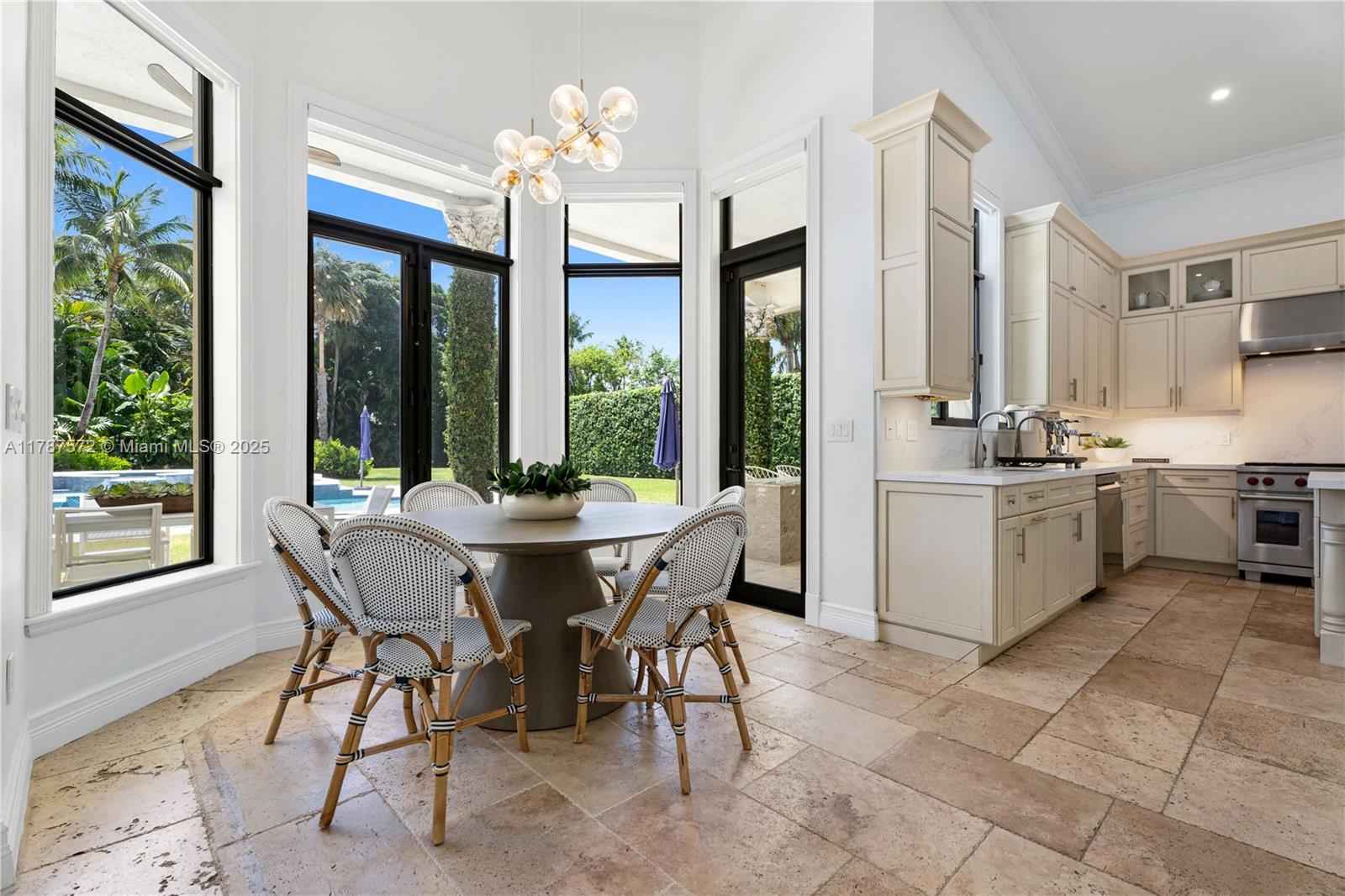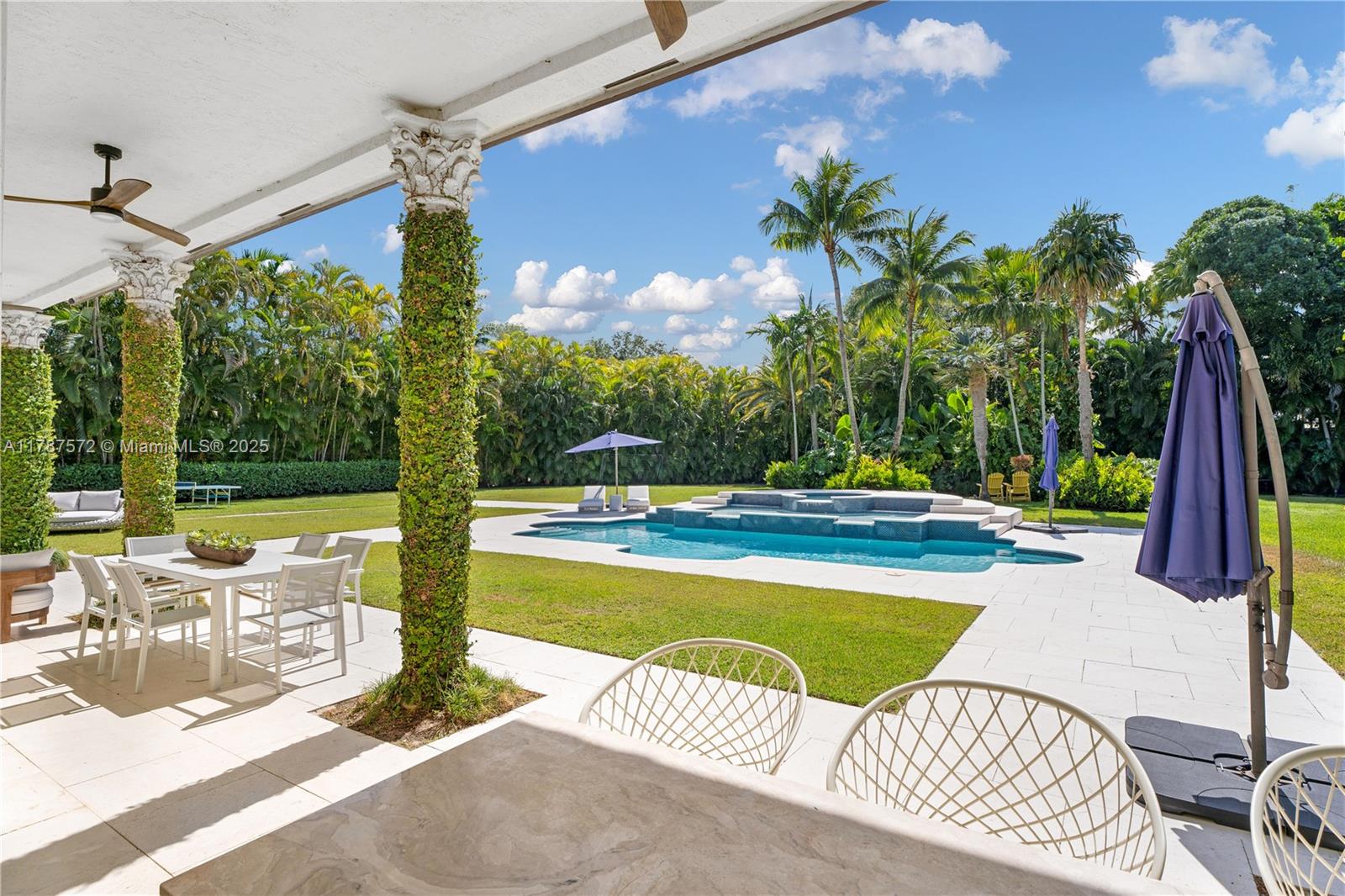 Located on a palm-lined road in sought-after N. Pinecrest, this one-story gated residence offers a designed layout with soaring ceilings & well distributed living spaces. The dine-in chef’s kitchen opens seamlessly to a spacious family room and comes with a glass wine cellar The elegant primary suite includes a large sitting area. Upgrades: impact windows/doors, whole-house generator, New Roof (2023), new garage doors, modern lighting, custom closets, exterior cameras, updated A/Cs, and new appliances. The expansive, landscaped backyard is a true South Florida retreat—featuring a resort-style pool, summer kitchen, koi pond, shaded dining areas, and mature trees for ultimate privacy. Located in the top-rated Pinecrest Elementary School district with quick access to shops, dining, and US-1.