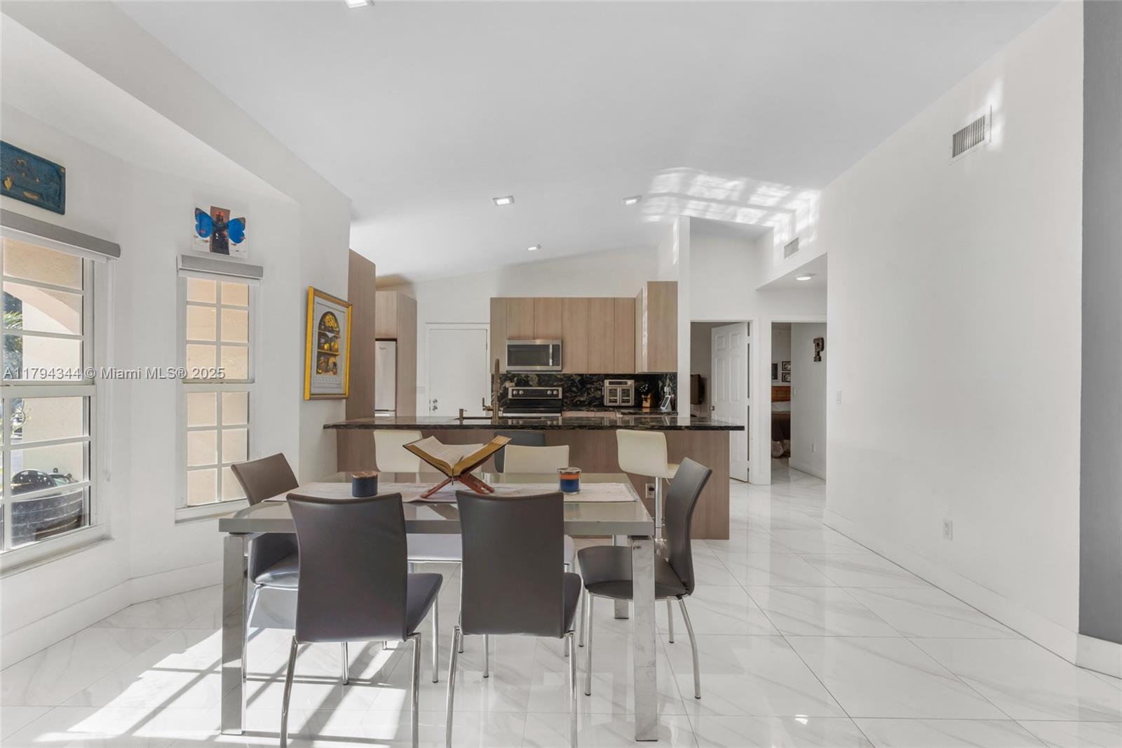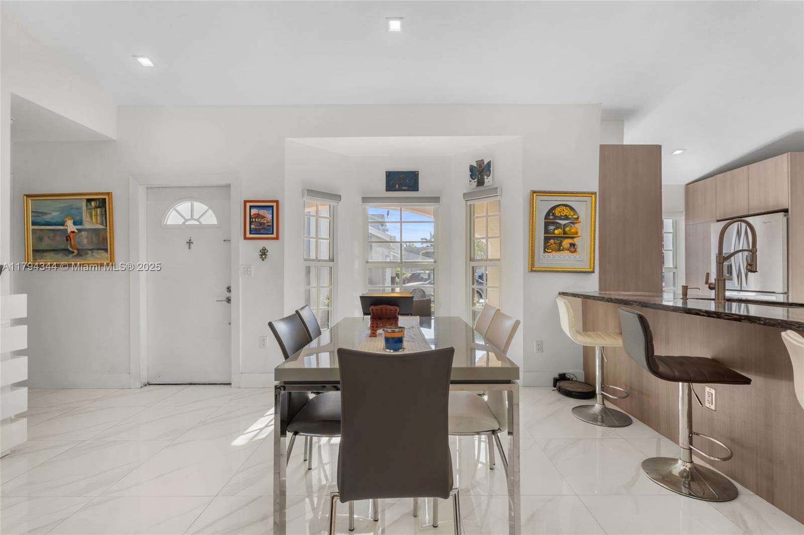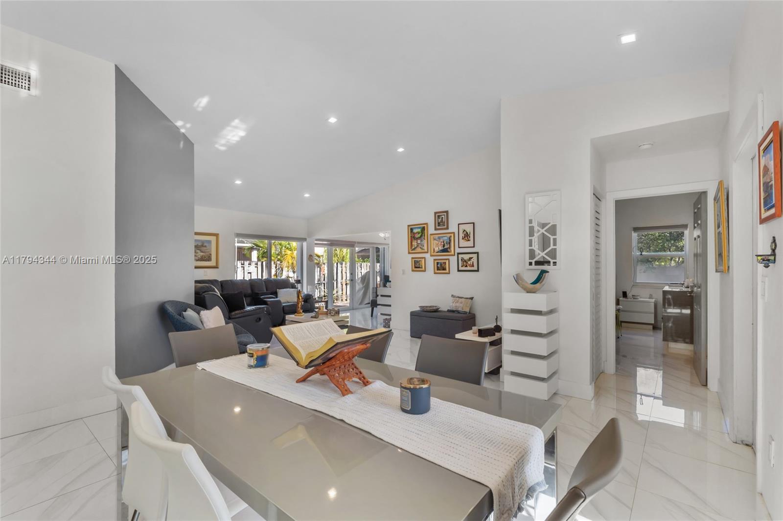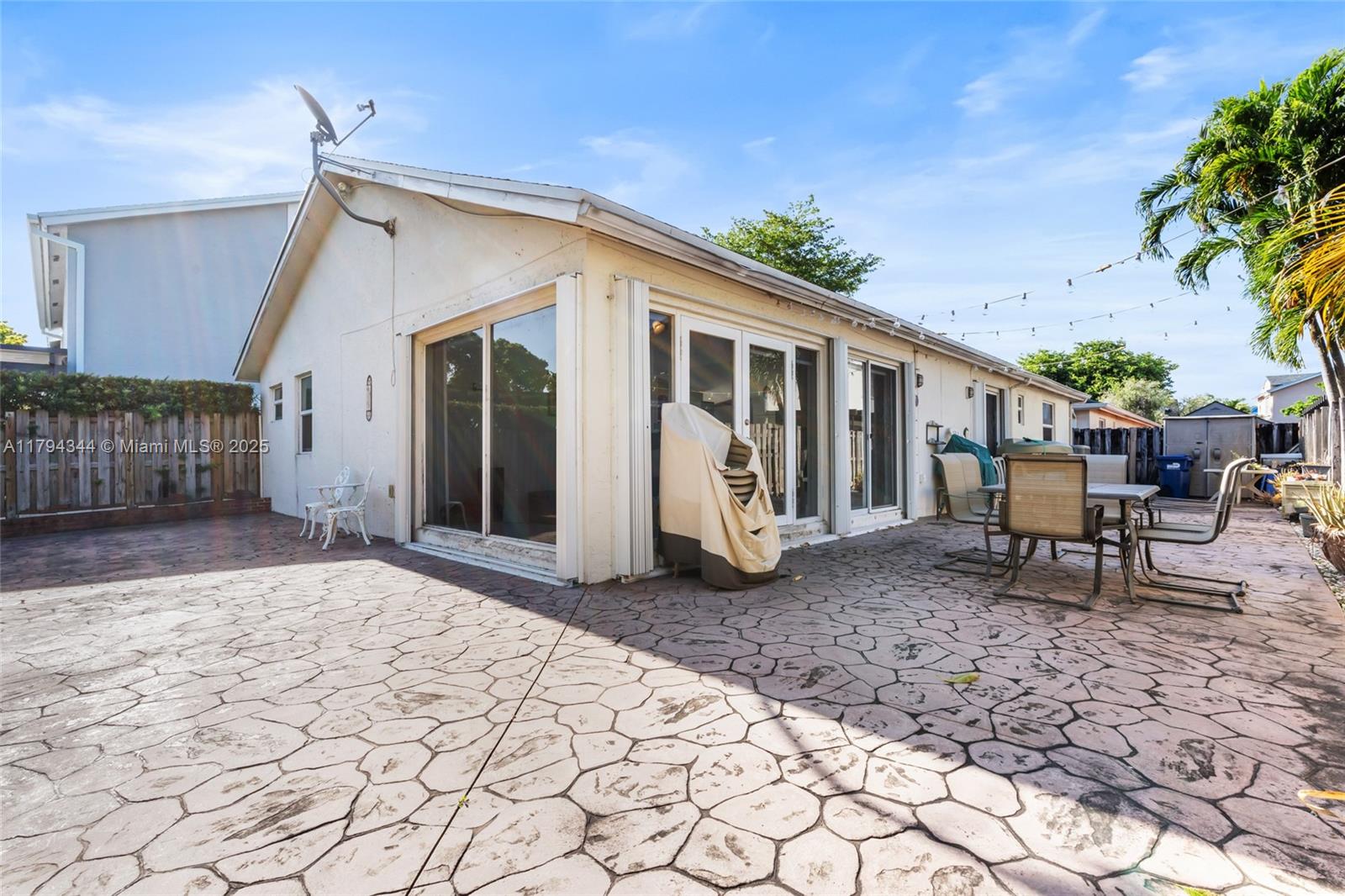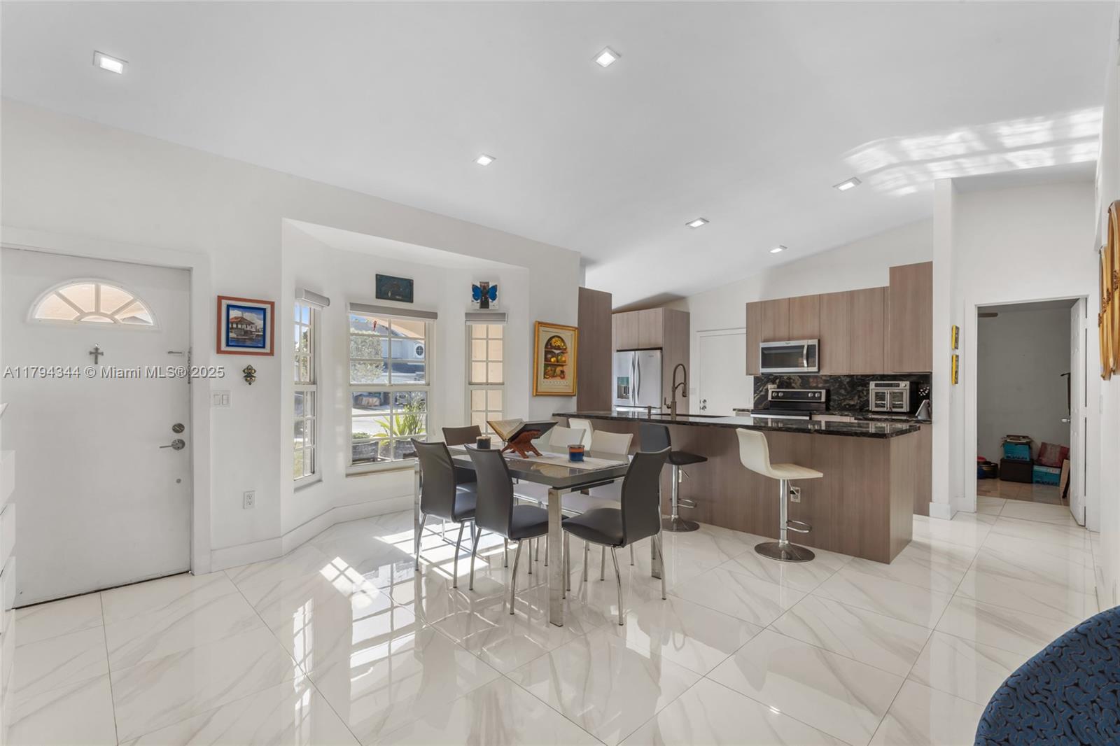 This beautifully remodeled 3-bed, 2-bath residence offers a perfect blend of modern comfort and stylish design. Completely renovated in 2020, the home features a spacious open-floor concept, vaulted ceiling, and a converted garage with an additional bedroom and reach-in closet. The home also features impact windows throughout, a a spacious sunroom, new modern kitchen, new roof and gutters, porcelin tile floors throughout, and a tankless water heater. Step outside to a large backyard perfect for entertaining, complete with an outdoor kitchen for BBQs and gatherings. Located in a gated community with 24-hour security, residents also enjoy fantastic amenities including a pool and kiddie playground. This home combines comfort, security, and outdoor living in a sought-after Doral neighborhood.