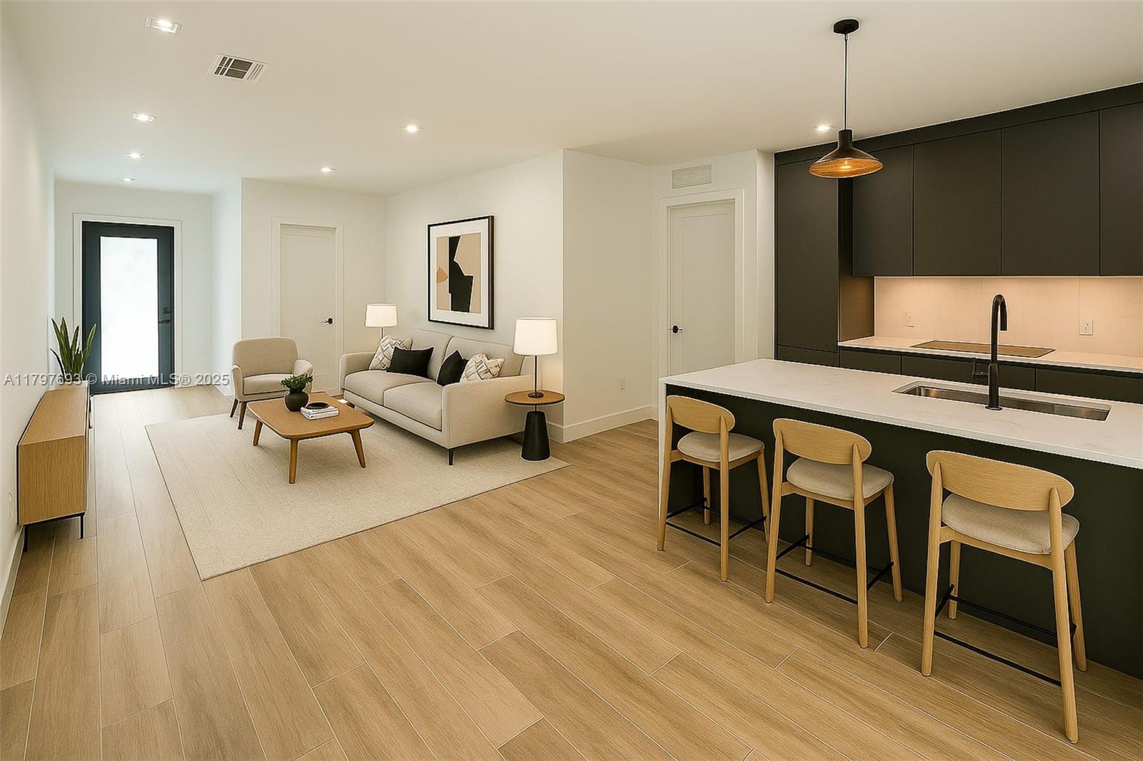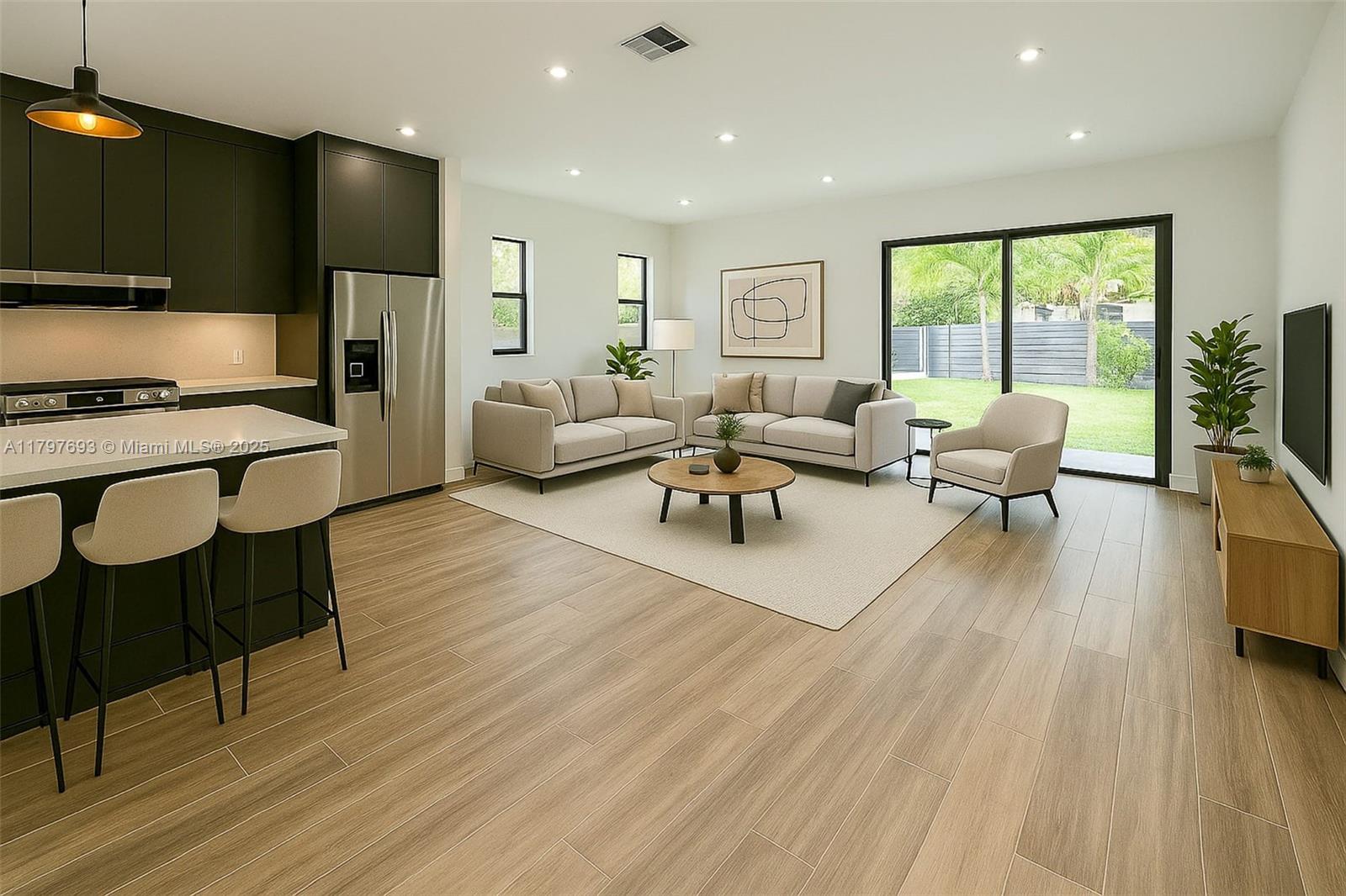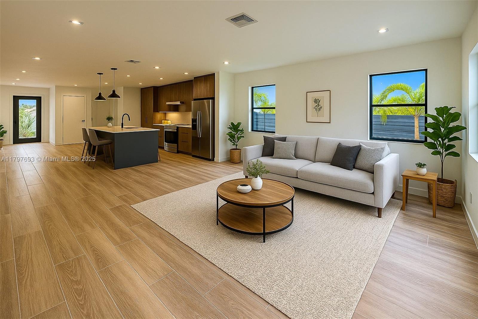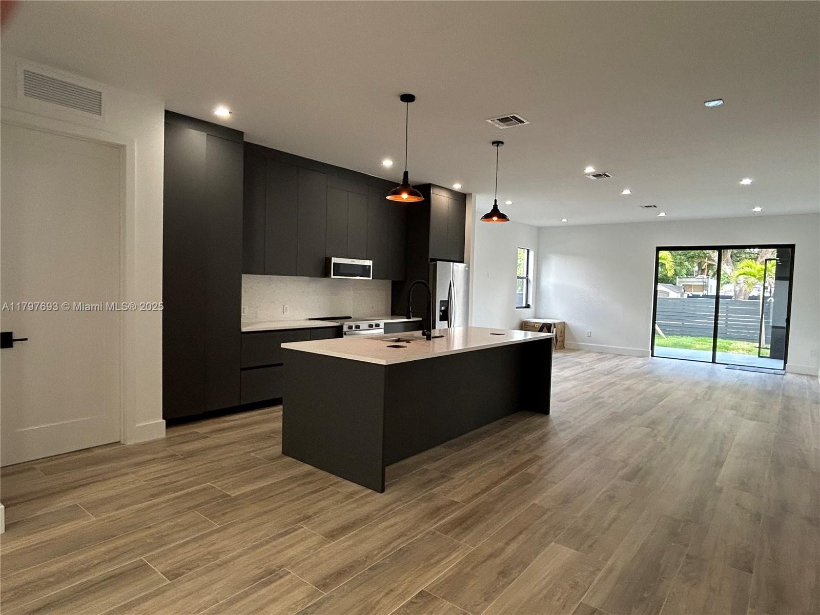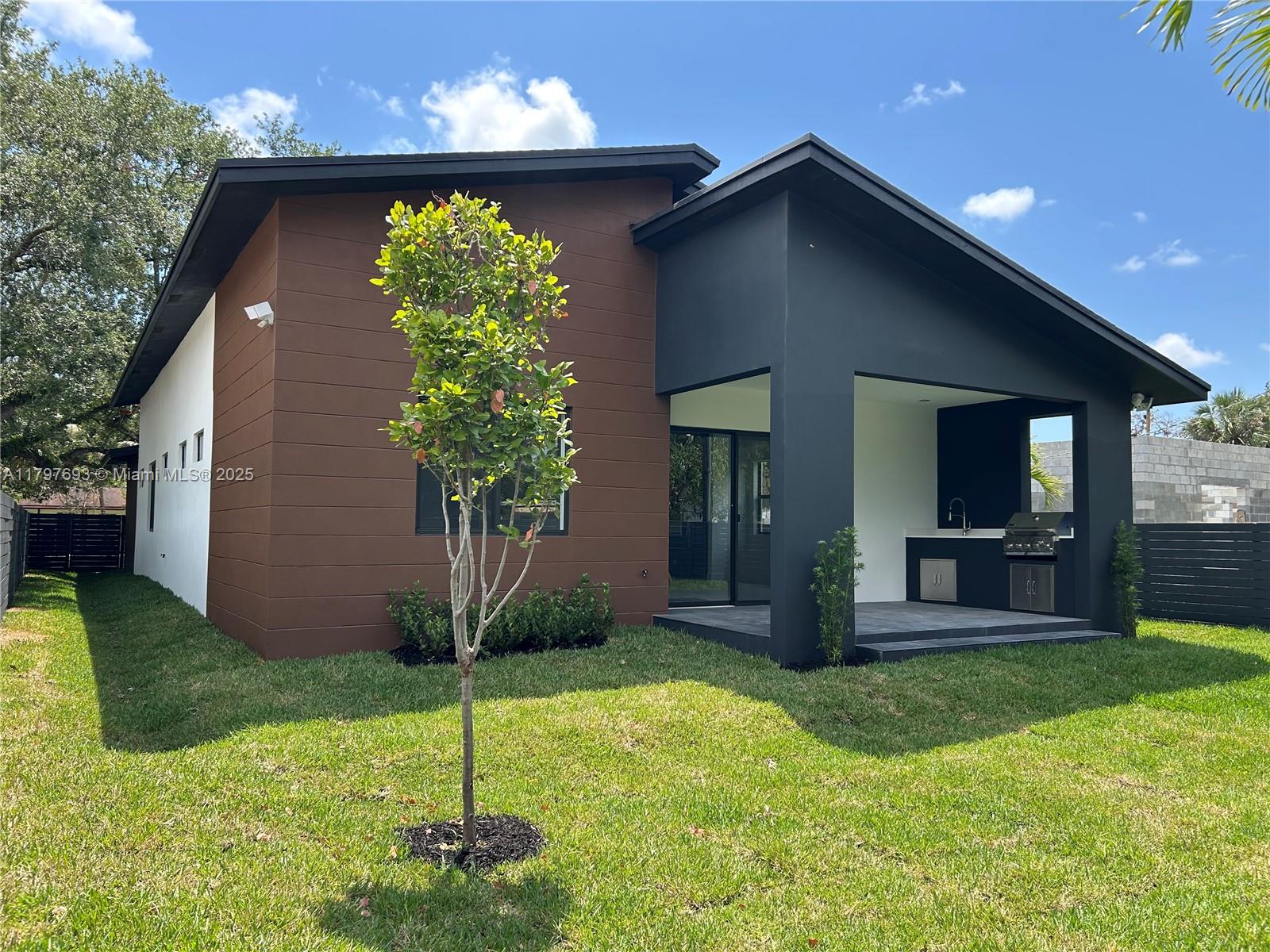 NEW CONSTRUCTION! This spectacular new property is situated on a 7562 SF lot at Chula Vista, Fort Laudedale. This remarkable 2,535 SF masterpiece offers 2,082 SF of A/C one-story floor plan, providing impressive ceiling heights of up to 9’, doors at 8’ and, floor to ceiling glass door that allows for grand views of the expansive landscape-sized yard. The open format kitchen is completely equipped with Whirlpool appliances, room sized pantry, laundry room in AC area, summer kitchen, outdoor terraces among many other features. Make this jewel your future home!