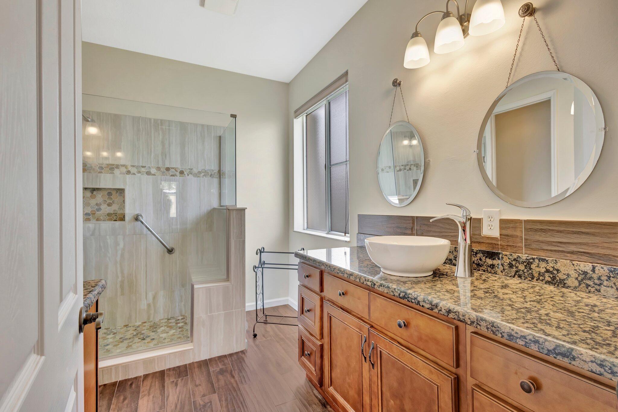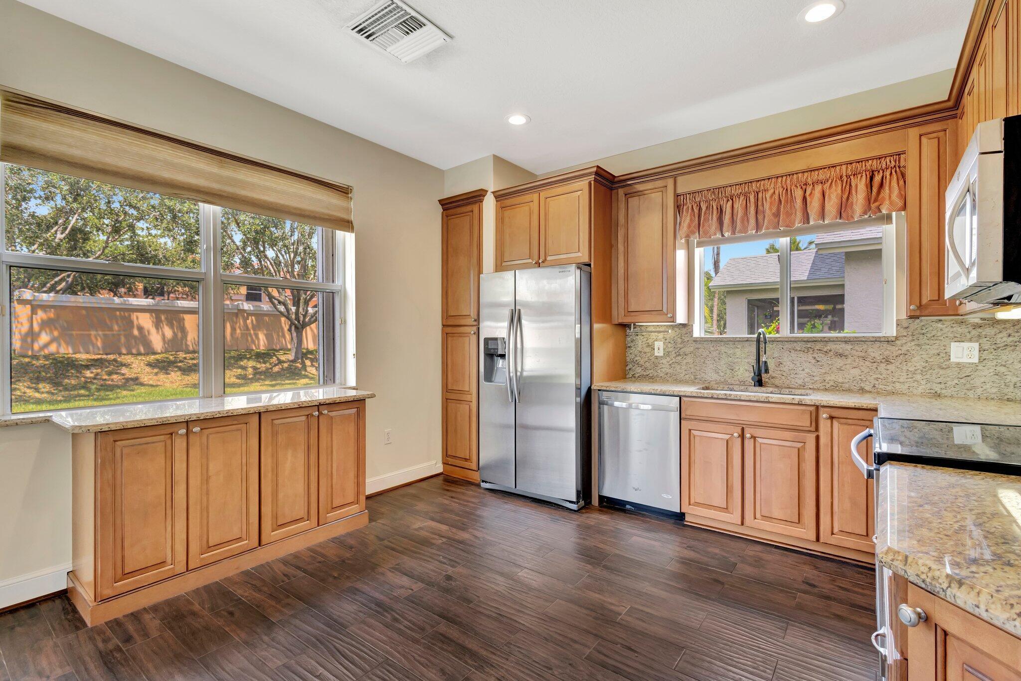 Welcome to this charming 2 bedroom plus den, 2 bathroom home in the beautiful Lake Forest community. Den can easily be made into 3rd bedroom. Remodeled eat in kitchen with beautiful granite countertops, laminate floors throughout home. High 11ft ceilings from foyer to great room. Beautifully remodeled master bathroom. Light bright and airy home is just waiting for its new owner to make it your own. Super close to shopping, dining and clover park. Community has social events, 2 pools and fitness center.