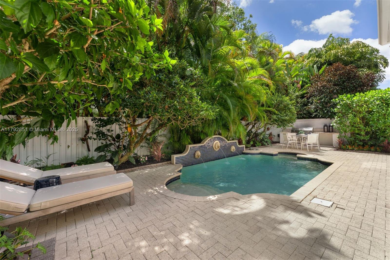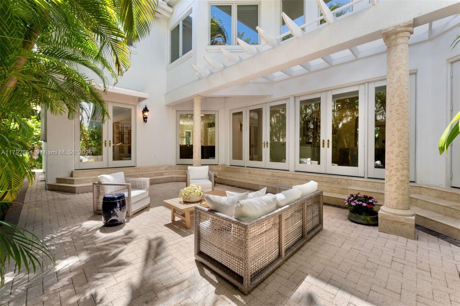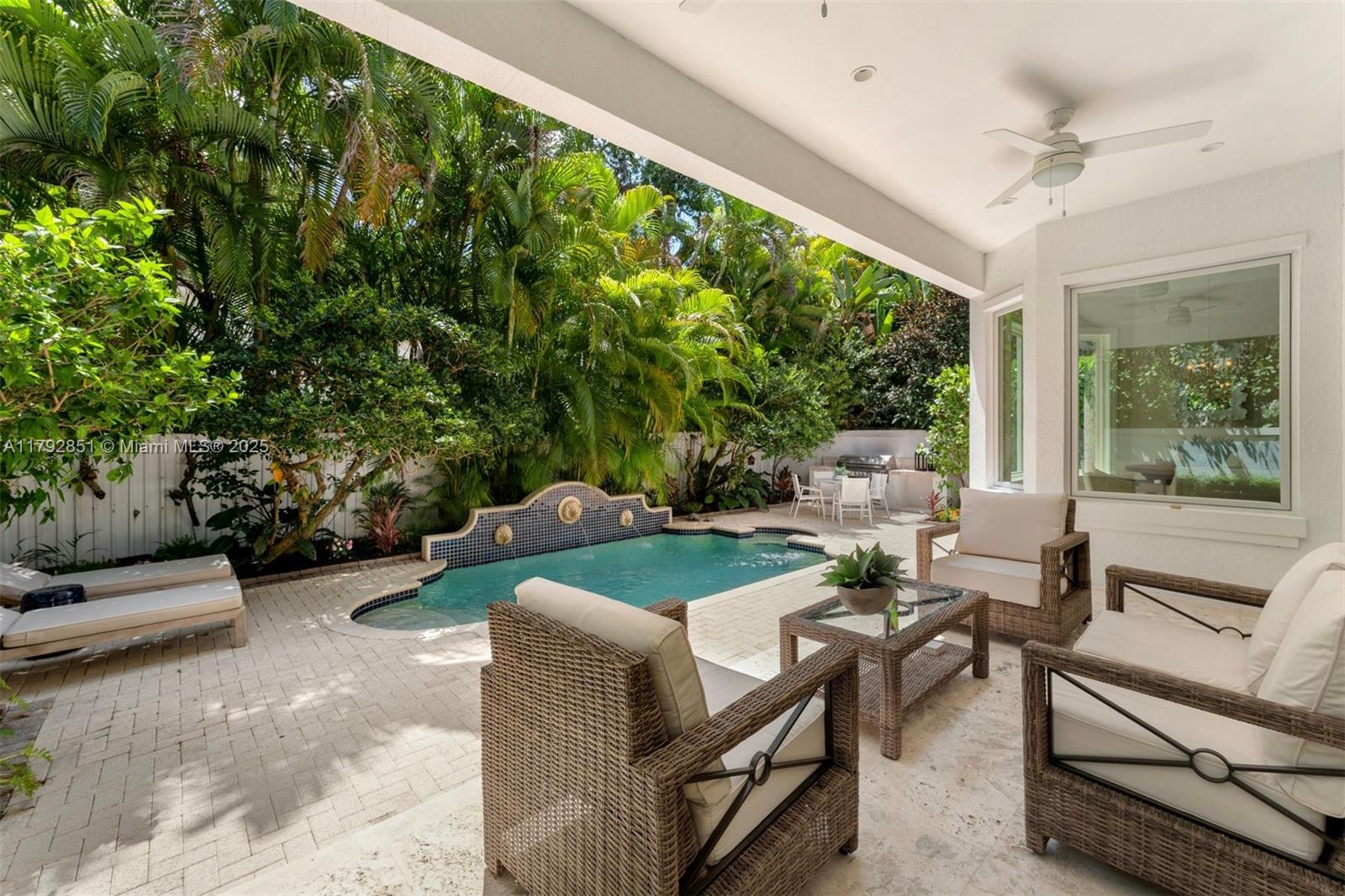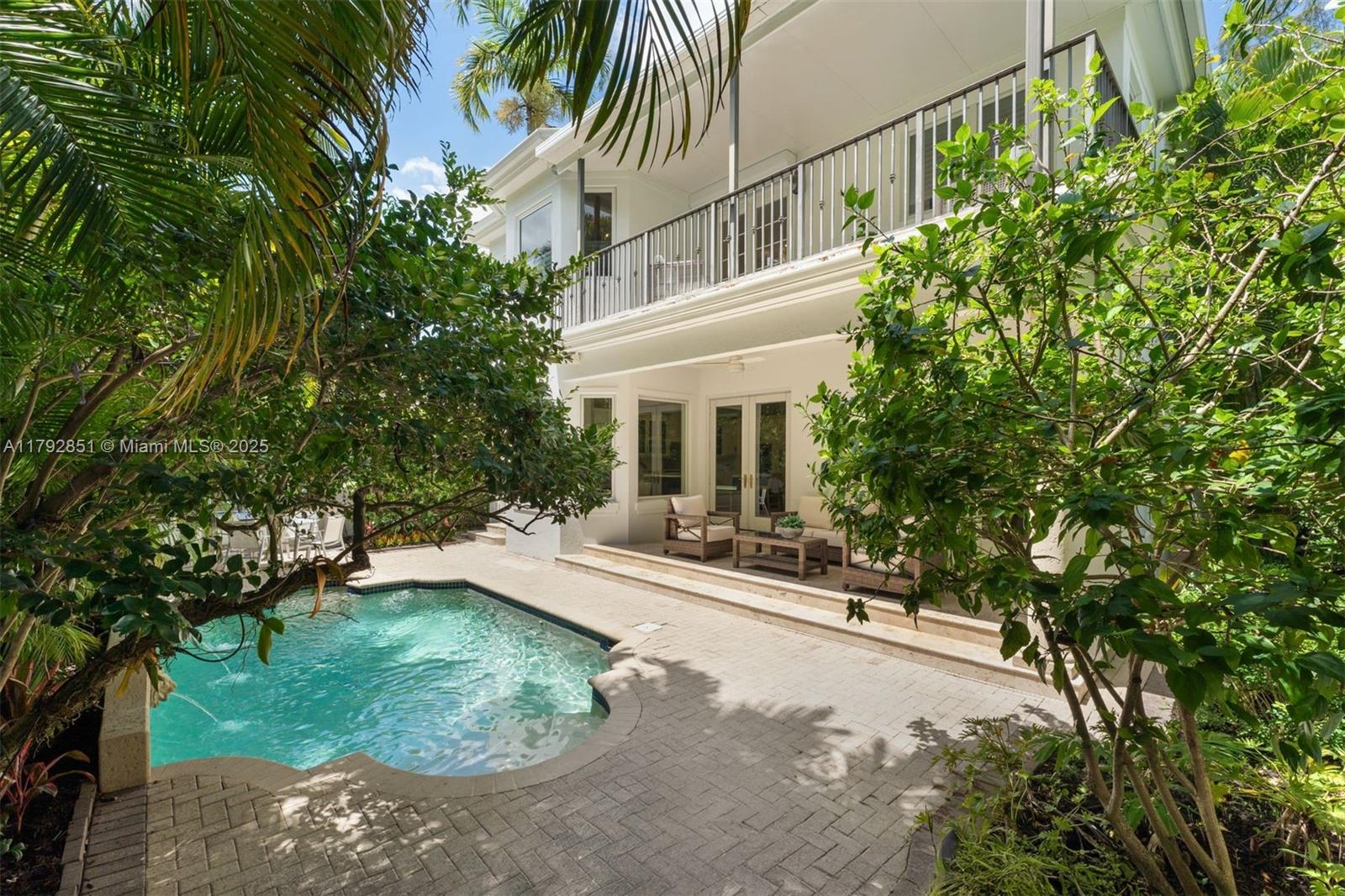 Gracefully set on a lushly landscaped 7,158 SF lot, this elegant 3 BD/4.5 BA residence offers 3,702 SF, combining timeless architectural details with modern upgrades. Interiors feature soaring ceilings, custom millwork, French doors, crown moldings, and a wood staircase with iron railing. The open-concept kitchen boasts quartz countertops, Thermador appliances, Sub-Zero fridge, and a wine cooler. Outdoor highlights include a chlorine tile pool with jets, covered terrace, built-in Bull grill, and mosquito system. Additional features: elevator, 2 ACs, Tesla wall backups, 2-car garage with epoxy floors, and generator-ready wiring. Located on a quiet, tree-lined street.