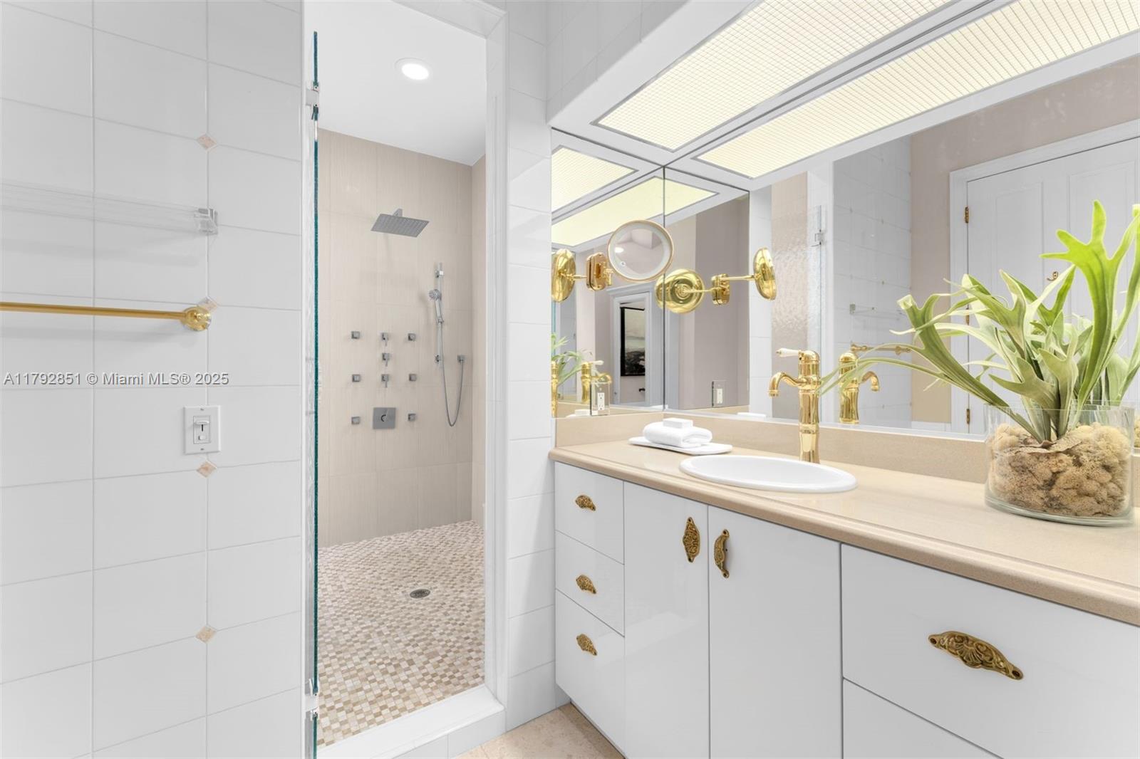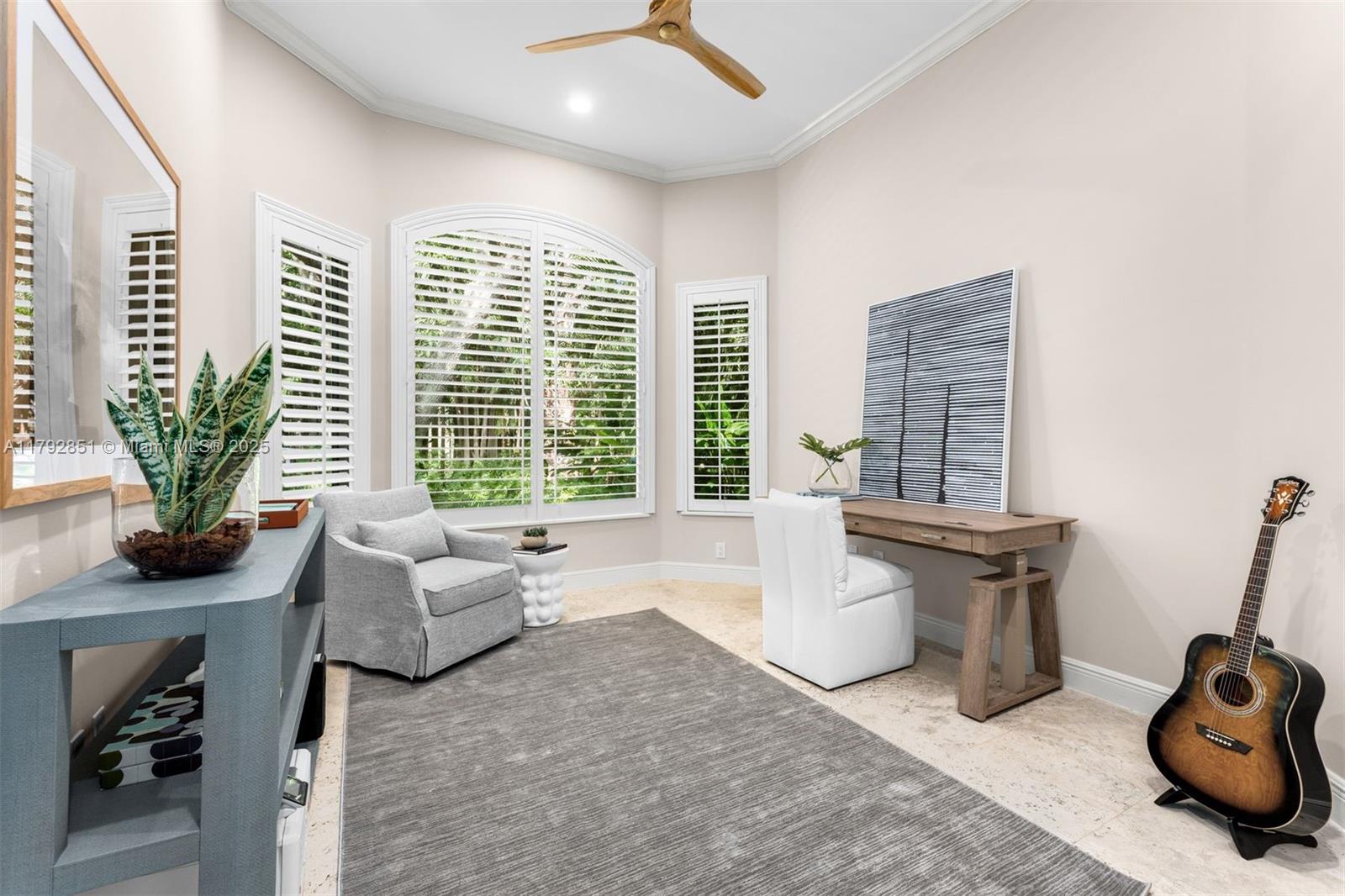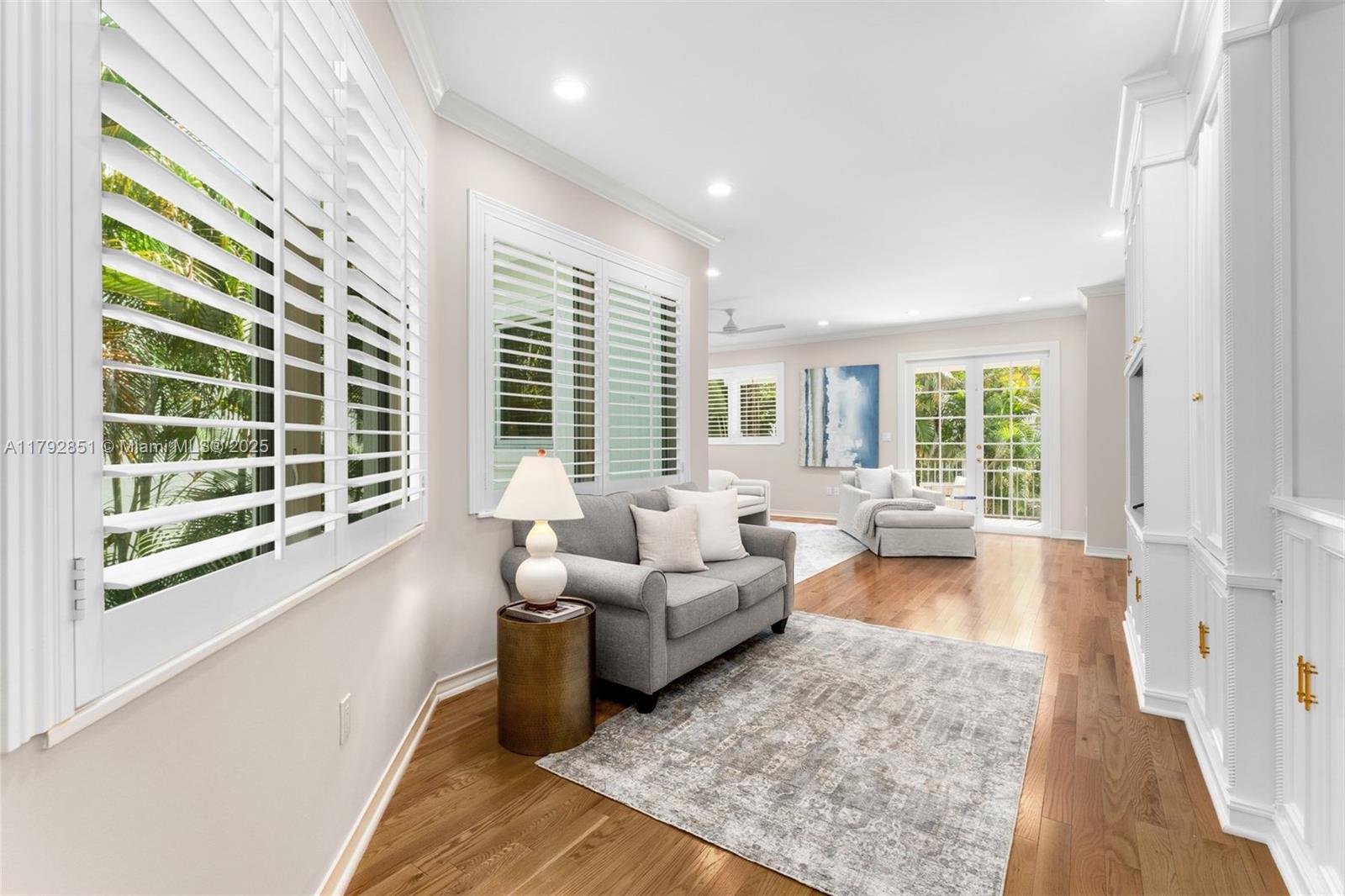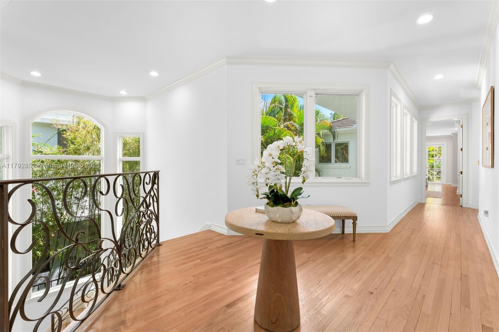 Gracefully set on a lushly landscaped 7,158 SF lot, this elegant 3 BD/4.5 BA residence offers 3,702 SF, combining timeless architectural details with modern upgrades. Interiors feature soaring ceilings, custom millwork, French doors, crown moldings, and a wood staircase with iron railing. The open-concept kitchen boasts quartz countertops, Thermador appliances, Sub-Zero fridge, and a wine cooler. Outdoor highlights include a chlorine tile pool with jets, covered terrace, built-in Bull grill, and mosquito system. Additional features: elevator, 2 ACs, Tesla wall backups, 2-car garage with epoxy floors, and generator-ready wiring. Located on a quiet, tree-lined street.