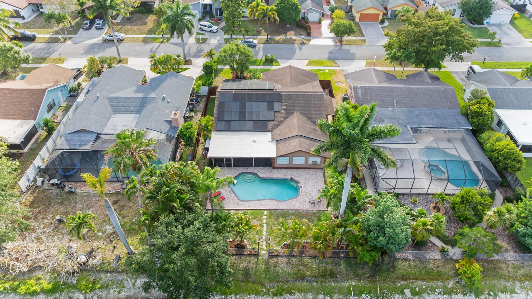 BUY WITH NO MONEY DOWN!!! This amazing 4 bed 2 bath waterfront home with no HOA has an open floor plan with high vaulted wood ceilings and abundant natural light. Boat Parking - dedicated concrete pad for your boat on the side of your home. Solar-Powered system covers 100% of electricity. Saltwater Pool is a low-maintenance, luxurious swimming experience with a full-size basketball goal. Covered back patio with a tropical fish tank and plenty of seating for all of your entertaining needs. 4th bedroom is a converted garage with extra space for an office or game room. Can easily be reverted back to a garage. Prime Location, only three houses down from a beautiful local park kids will love! Just minutes away from 95 and the Turnpike.