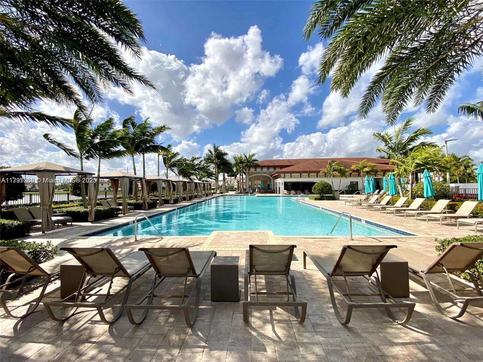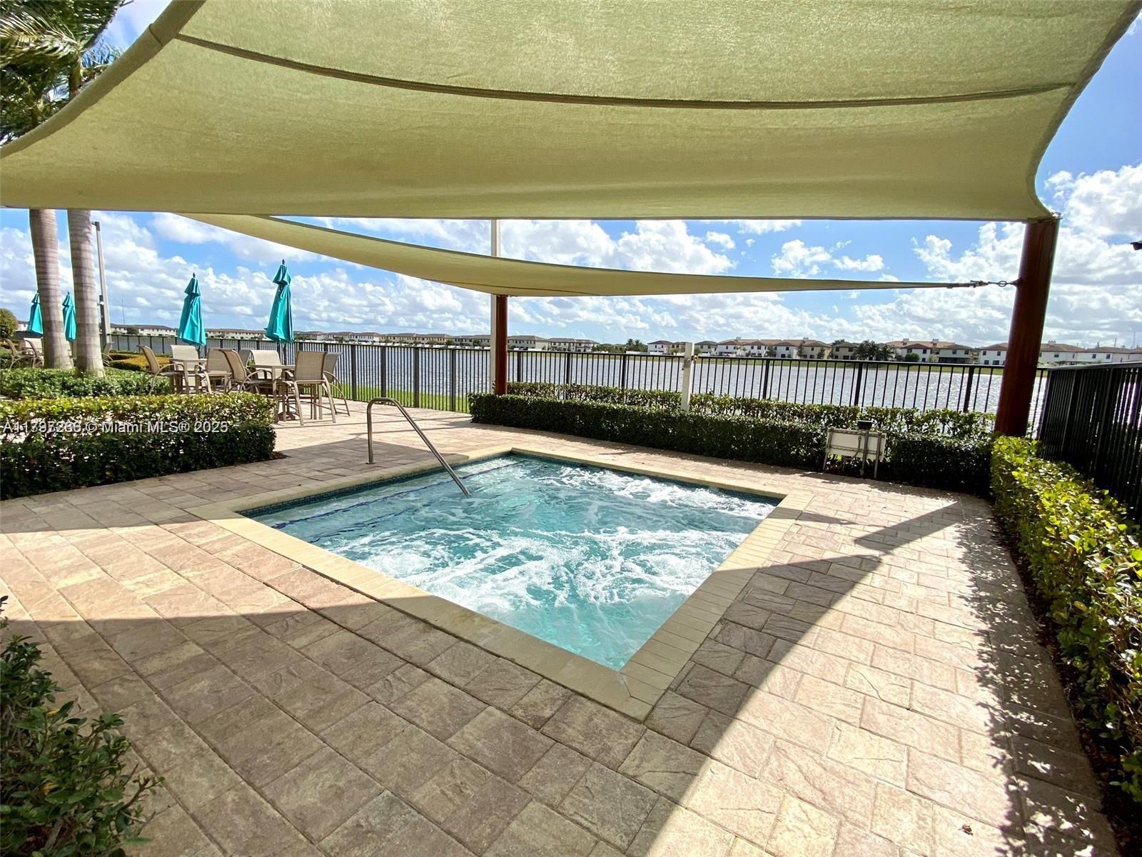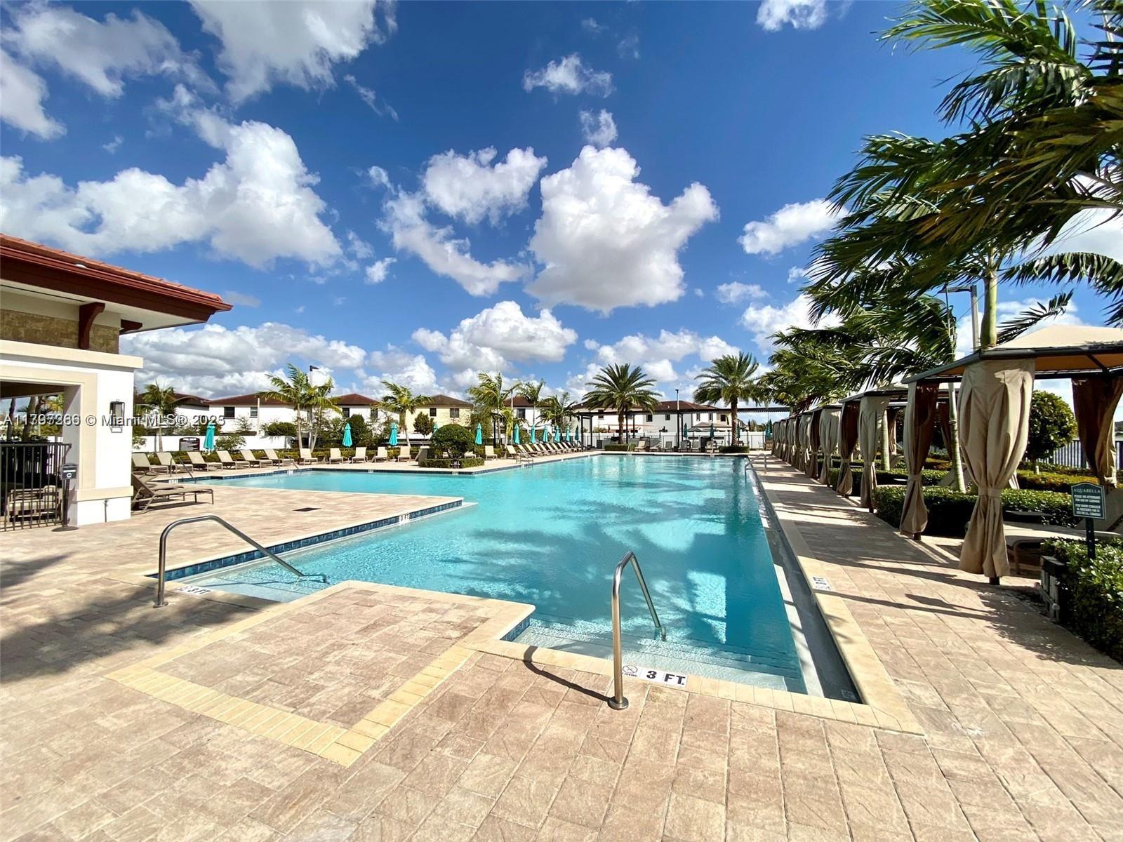 Beautiful Townhouse " Smart Home". Stunning home is located in the exclusive luxury community of Aquabella. Private gated community 24/7 security, resort style with pools, outdoor grilling station fitness centers, water park for kids, 2 clubhouses, plenty of parking spaces for visitors, close to major highways and new shopping centers with Publix supermarket, HomeGoods, Burlington, restaurants and much more. This two story home has 3 bedrooms, 2 full bathroom and 1/2 a bathroom, first floor porcelain/second floor laminated with 2 assigned parking in front.