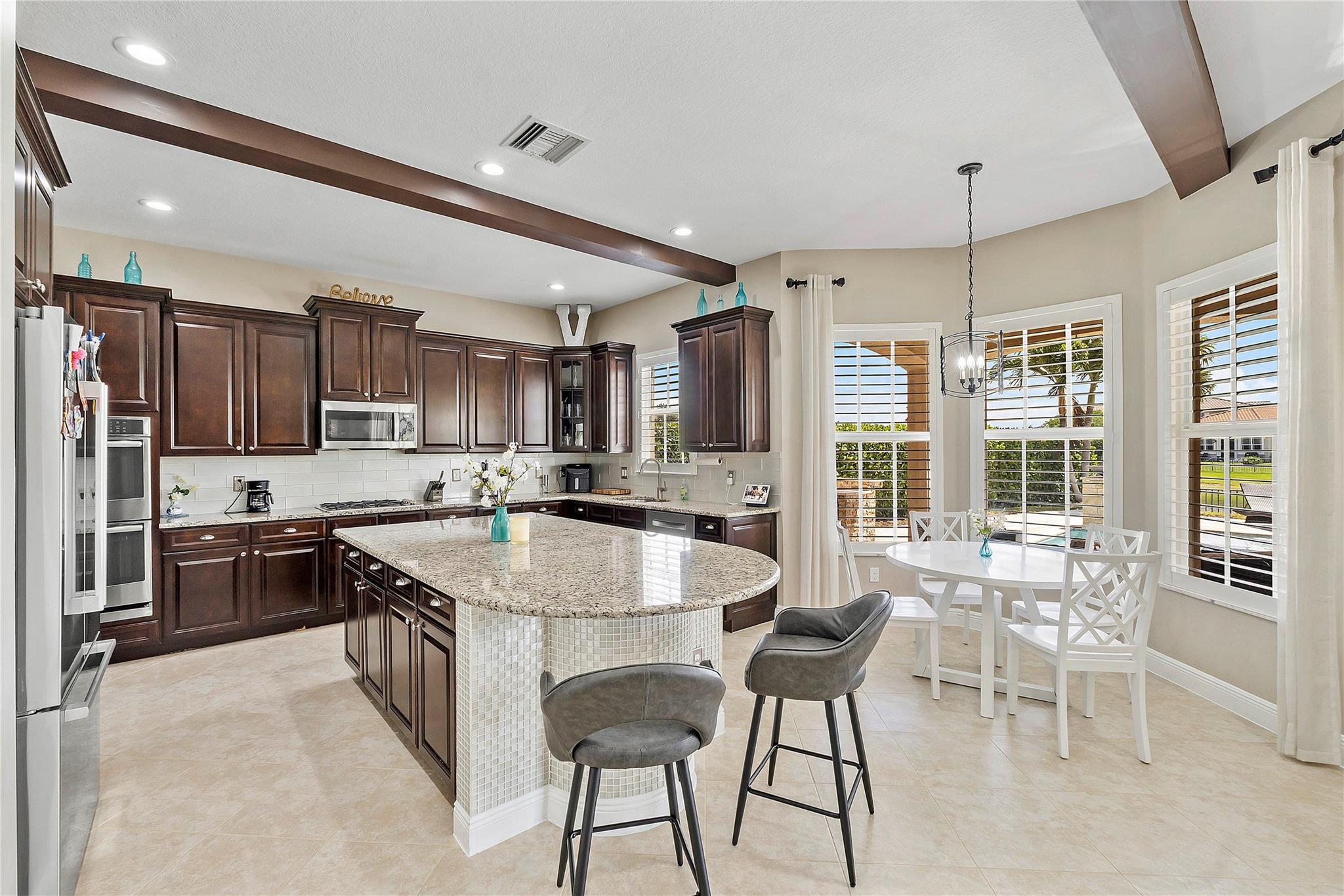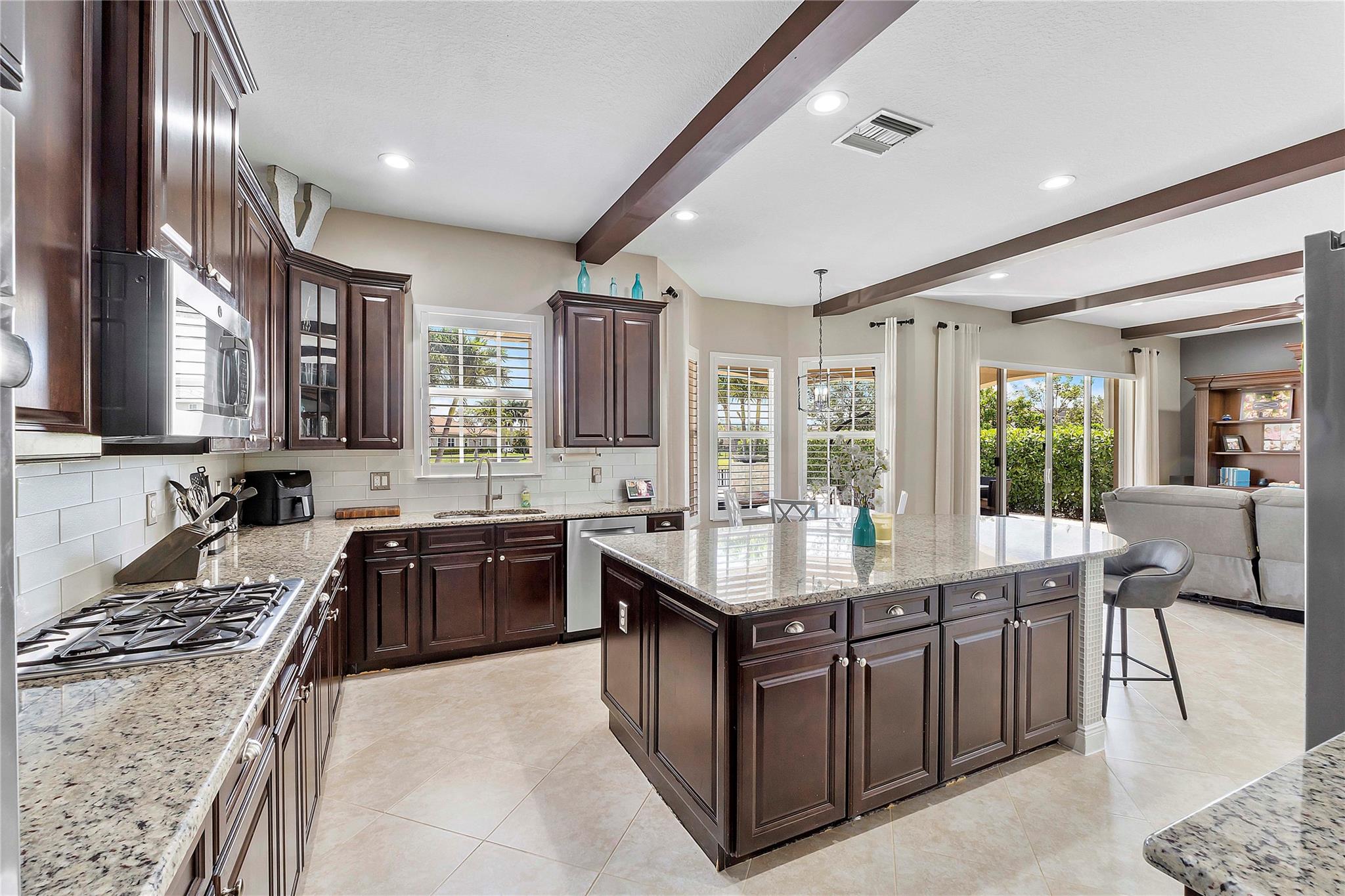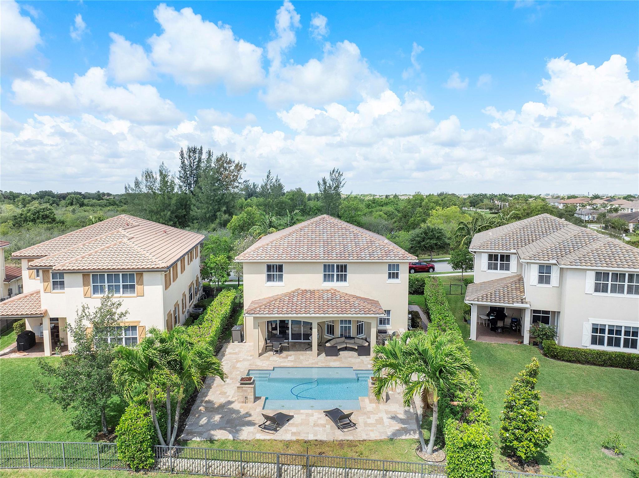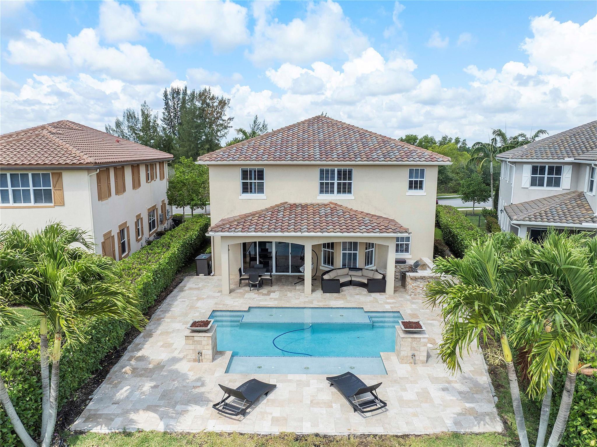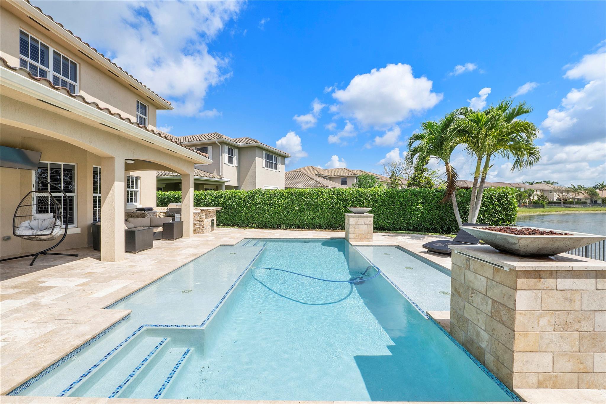 Exceptional opportunity to own a stunning Tahoe Model in Miralago. A beautifully upgraded 4-bedroom plus loft (easily convertible to a 5th bedroom), 4-bathroom home, offering over 3,700 square feet of living space on a lakefront lot. This residence features an oversized saltwater pool with marble deck and a summer kitchen. Interior highlights include tile flooring throughout the living areas and vinyl flooring upstairs. All closets have custom cabinetry, crown moldings throughout, wood ceiling beams in the kitchen and living room, and wainscoting in the dining area. The kitchen is equipped with a gas cooktop, double oven, granite countertops, neutral tile backsplash, and wood cabinetry. Homeowners enjoy access to both the Miralago and Cascata resort-style clubhouses.