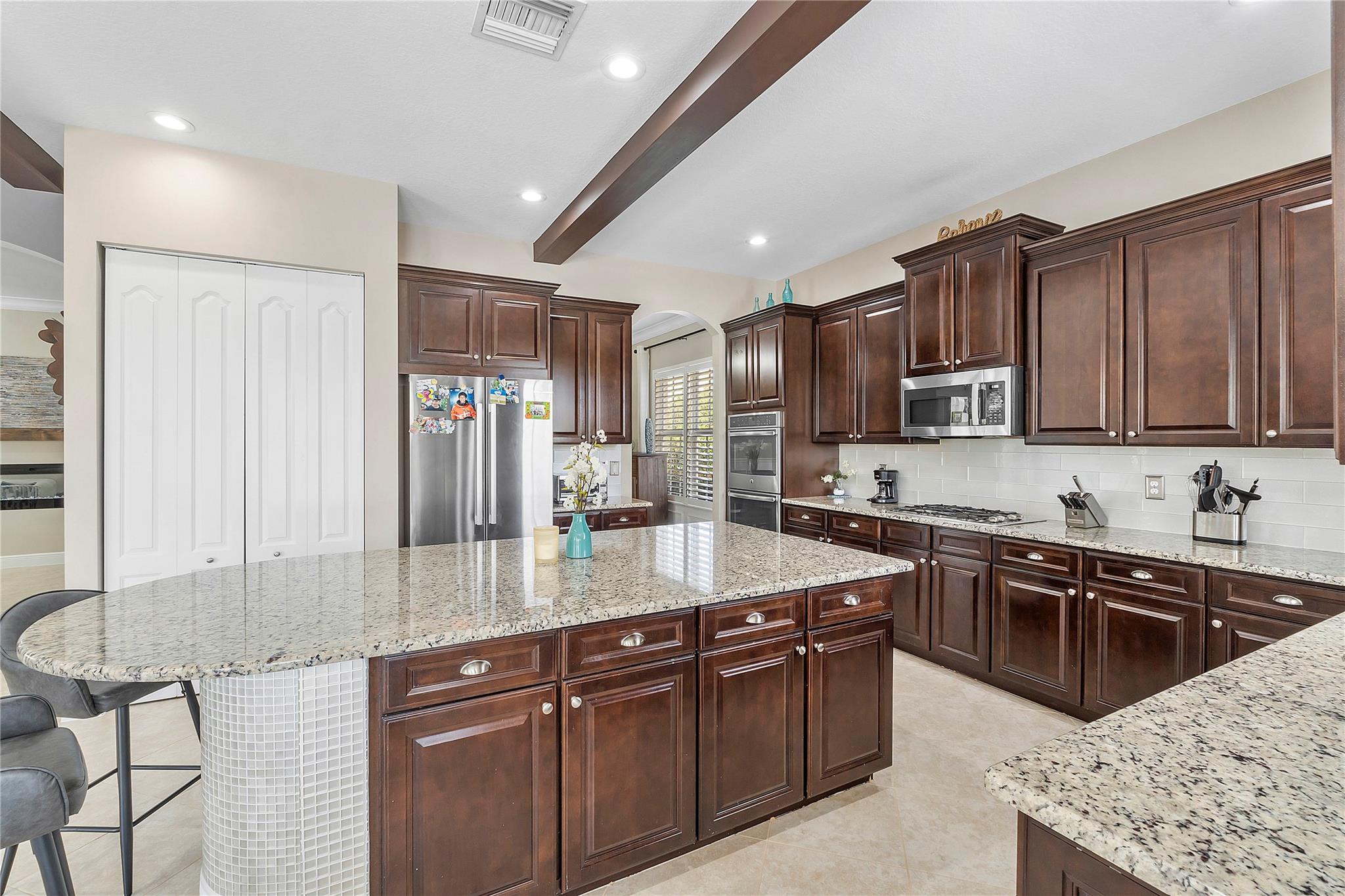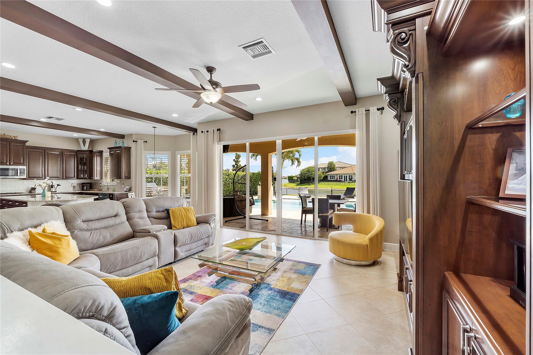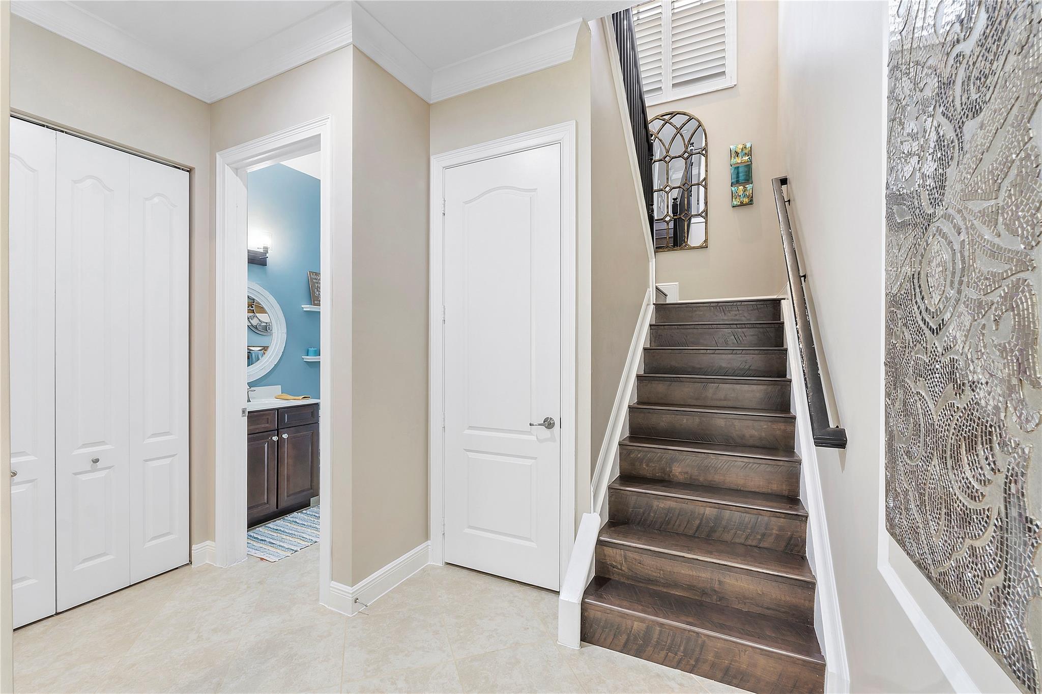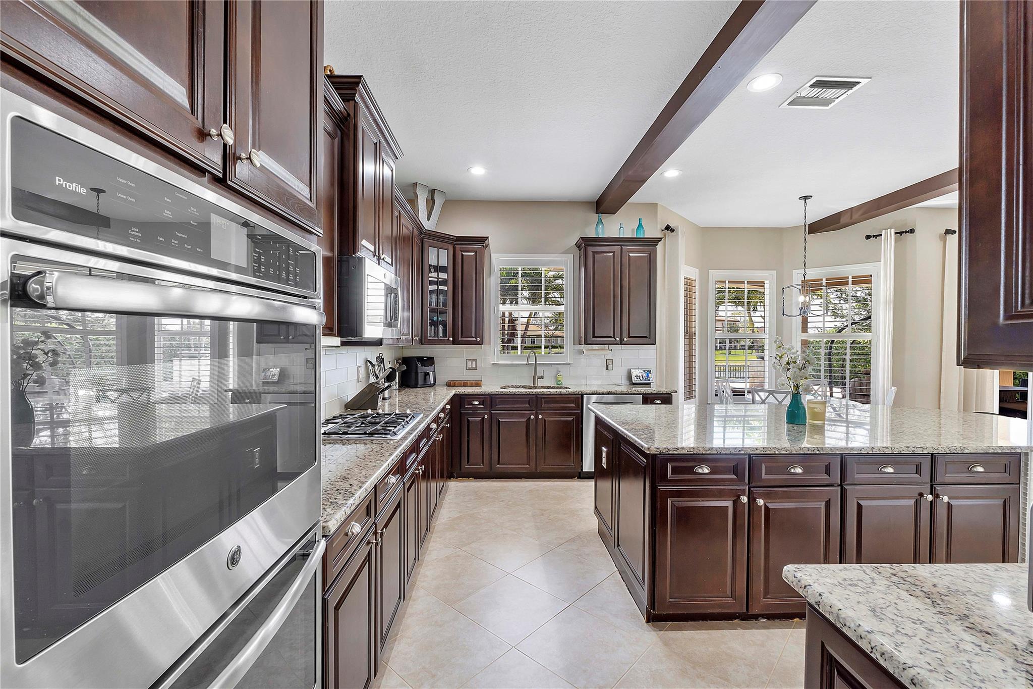 Exceptional opportunity to own a stunning Tahoe Model in Miralago. A beautifully upgraded 4-bedroom plus loft (easily convertible to a 5th bedroom), 4-bathroom home, offering over 3,700 square feet of living space on a lakefront lot. This residence features an oversized saltwater pool with marble deck and a summer kitchen. Interior highlights include tile flooring throughout the living areas and vinyl flooring upstairs. All closets have custom cabinetry, crown moldings throughout, wood ceiling beams in the kitchen and living room, and wainscoting in the dining area. The kitchen is equipped with a gas cooktop, double oven, granite countertops, neutral tile backsplash, and wood cabinetry. Homeowners enjoy access to both the Miralago and Cascata resort-style clubhouses.