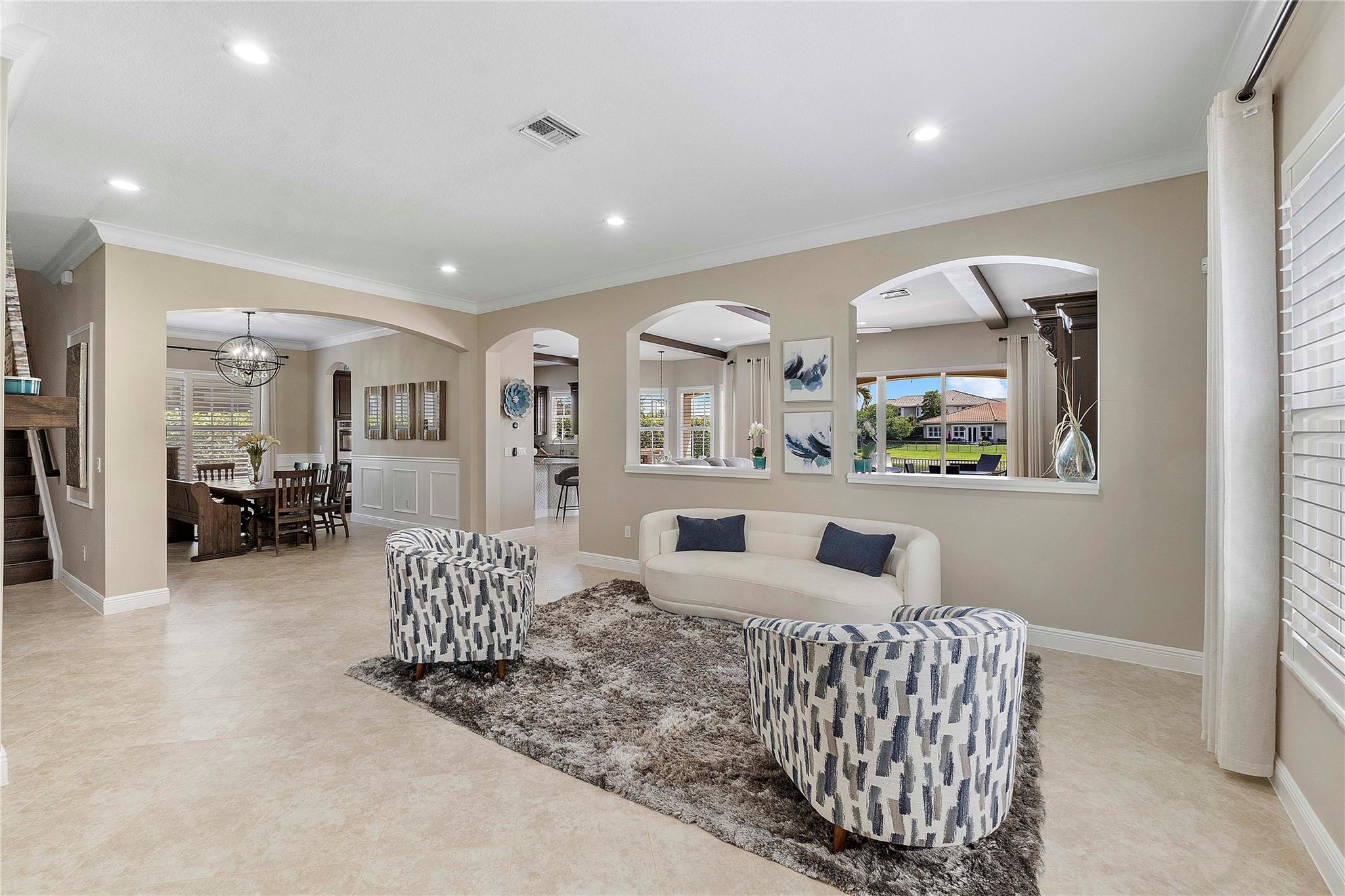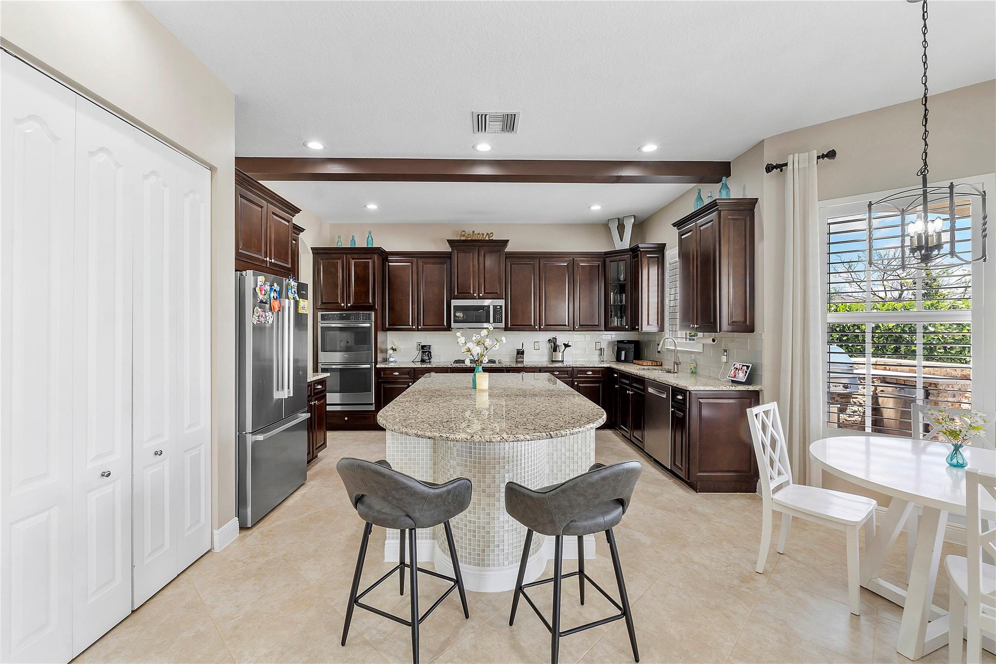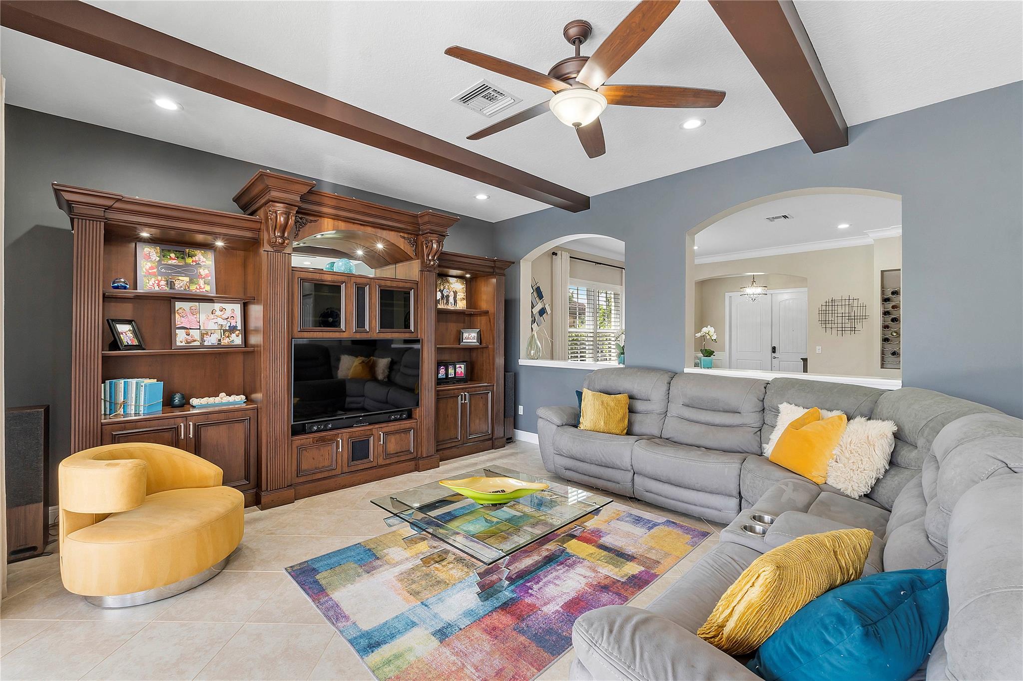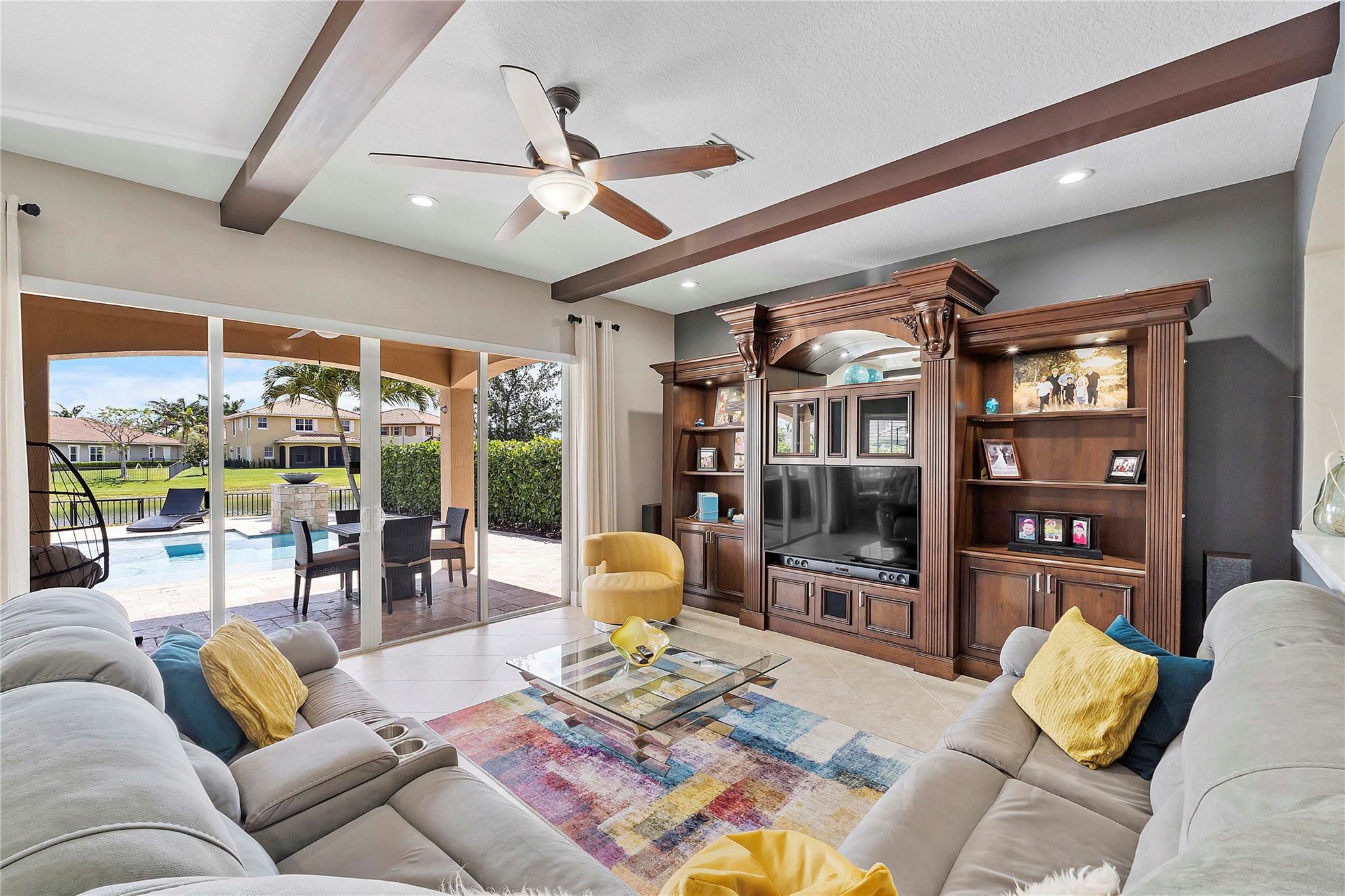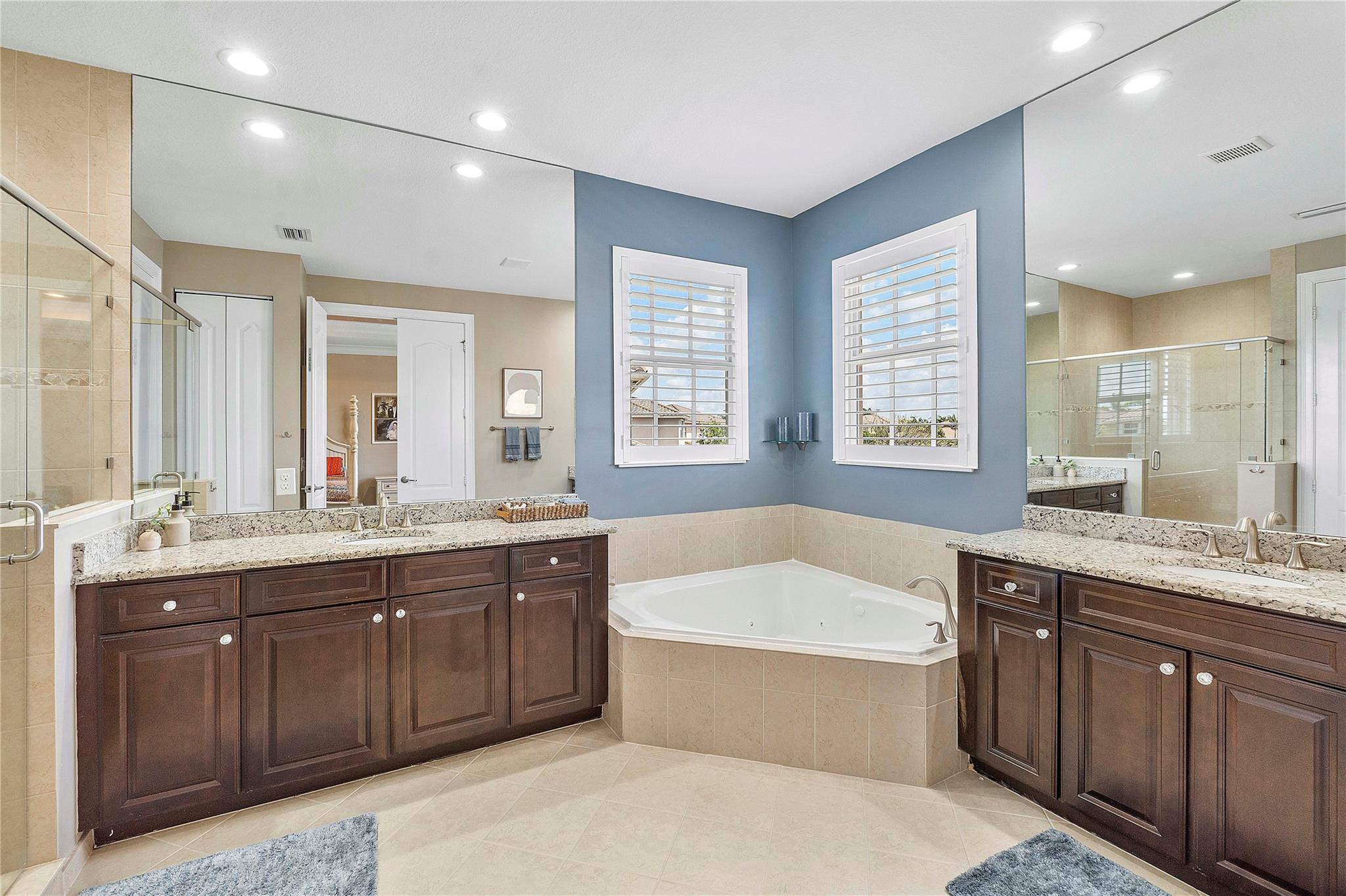 Exceptional opportunity to own a stunning Tahoe Model in Miralago. A beautifully upgraded 4-bedroom plus loft (easily convertible to a 5th bedroom), 4-bathroom home, offering over 3,700 square feet of living space on a lakefront lot. This residence features an oversized saltwater pool with marble deck and a summer kitchen. Interior highlights include tile flooring throughout the living areas and vinyl flooring upstairs. All closets have custom cabinetry, crown moldings throughout, wood ceiling beams in the kitchen and living room, and wainscoting in the dining area. The kitchen is equipped with a gas cooktop, double oven, granite countertops, neutral tile backsplash, and wood cabinetry. Homeowners enjoy access to both the Miralago and Cascata resort-style clubhouses.