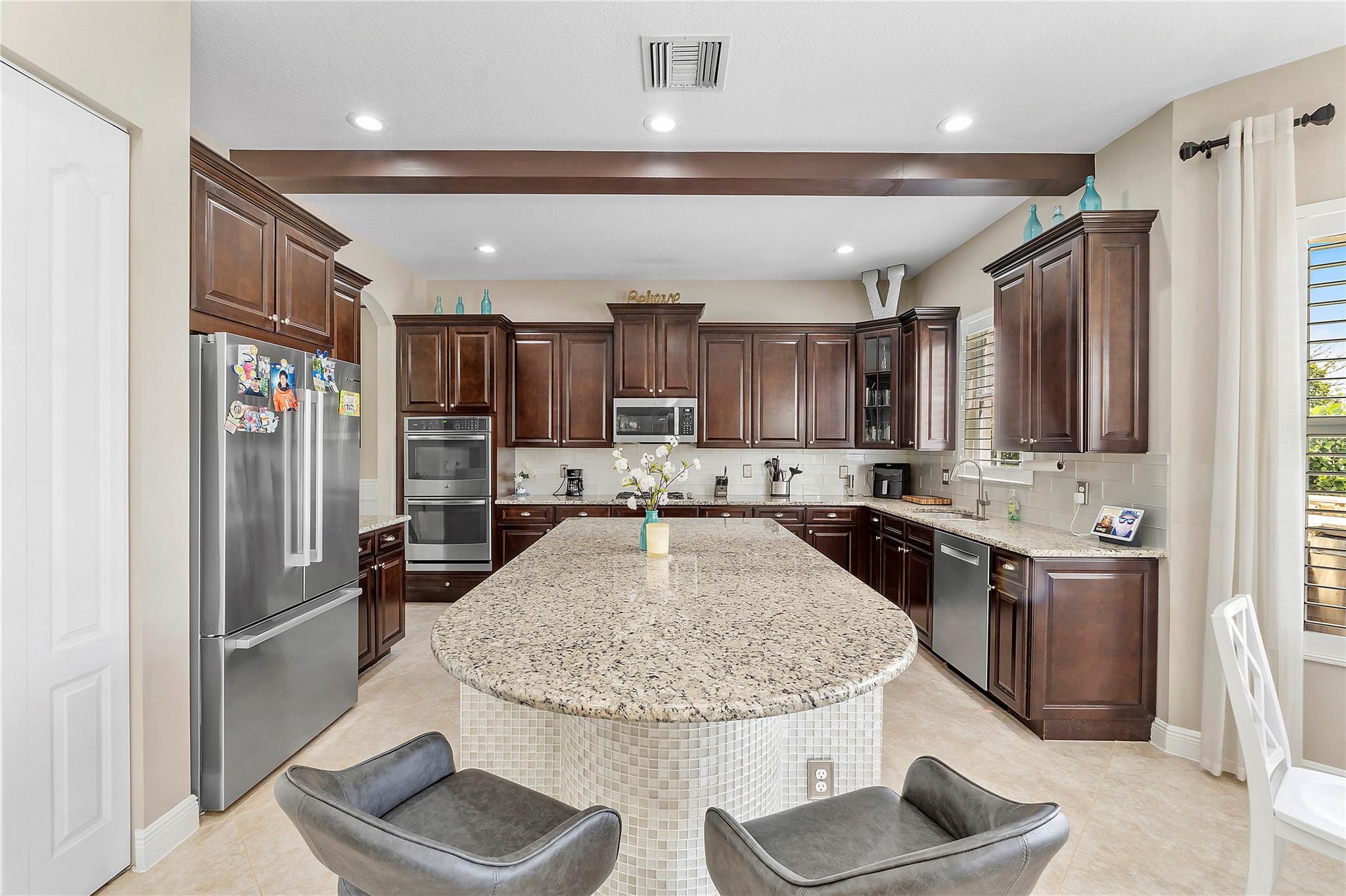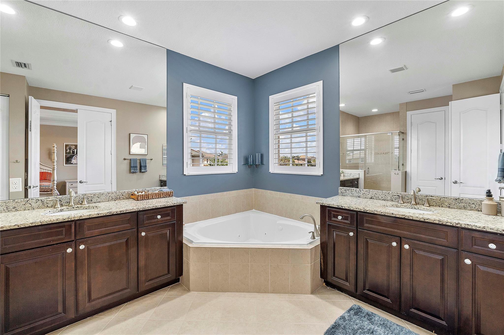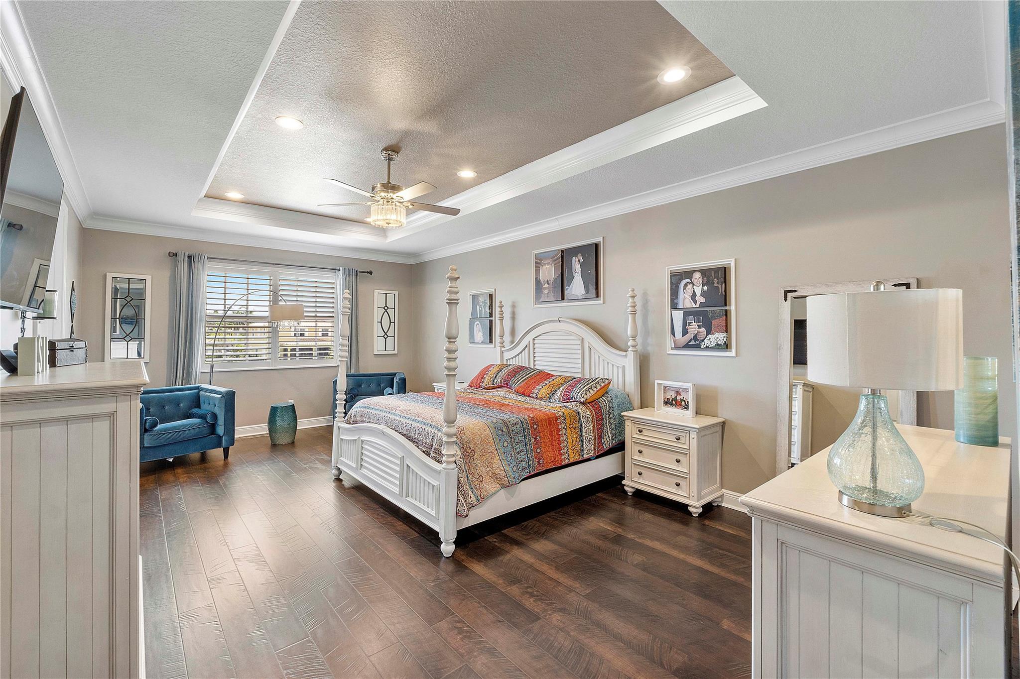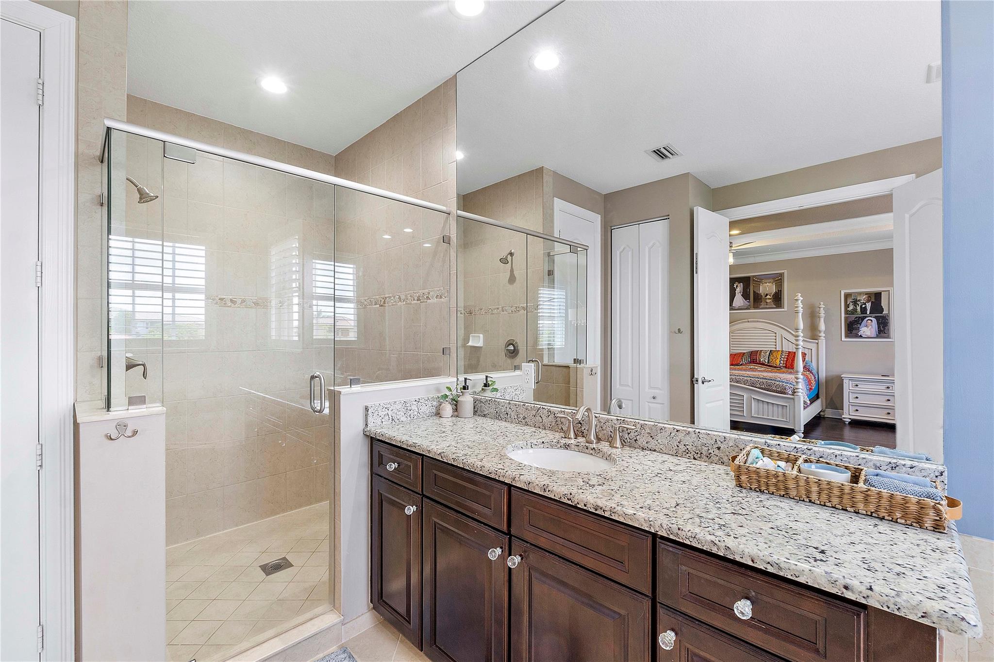 Exceptional opportunity to own a stunning Tahoe Model in Miralago. A beautifully upgraded 4-bedroom plus loft (easily convertible to a 5th bedroom), 4-bathroom home, offering over 3,700 square feet of living space on a lakefront lot. This residence features an oversized saltwater pool with marble deck and a summer kitchen. Interior highlights include tile flooring throughout the living areas and vinyl flooring upstairs. All closets have custom cabinetry, crown moldings throughout, wood ceiling beams in the kitchen and living room, and wainscoting in the dining area. The kitchen is equipped with a gas cooktop, double oven, granite countertops, neutral tile backsplash, and wood cabinetry. Homeowners enjoy access to both the Miralago and Cascata resort-style clubhouses.